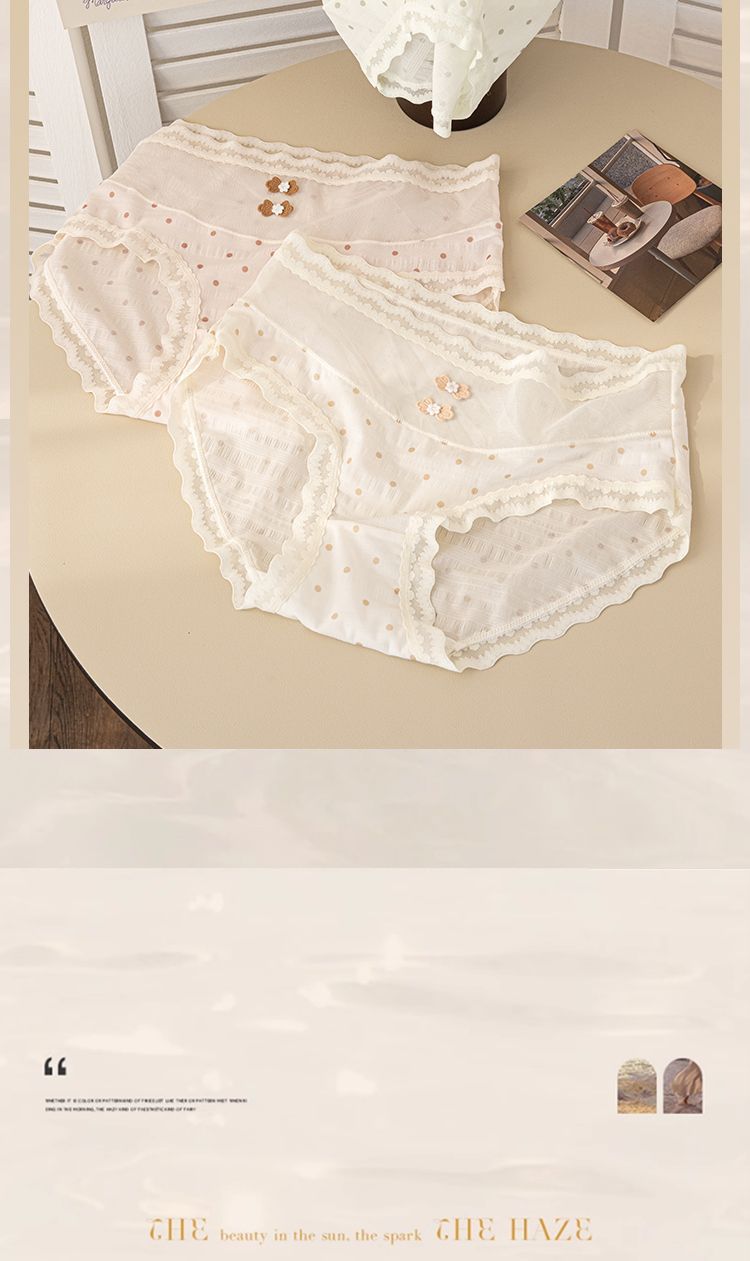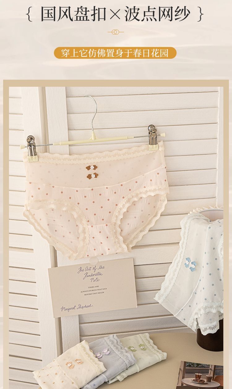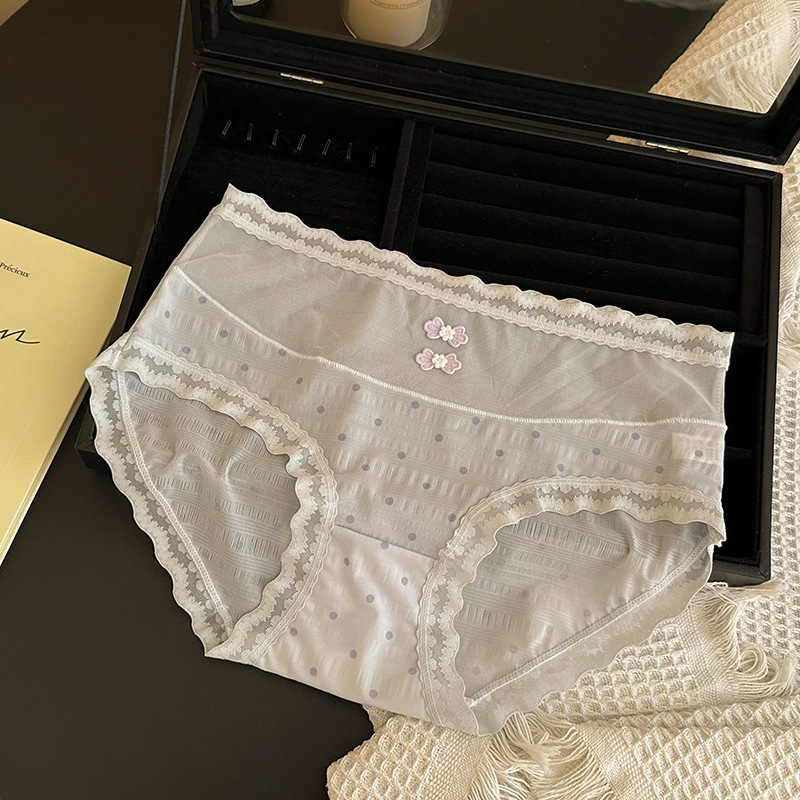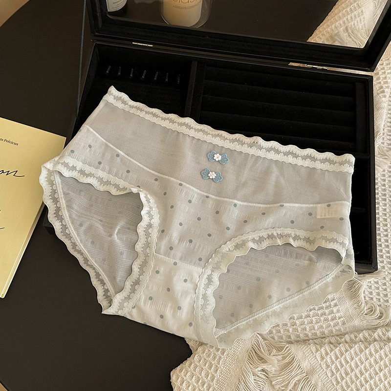사랑에 빠지다 ~ 달콤한 중국 스타일 국가 스타일 웨이브 닷 레이스 할로우 숙녀 속옷 추적없는 통기성 코튼 크로트 브리프