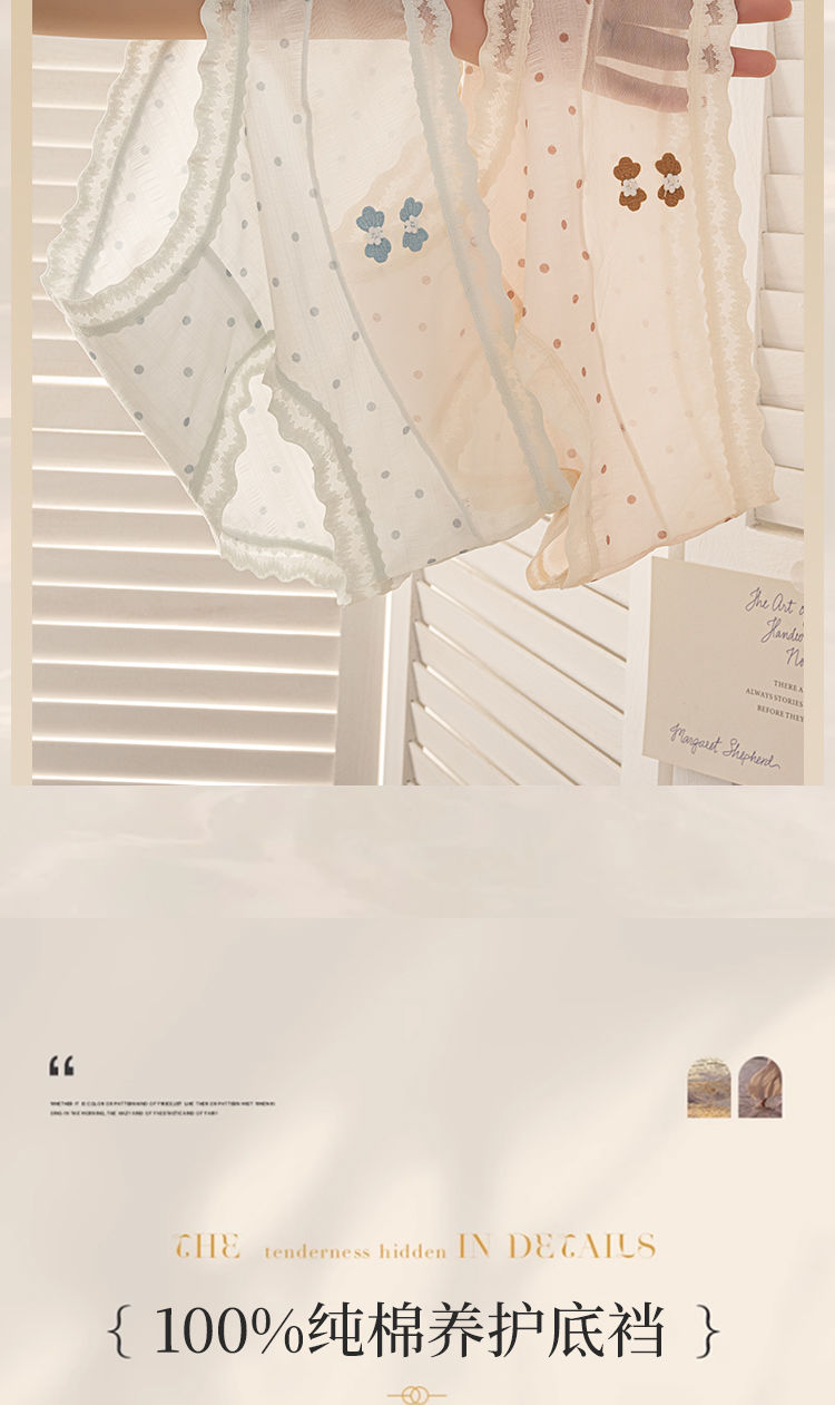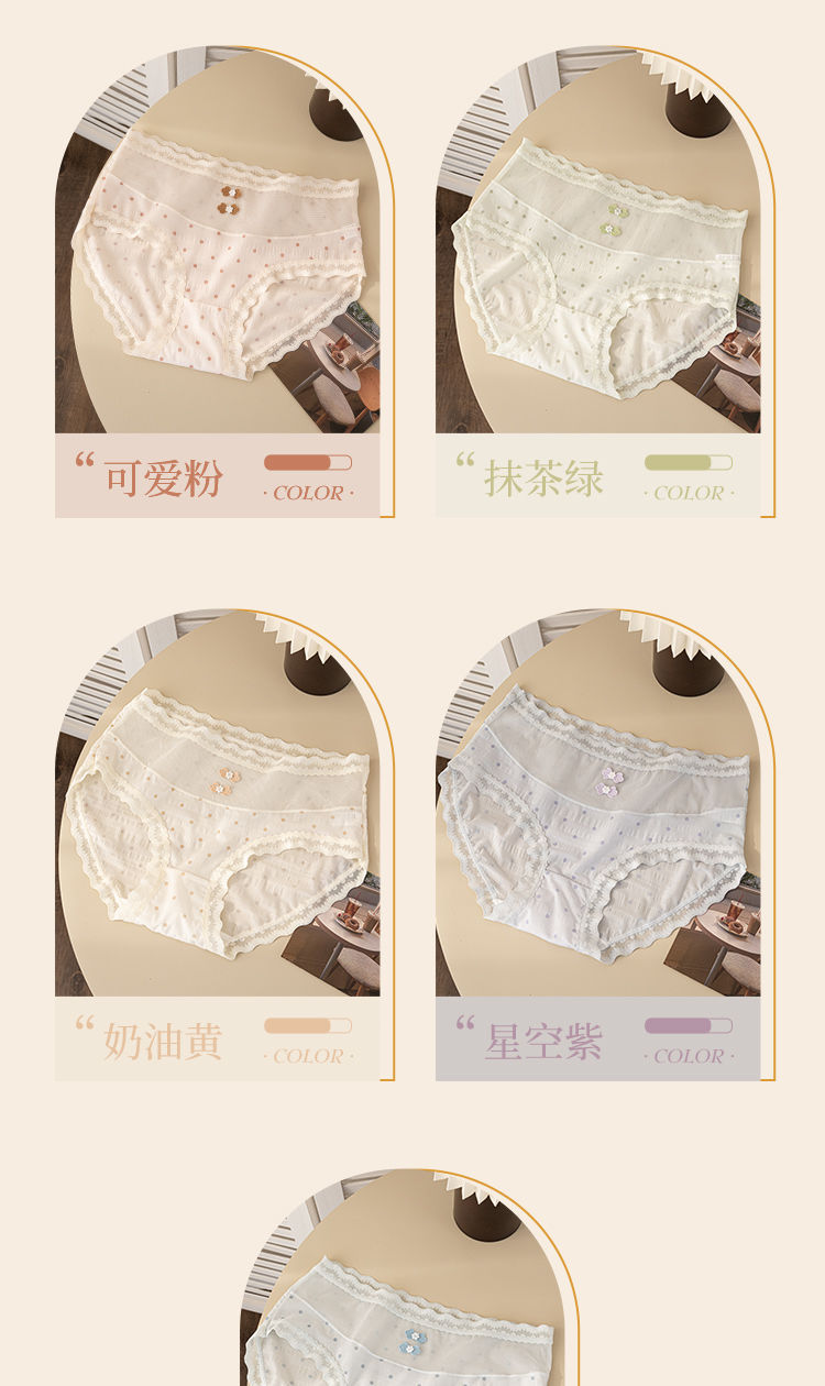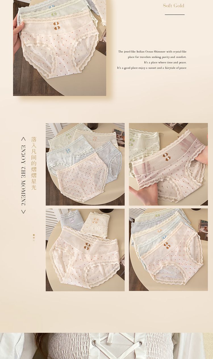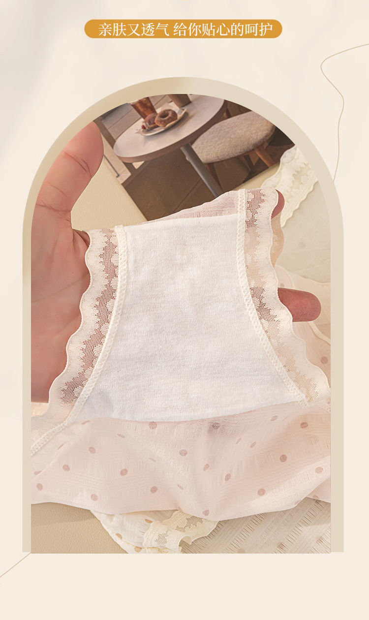 사랑에 빠지다 ~ 달콤한 중국 스타일 국가 스타일 웨이브 닷 레이스 할로우 숙녀 속옷 추적없는 통기성 코튼 크로트 브리프