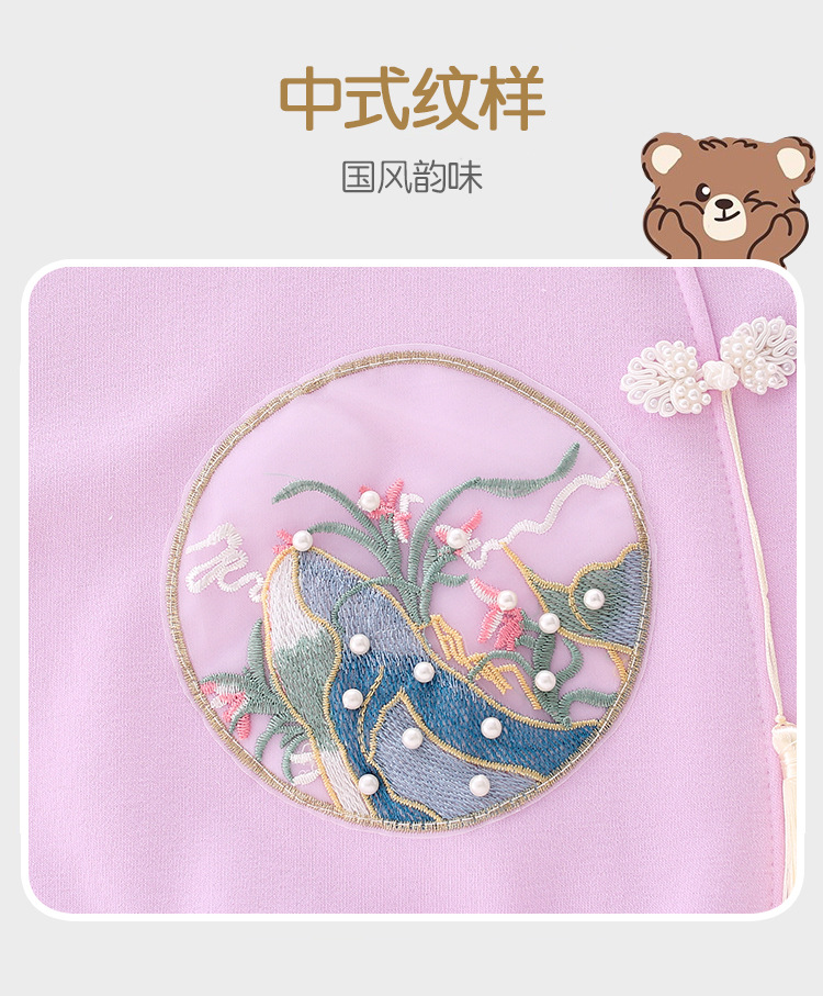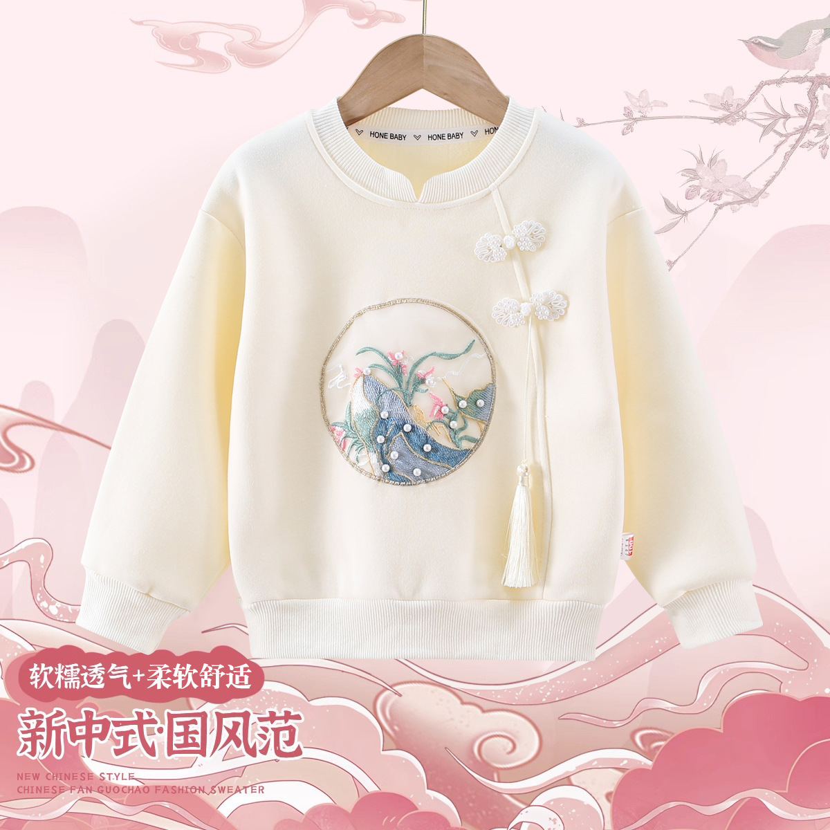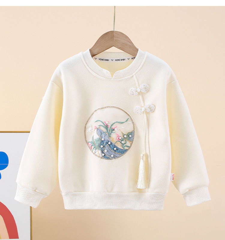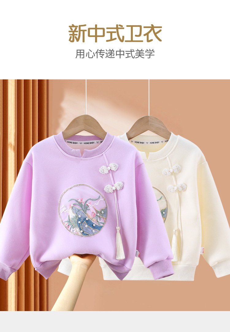 소녀 국가 스타일 새로운 중국 스타일 스웨트 셔츠 2025 봄과 가을 새로운 소녀 큰 소년의 버클 자수 어린이 서양식 봄 탑스토어 가기
