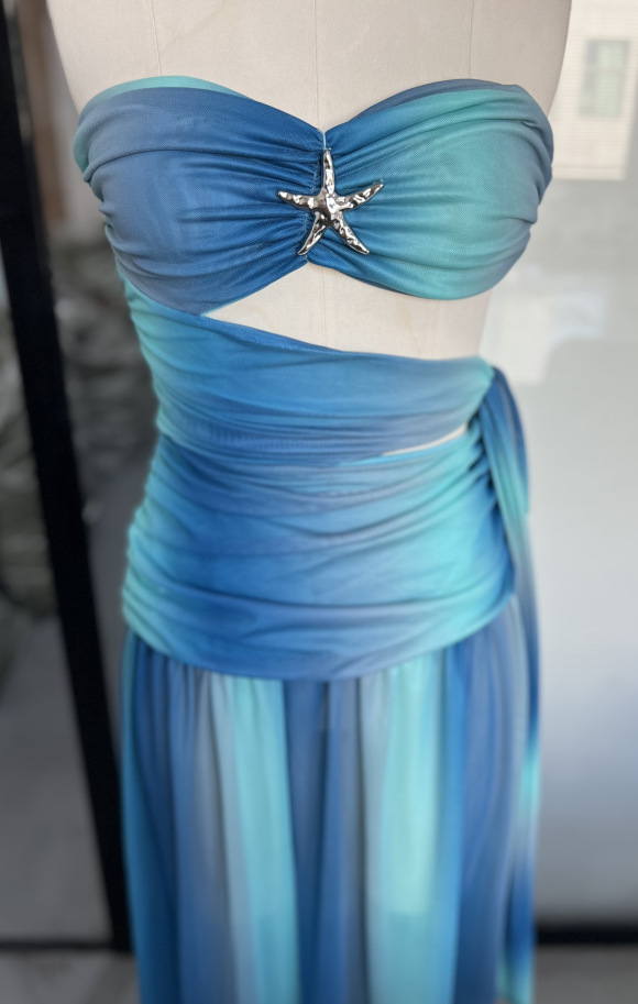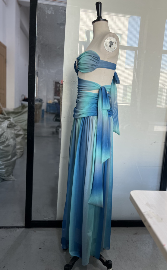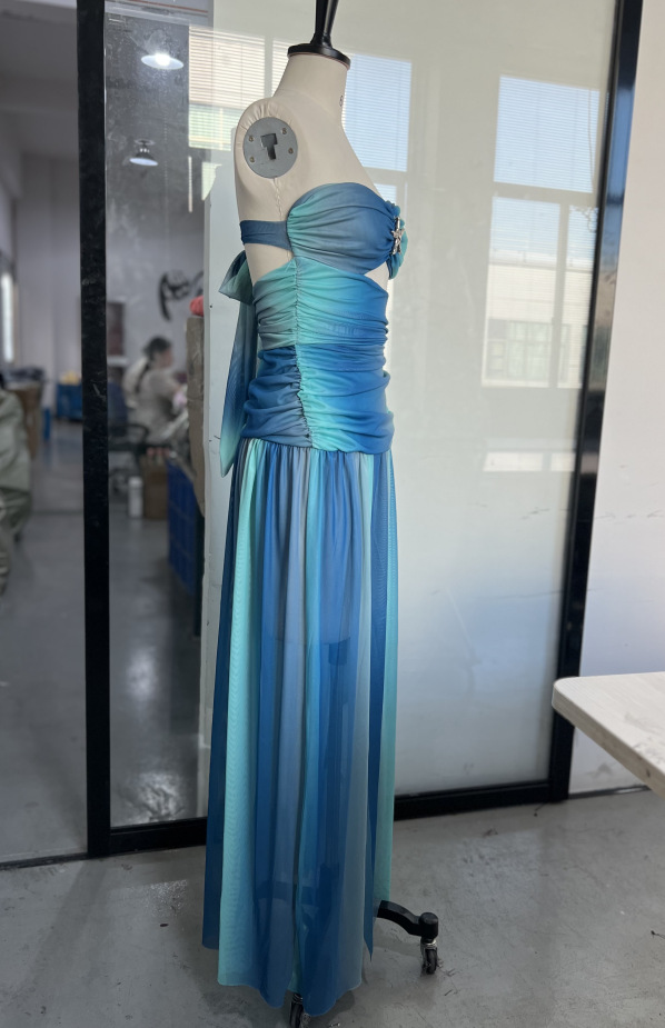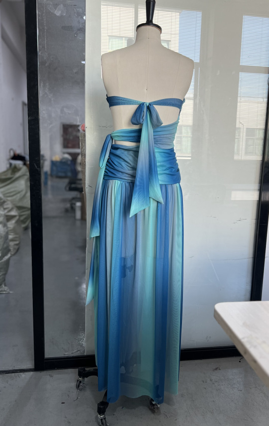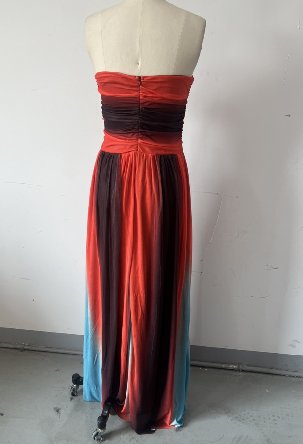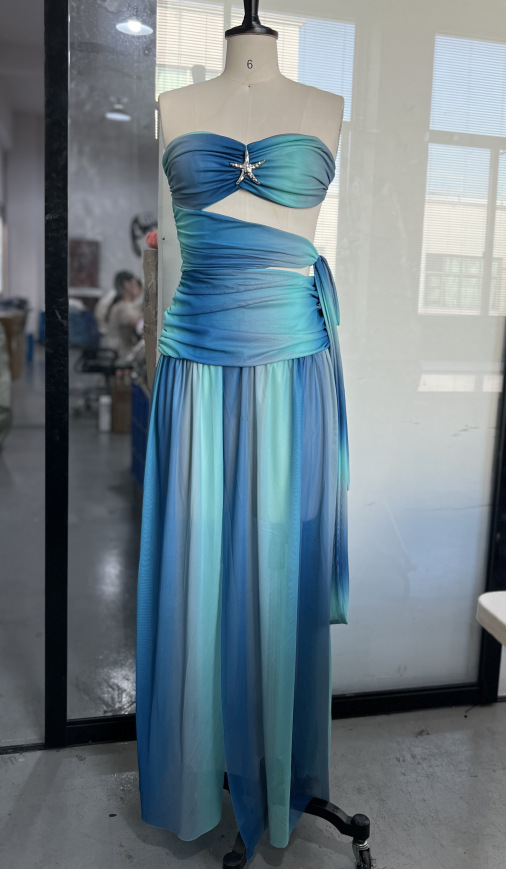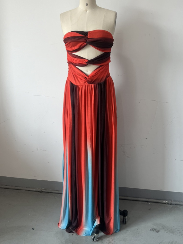 2025 년 봄과 여름 국경 대외 무역 새로운 기질 스트랩리스 할로우 등이없는 색상 매칭 긴 원피스