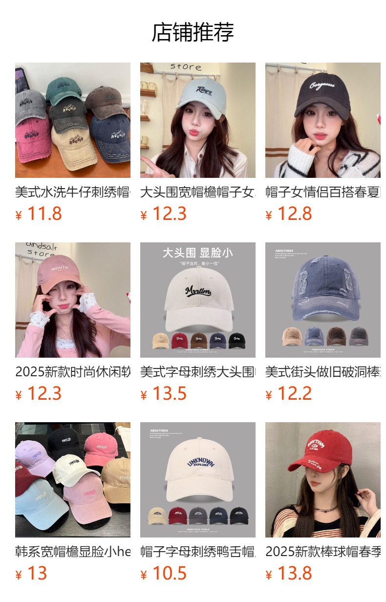 빅 헤드 캡 여자 2025 뉴 레트로 워시 모직 야구 모자 한국식 올 매치 선 스크린 와이드 브림 캡스토어 가기