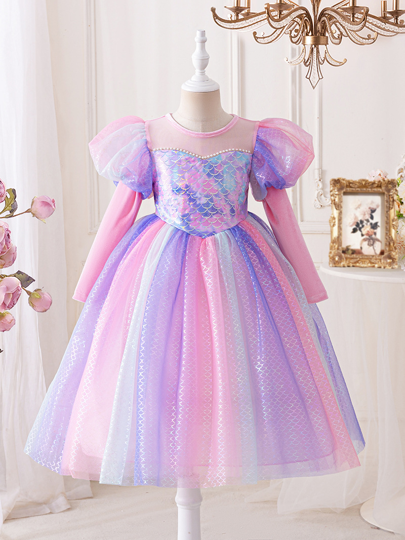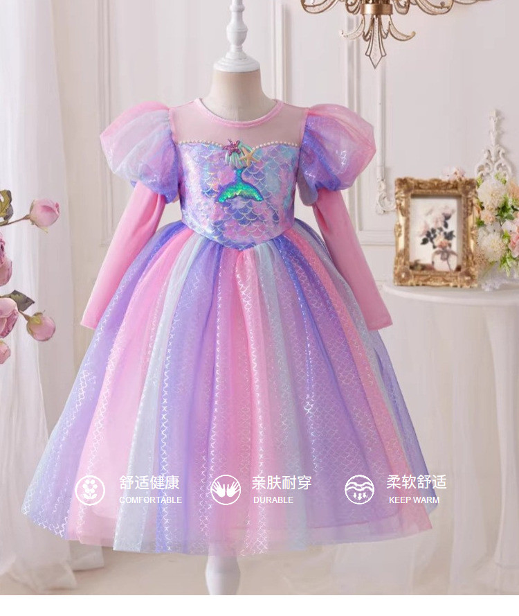인어공주 드레스 2026년 신상 긴팔 패셔너블한 드레스 어린이 공주 드레스 여아 초겨울 필수템