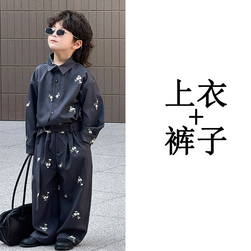 남아 셔츠 바지 세트 2025 봄 신상 꽃 자수 아동 캐주얼 루즈핏 아동복 원피스 도매스토어 가기