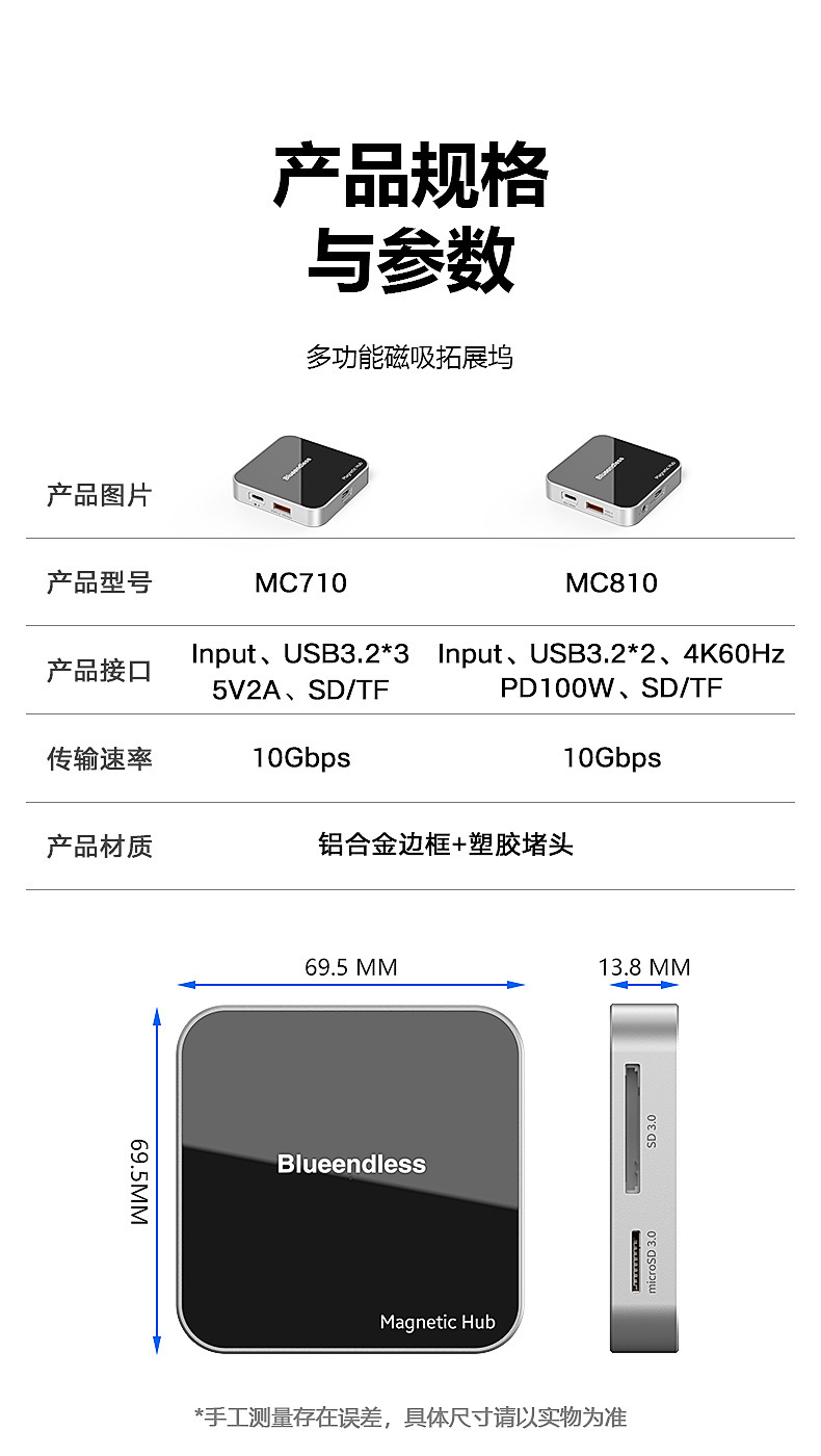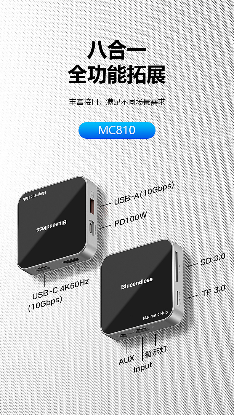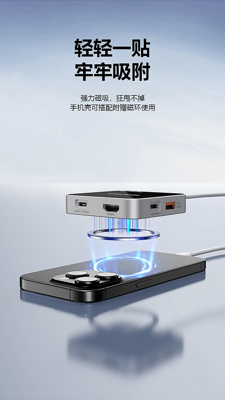 자기 확장 도크 4K 60Hz HD USB 3.2 허브 PD 휴대 전화 노트북 자기 변환 익스텐더