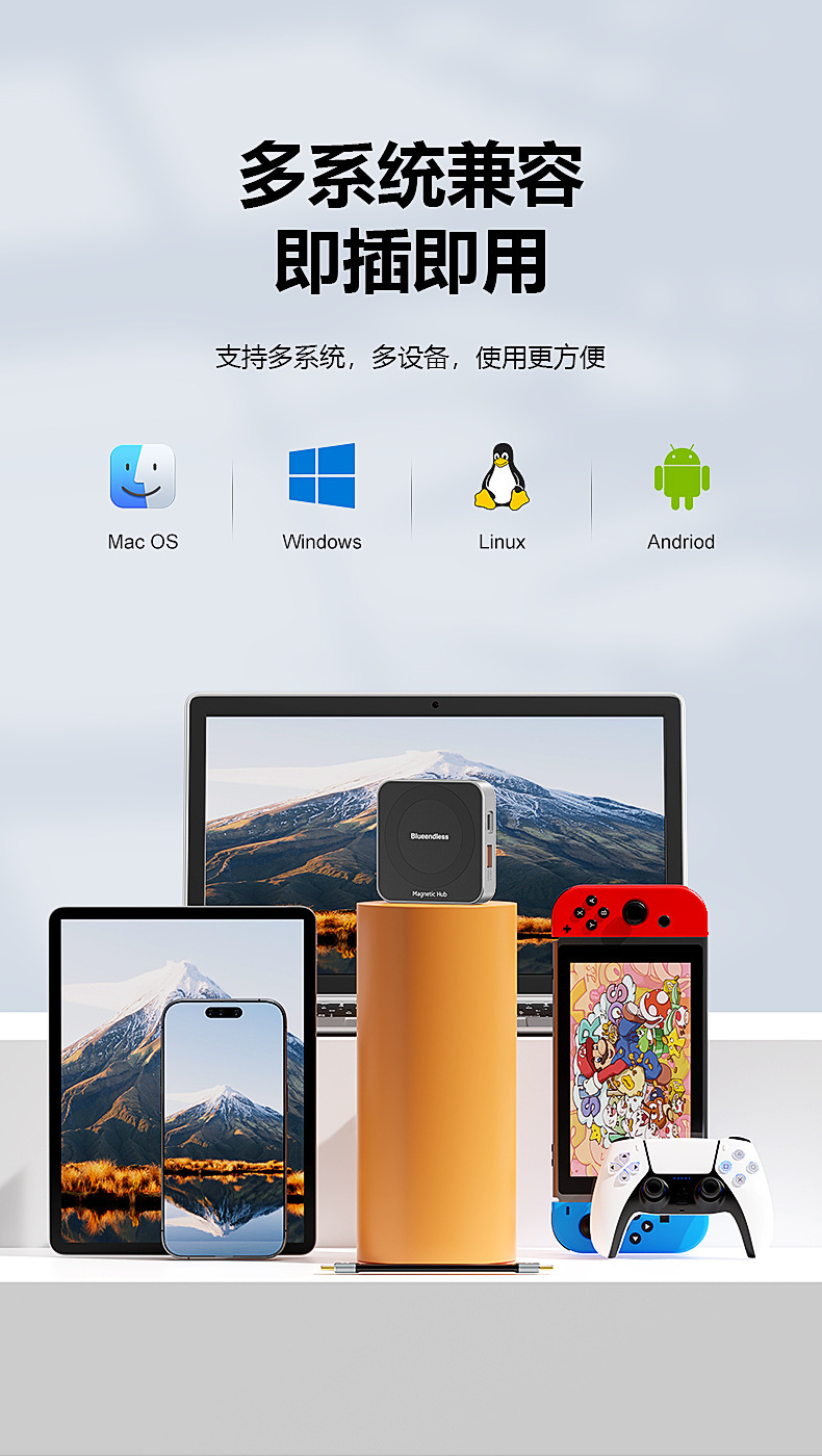 자기 확장 도크 4K 60Hz HD USB 3.2 허브 PD 휴대 전화 노트북 자기 변환 익스텐더스토어 가기