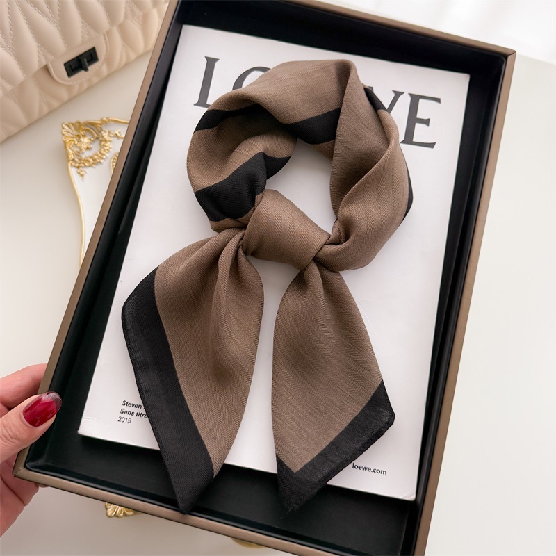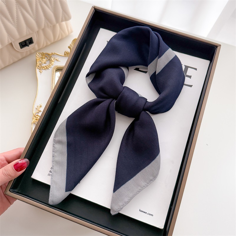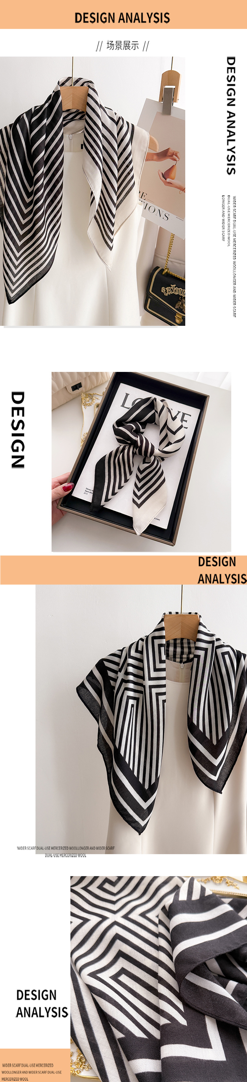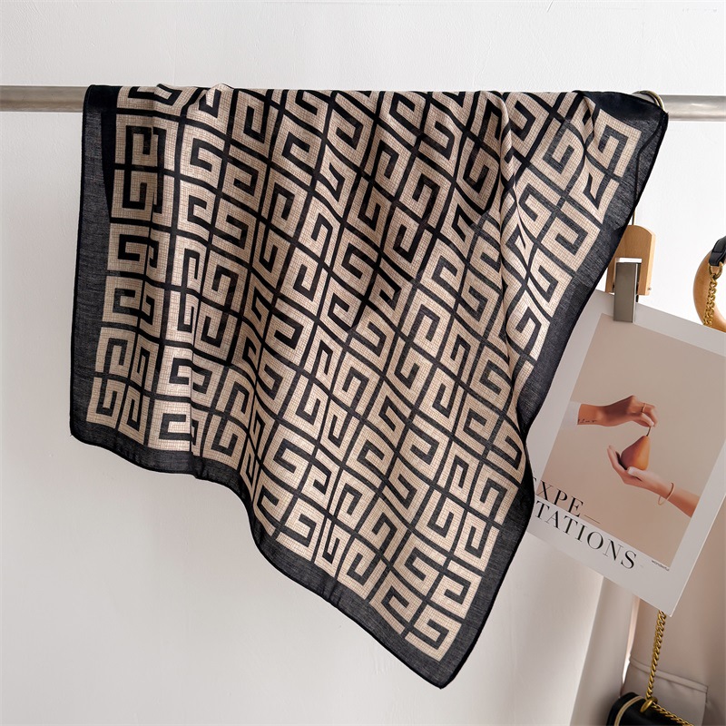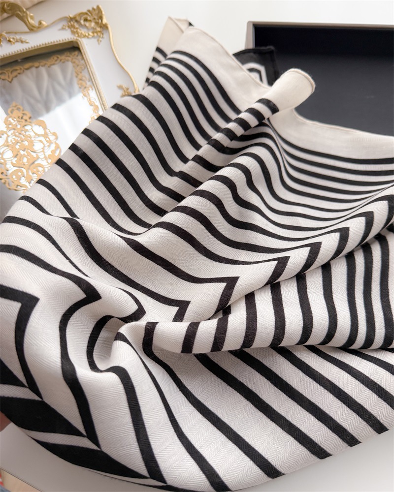 봄과 가을에 인기 있는 스트라이프 프린트 70% 면과 린넨 소재의 작은 스카프, 패셔너블하고 다용도로 활용 가능한 방풍 및 자외선 차단 기능의 전문직 OL용 스카프