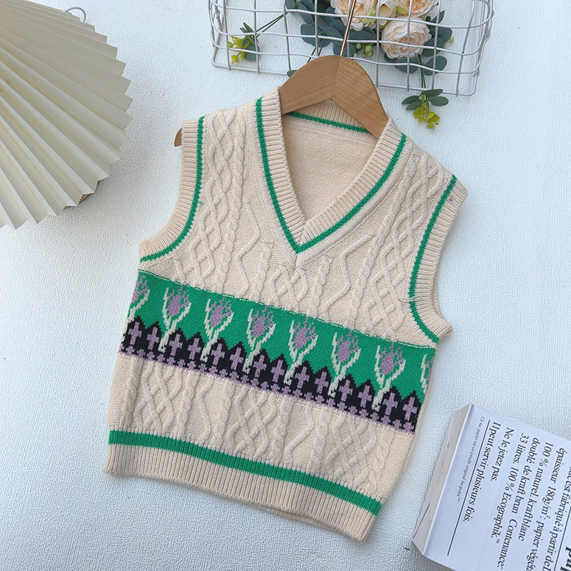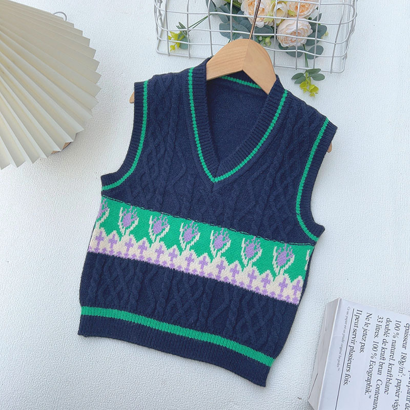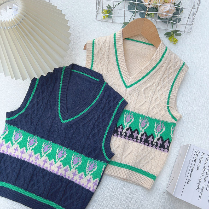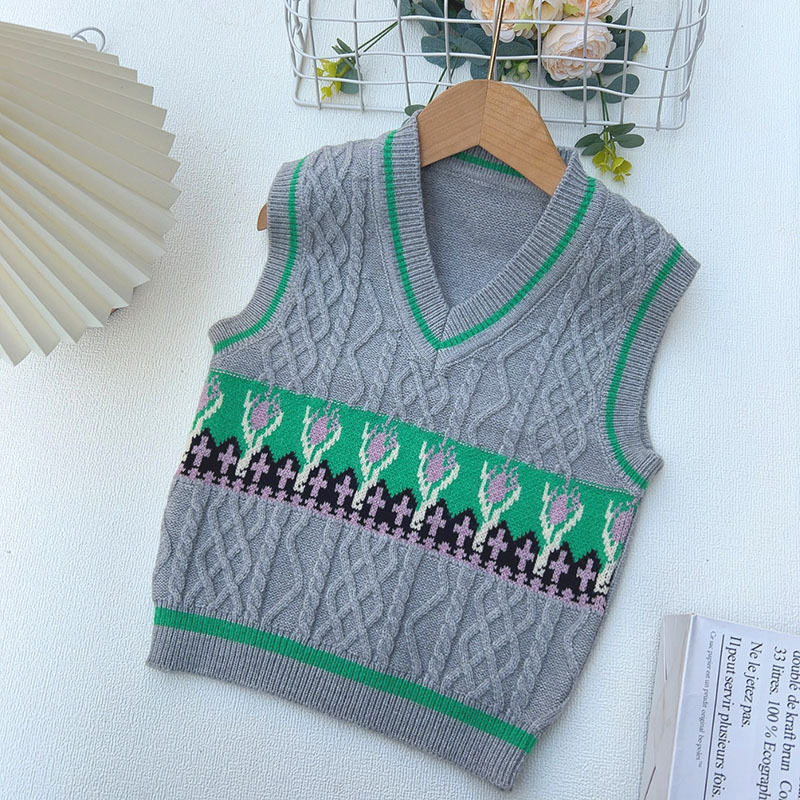 어린이 V 넥 조끼 스웨터 봄과 가을 2025 새로운 소년 스웨터 조끼 어린이 조끼 소년스토어 가기