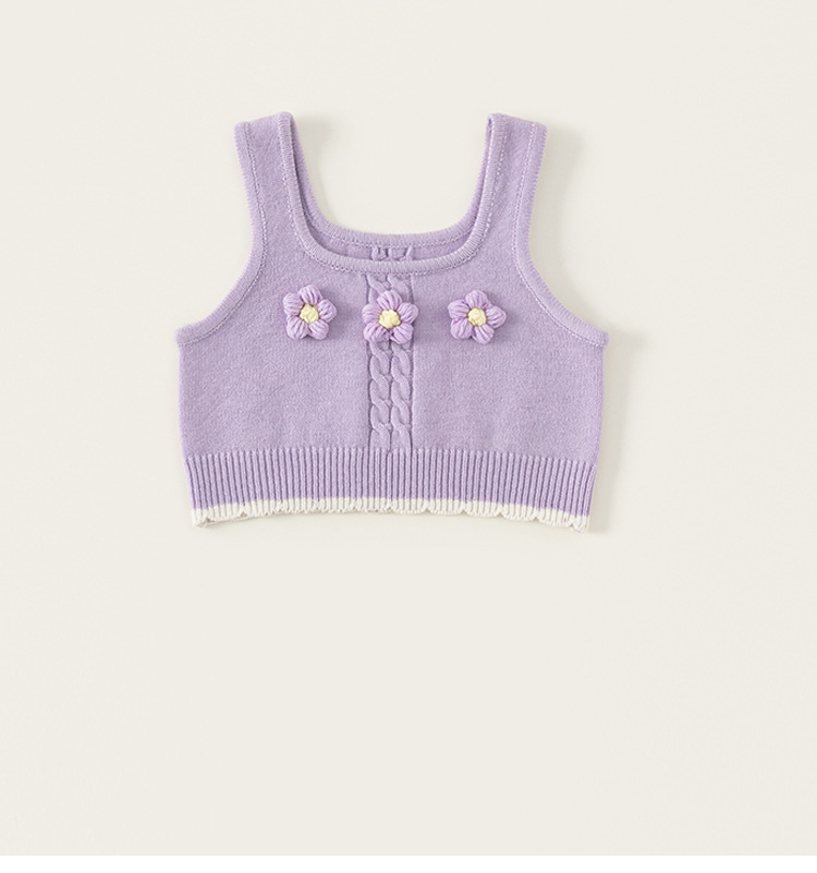 유바오 아동복 여아 니트 조끼 2026 봄 신상 아동용 멜빵탑 세련된 꽃무늬 조끼스토어 가기