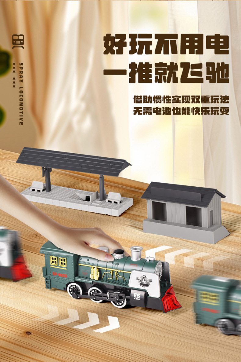 • 레트로 열차 [관성-녹색] 비분무 기관차