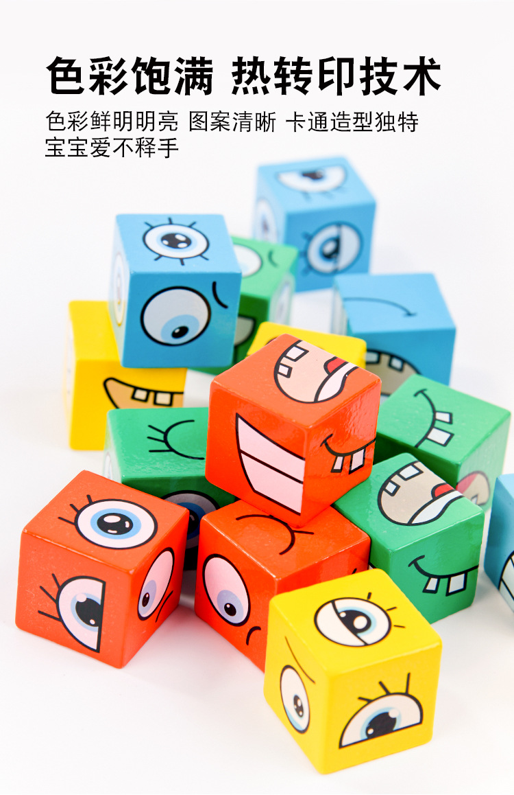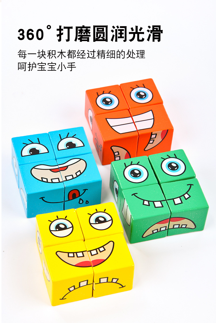 공장 직접 도매 퍼즐 조기 교육 목조 데스크탑 인터랙티브 빌딩은 당신이 울고있는 다양한 표현을 차단합니다. 루빅의 큐브를 웃습니다.스토어 가기