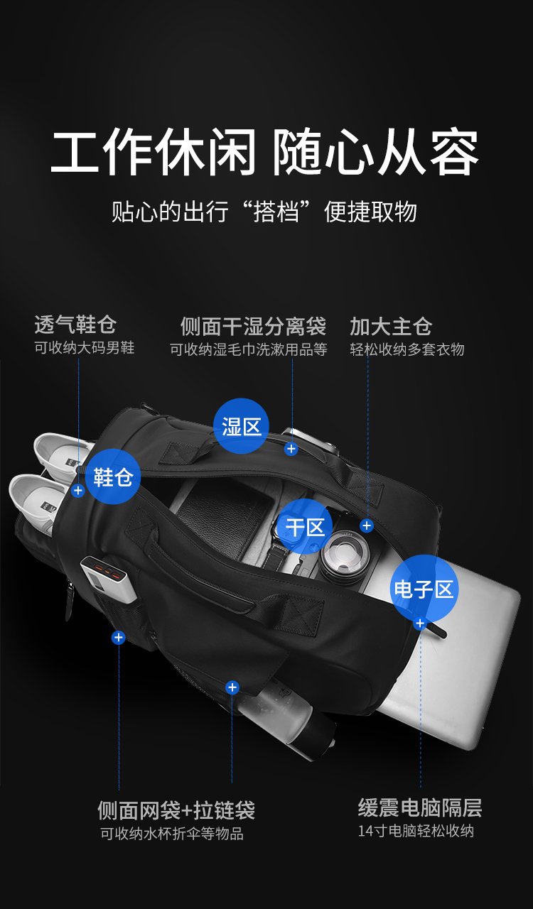 국경 간 새로운 하이 퀄리티 여행 가방 다기능 건조하고 젖은 분리 체육관 가방 패션 비즈니스 남성 컴퓨터 배낭
