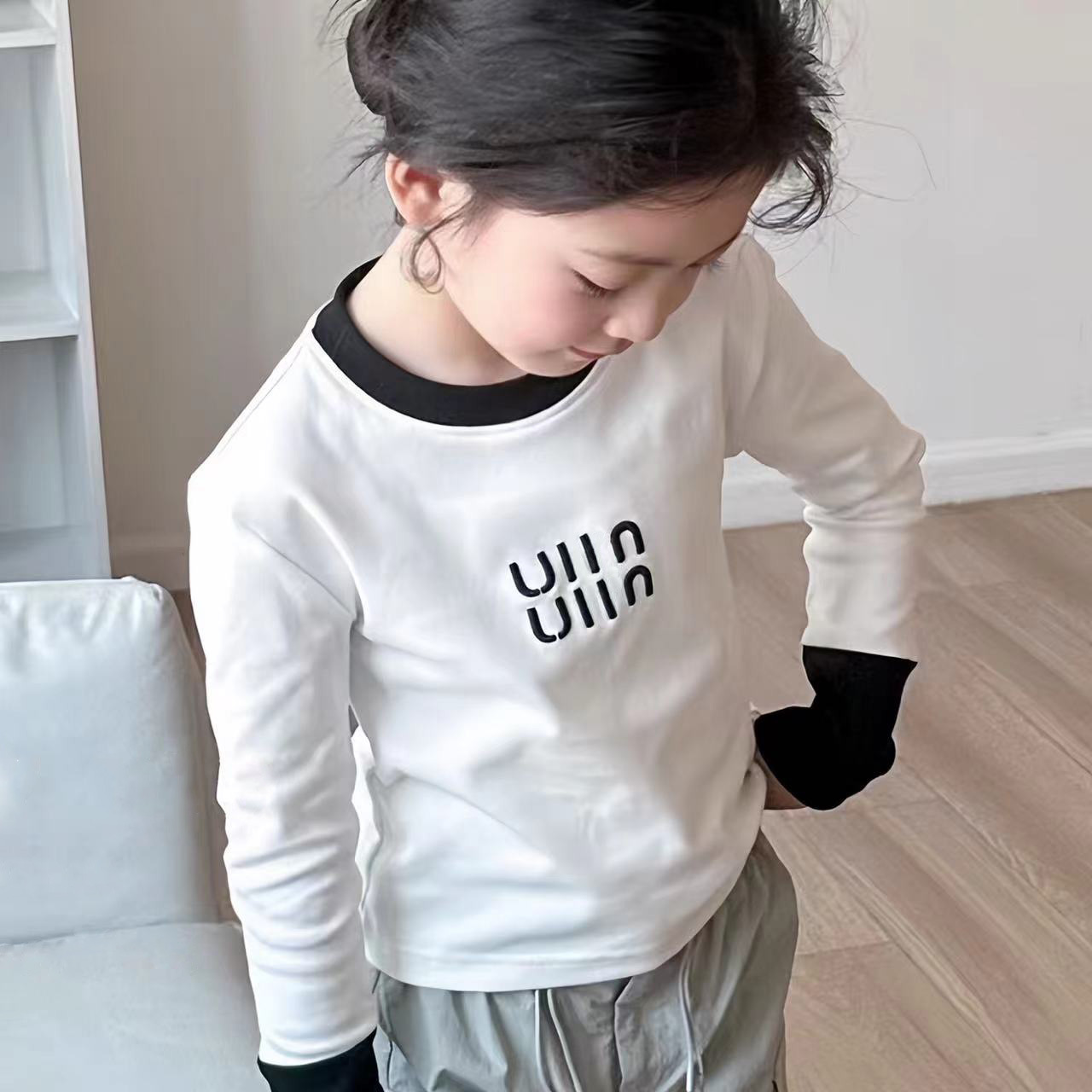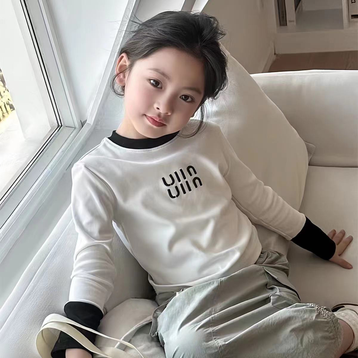 (재고) 소녀 긴팔 어린이 솔리드 컬러 아우터 올매치 베이스 셔츠 트렌디 슬림 핏 쇼트 콘트라스트 탑