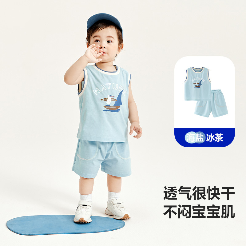 어린이 스포츠 반팔 세트 2025 여름 남자와 여자의 빠른 건조 달리기 통기성 아기 투피스 세트스토어 가기