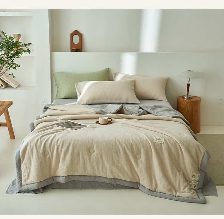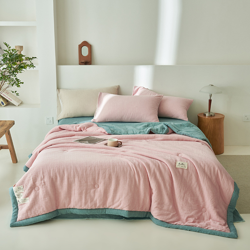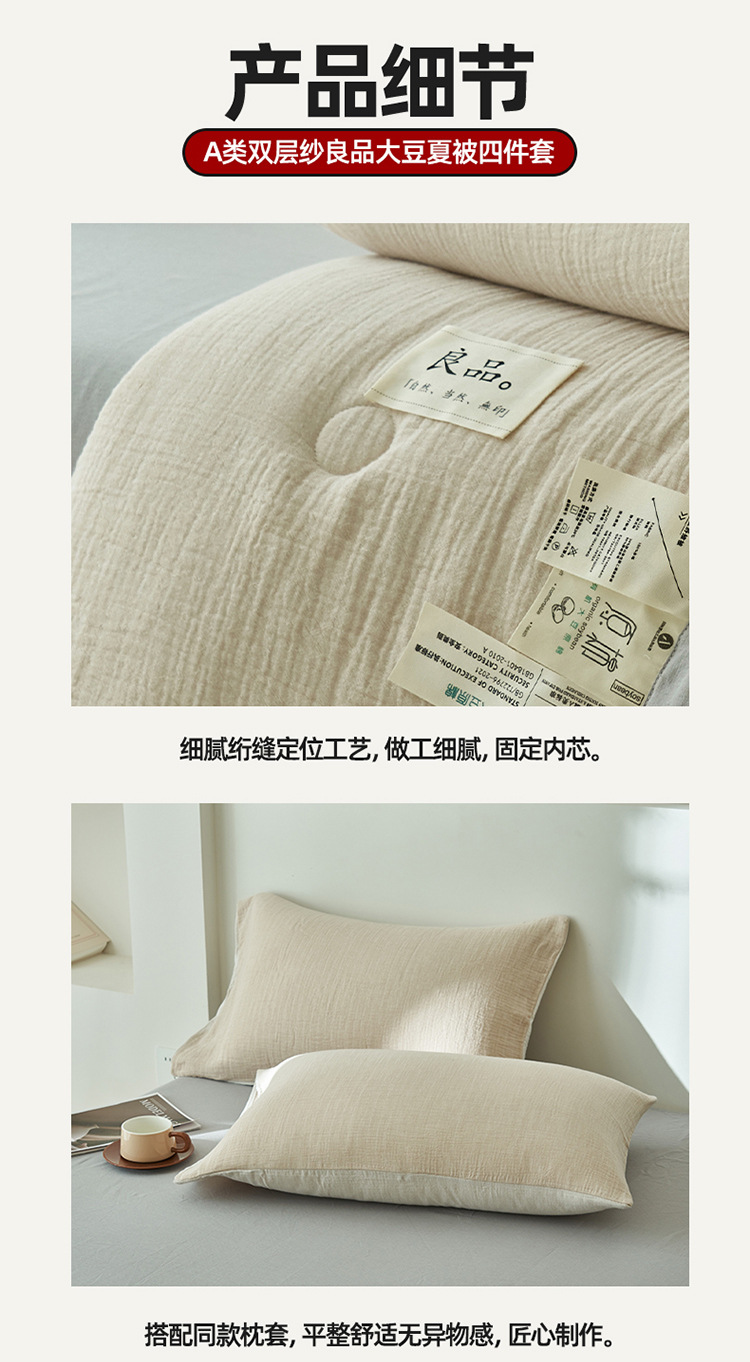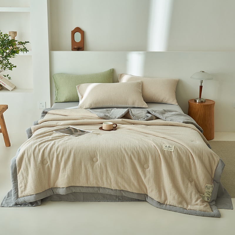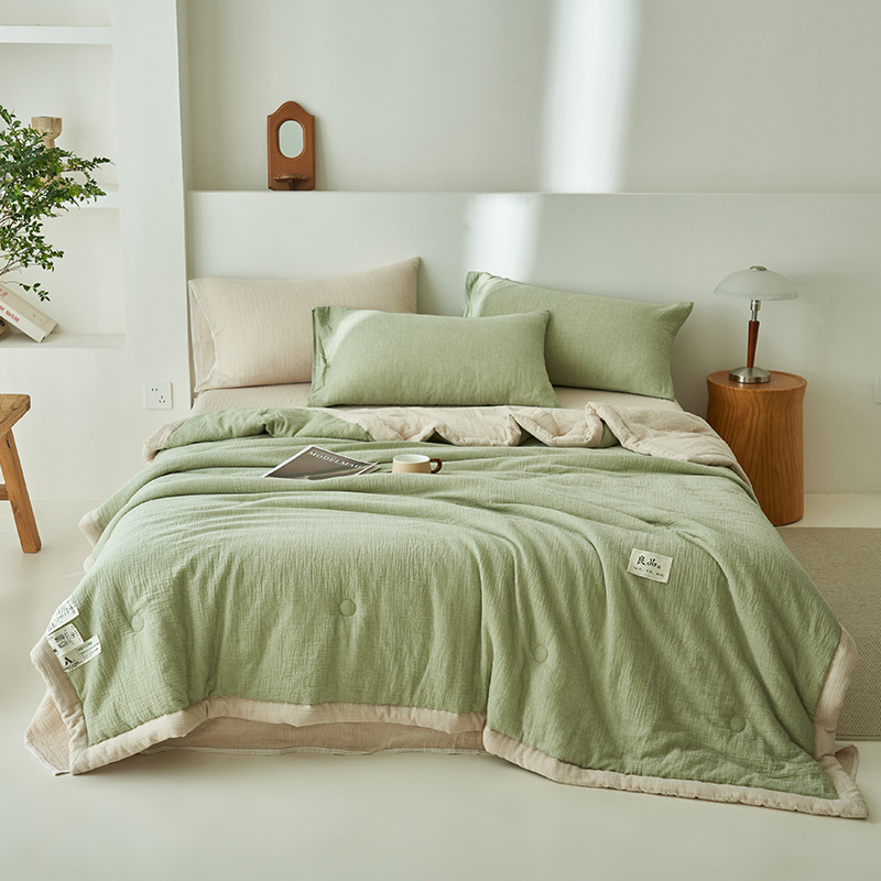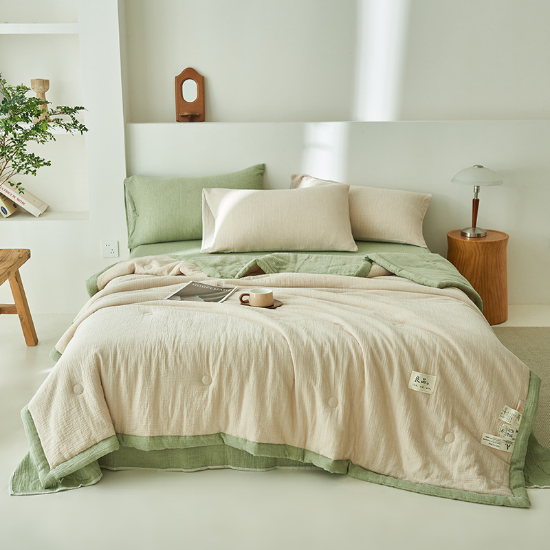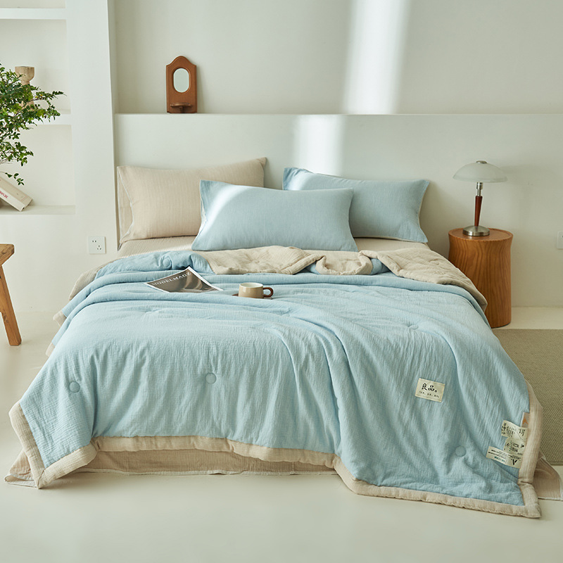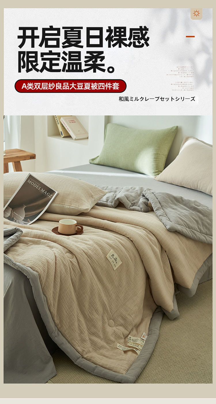 클래스 A 더블 레이어 원사 콩 섬유 여름 쿨 이불 에어컨 이불 기계 세탁기 여름 여름 이불 4 종 세트 여름 얇은 이불 코어 4