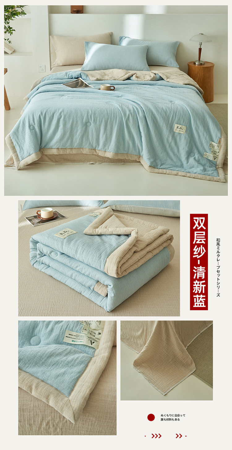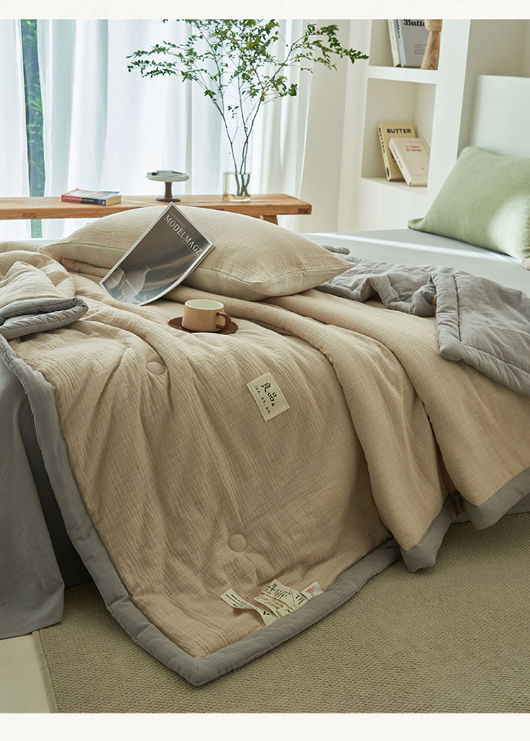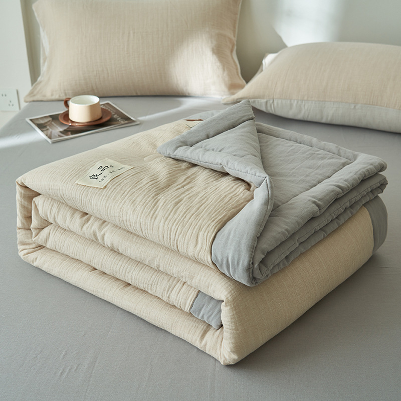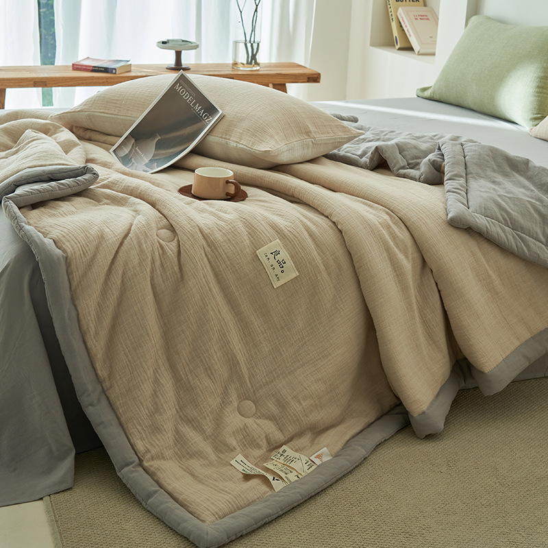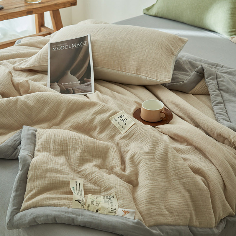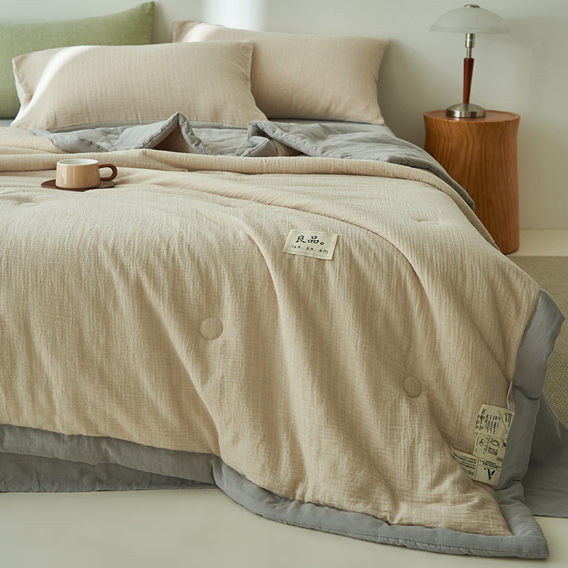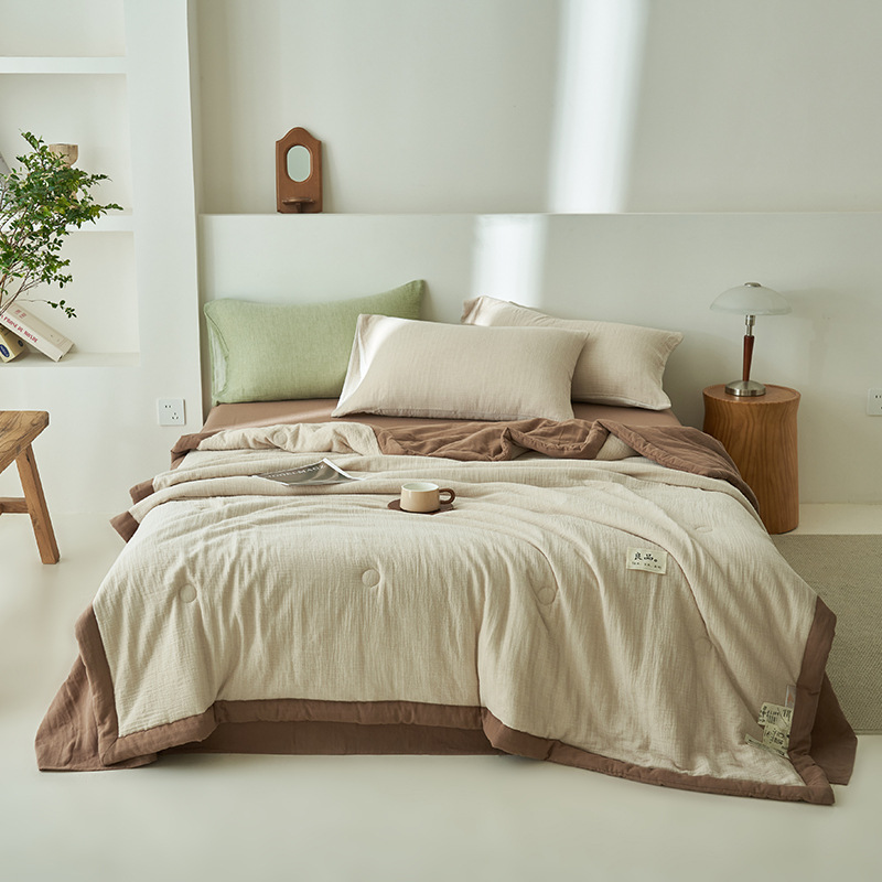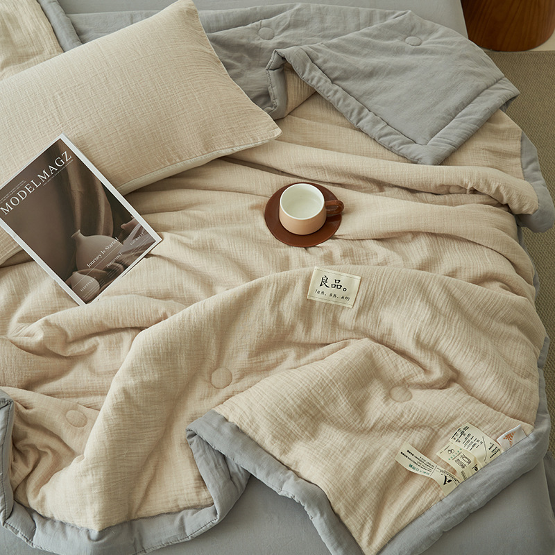 클래스 A 더블 레이어 원사 콩 섬유 여름 쿨 이불 에어컨 이불 기계 세탁기 여름 여름 이불 4 종 세트 여름 얇은 이불 코어 4