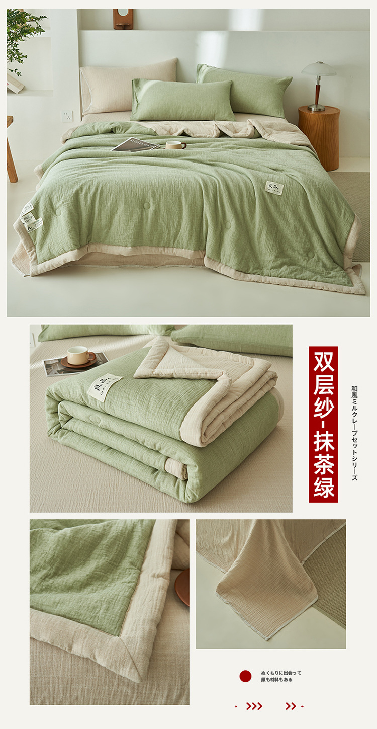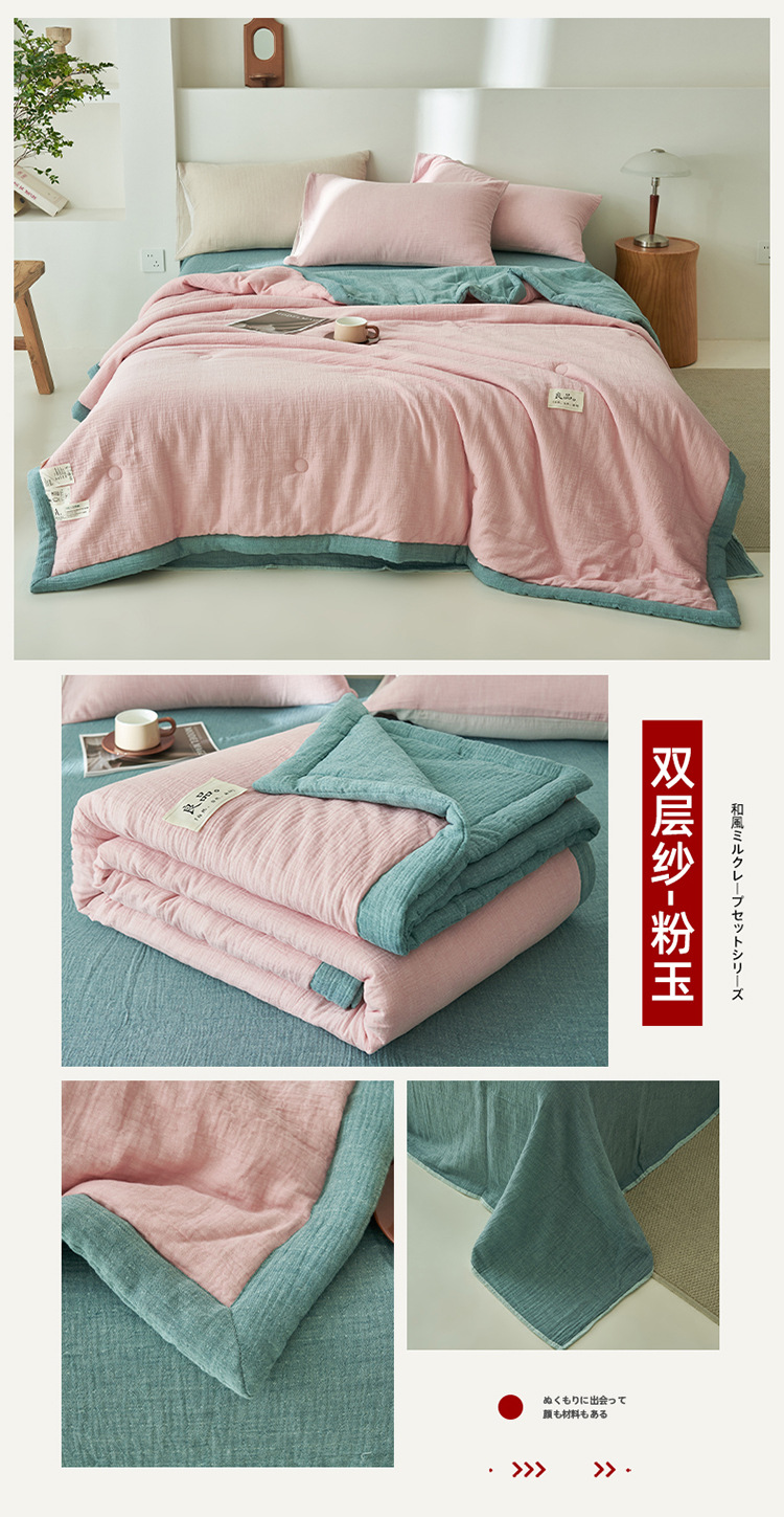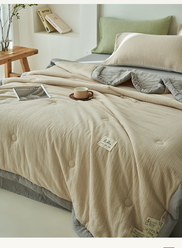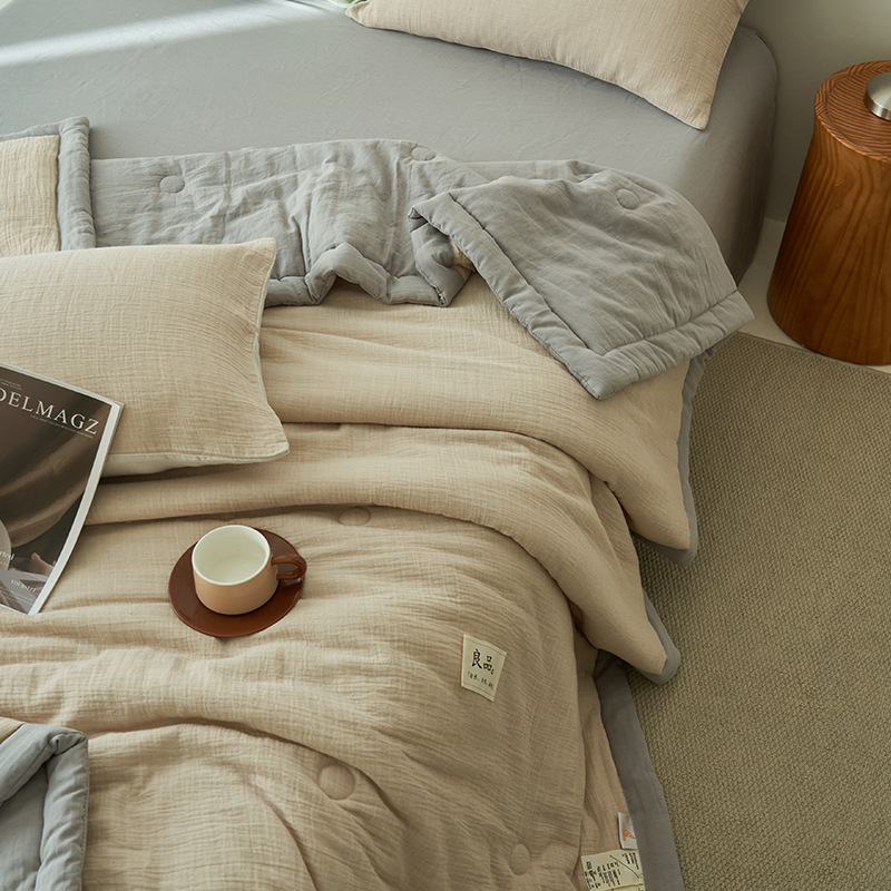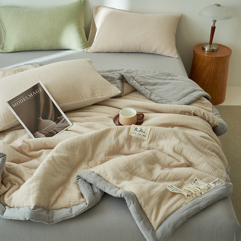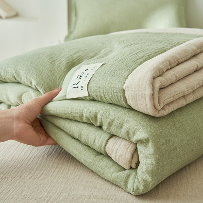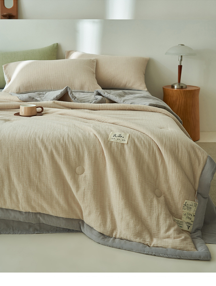클래스 A 더블 레이어 원사 콩 섬유 여름 쿨 이불 에어컨 이불 기계 세탁기 여름 여름 이불 4 종 세트 여름 얇은 이불 코어 4