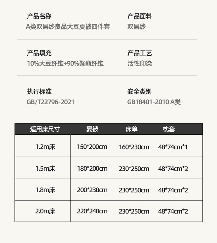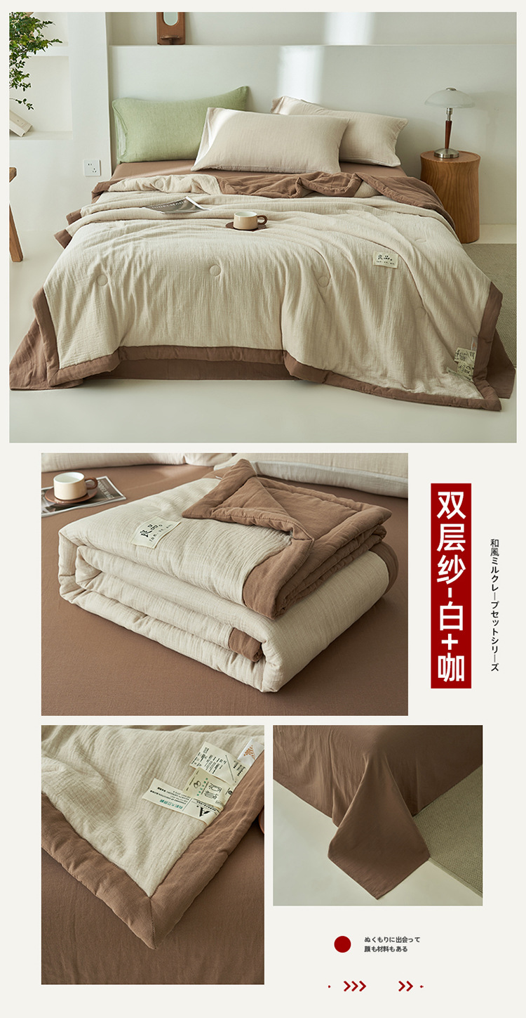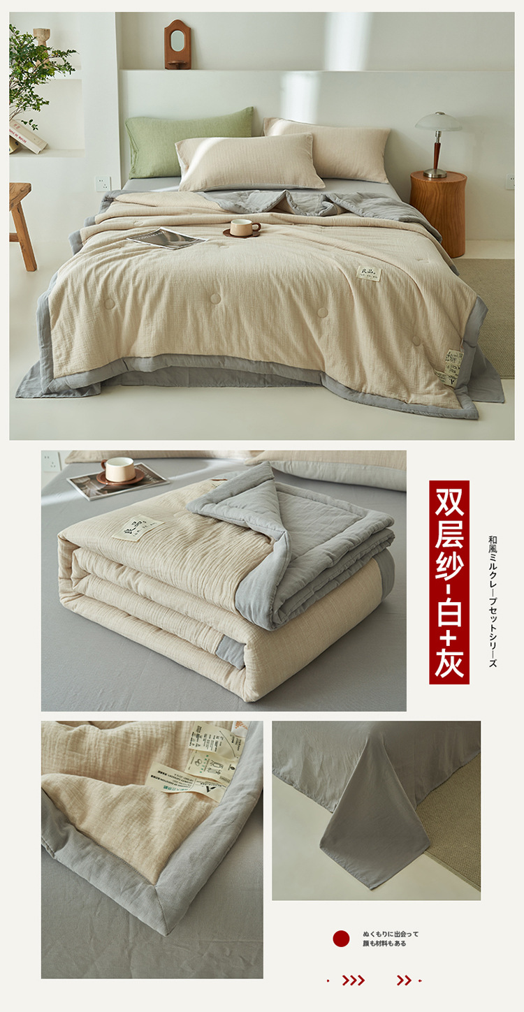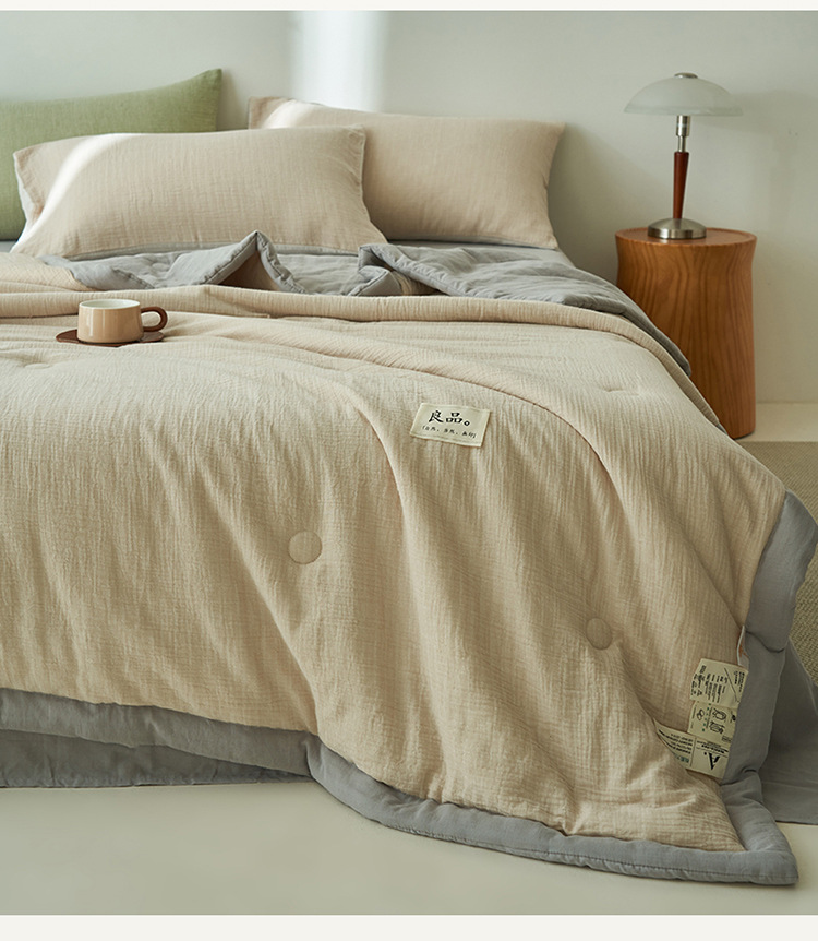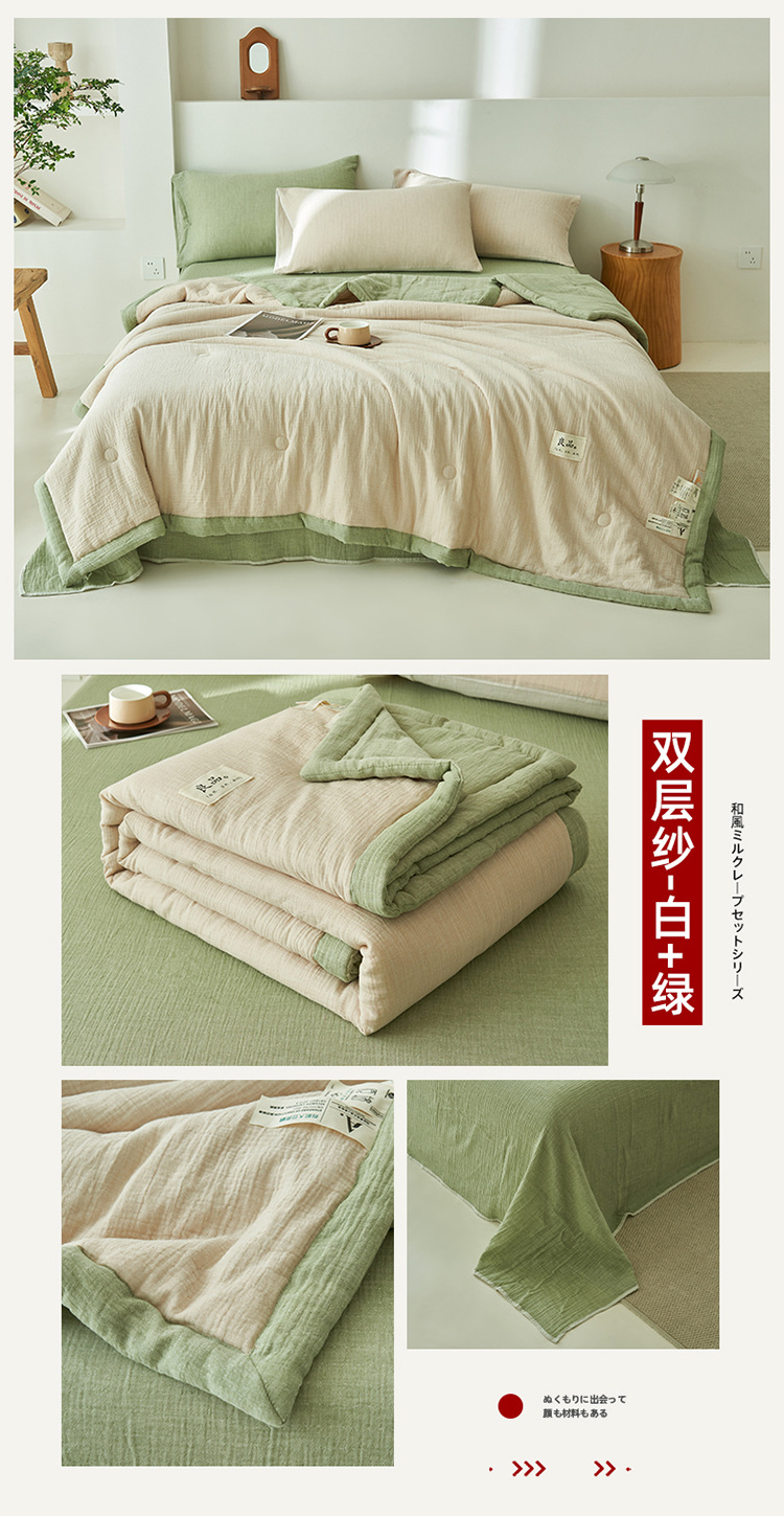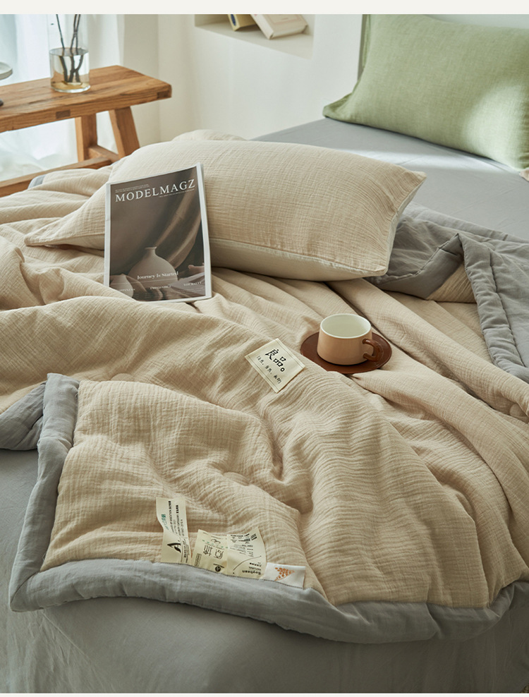 클래스 A 더블 레이어 원사 콩 섬유 여름 쿨 이불 에어컨 이불 기계 세탁기 여름 여름 이불 4 종 세트 여름 얇은 이불 코어 4