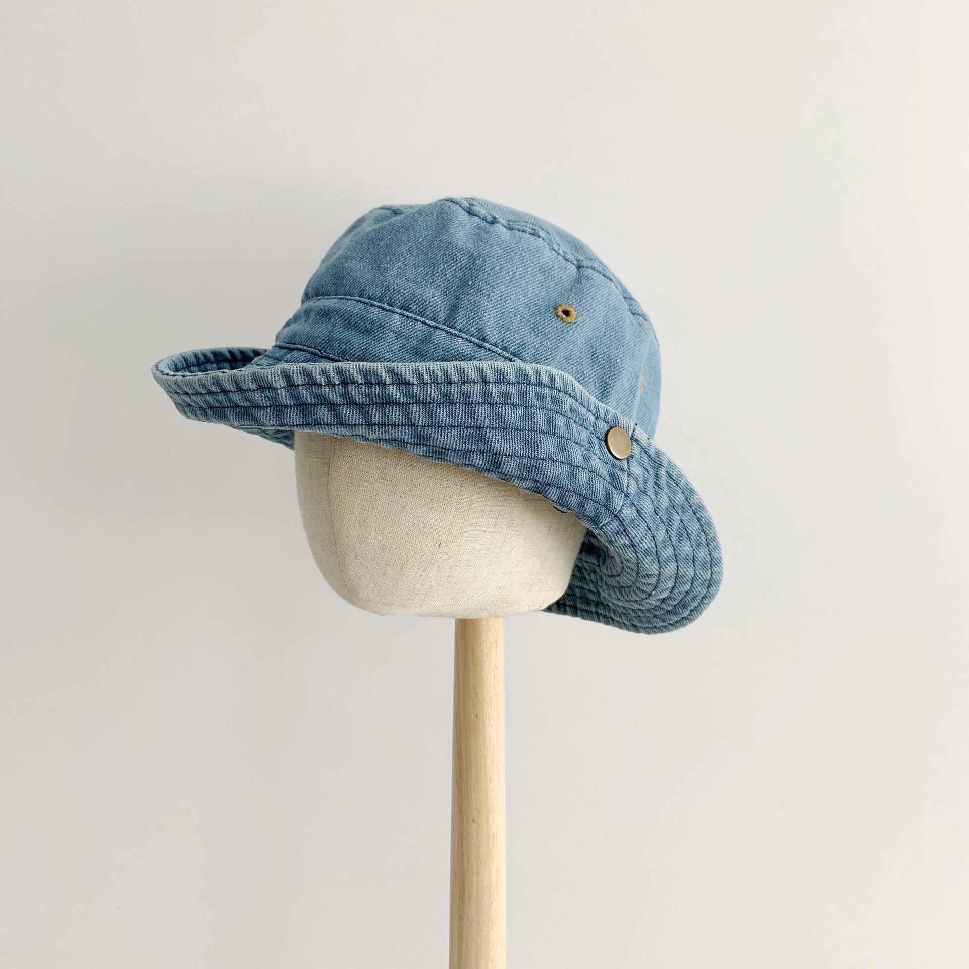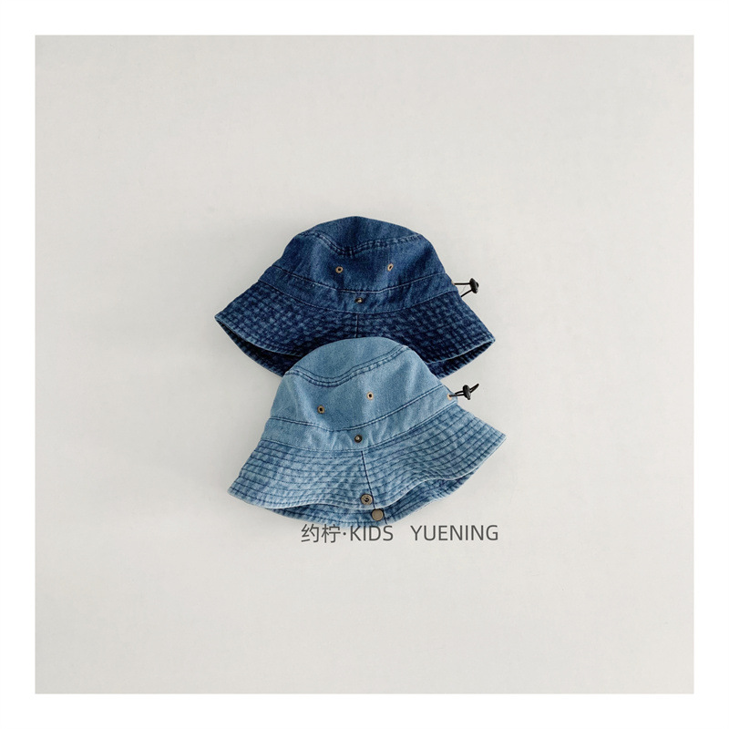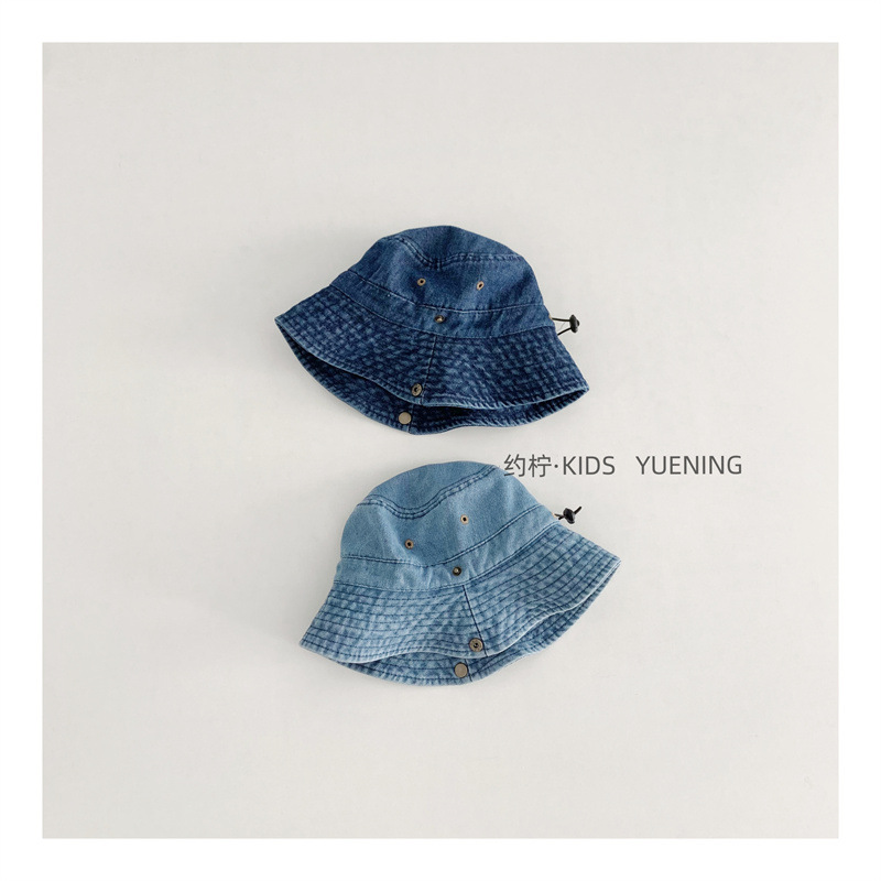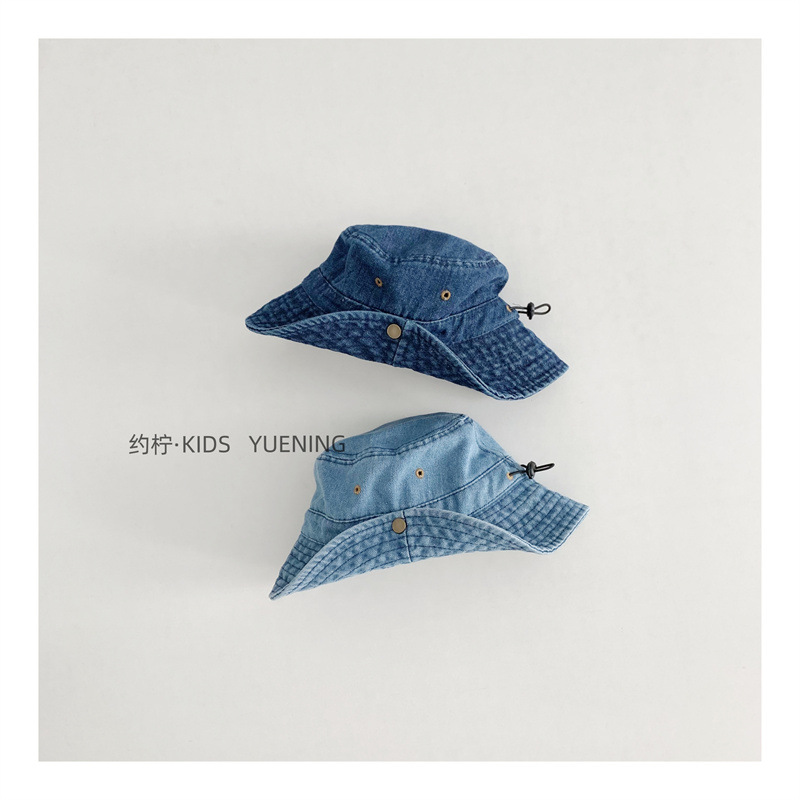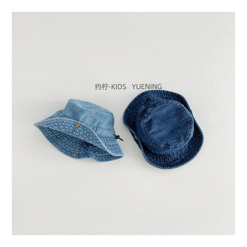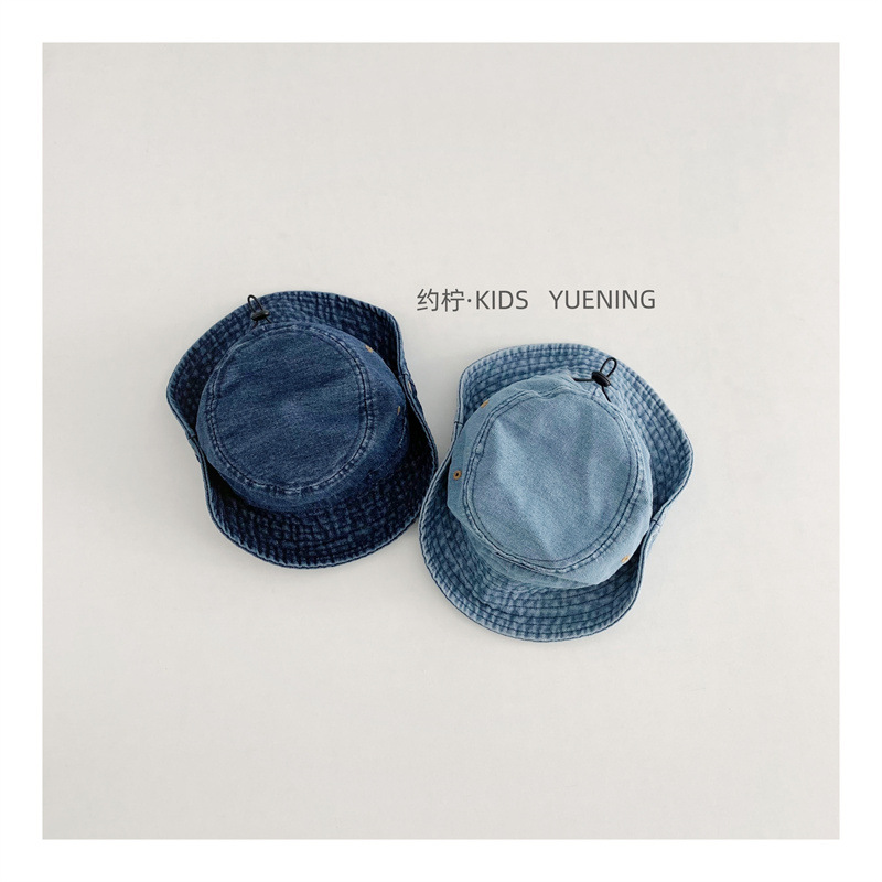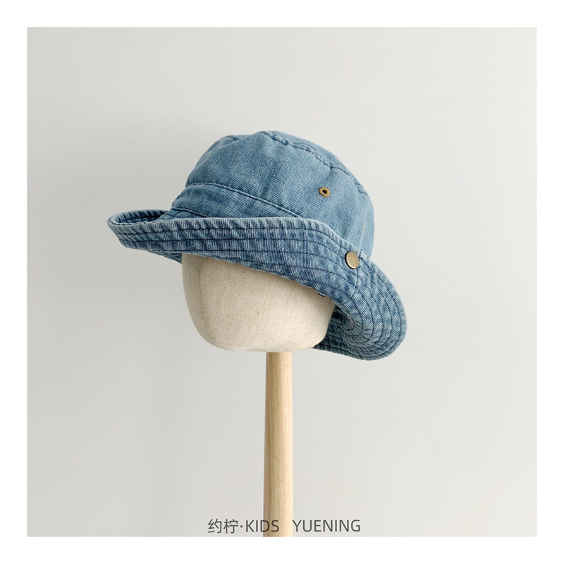 어린이 카우보이 모자 캐주얼 단순 올 매치 보이즈 야외 햇빛 턴업 분지 모자 베이비 스타일라인 데님 어부 모자스토어 가기