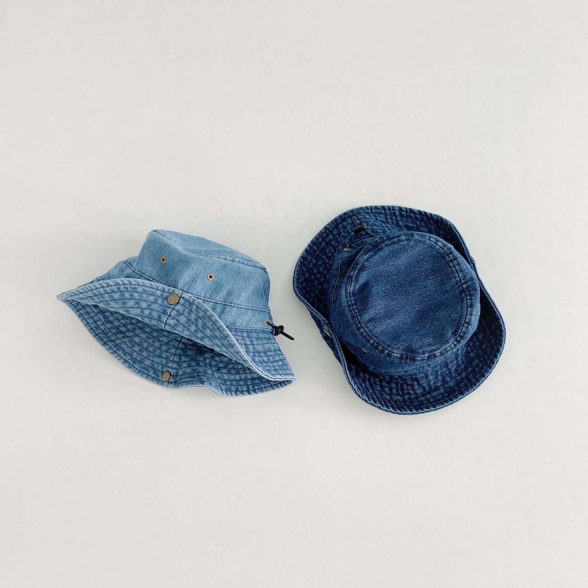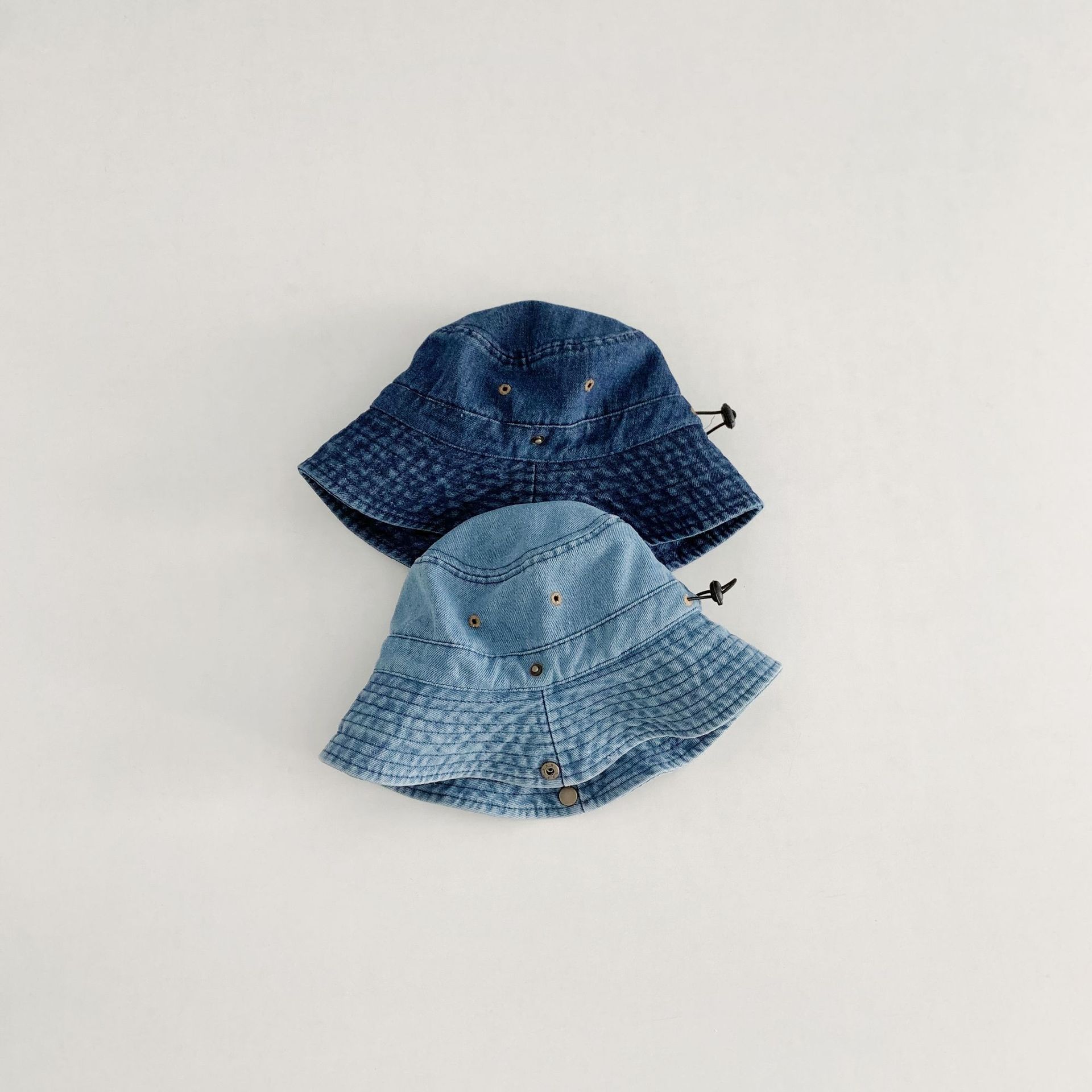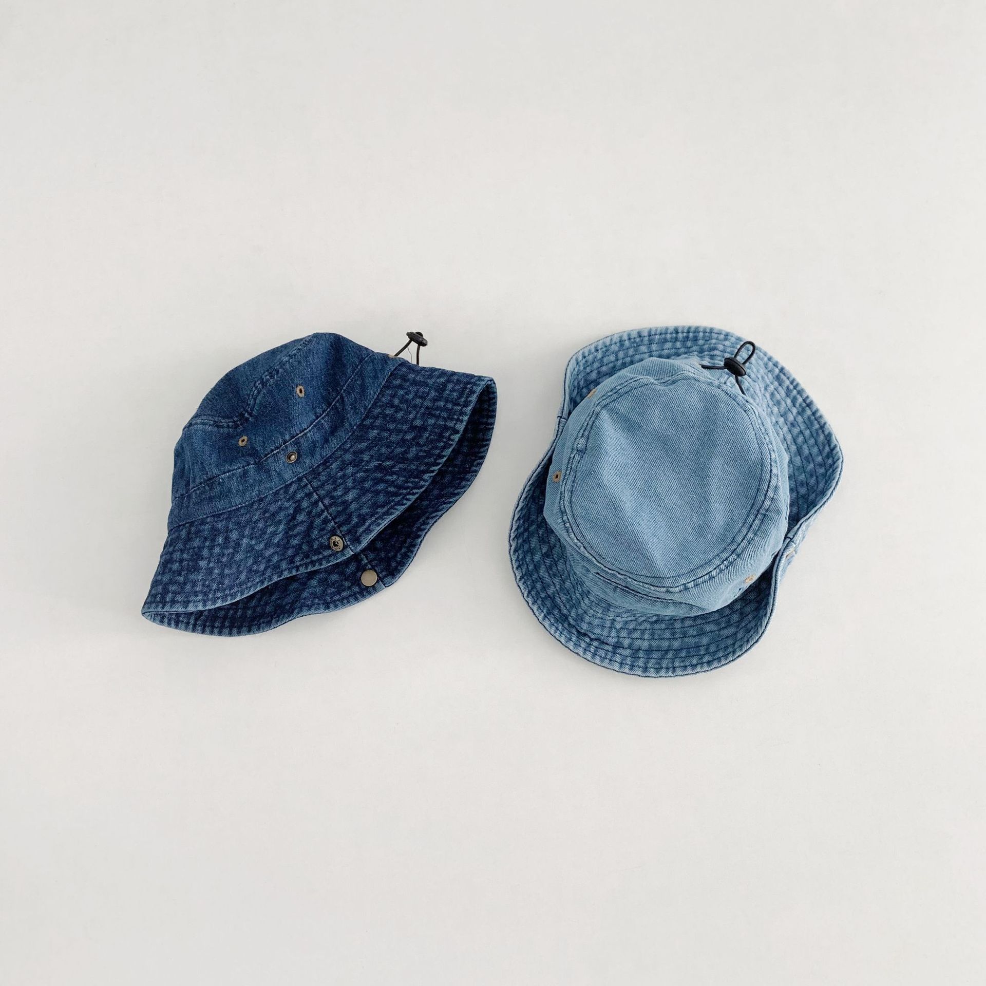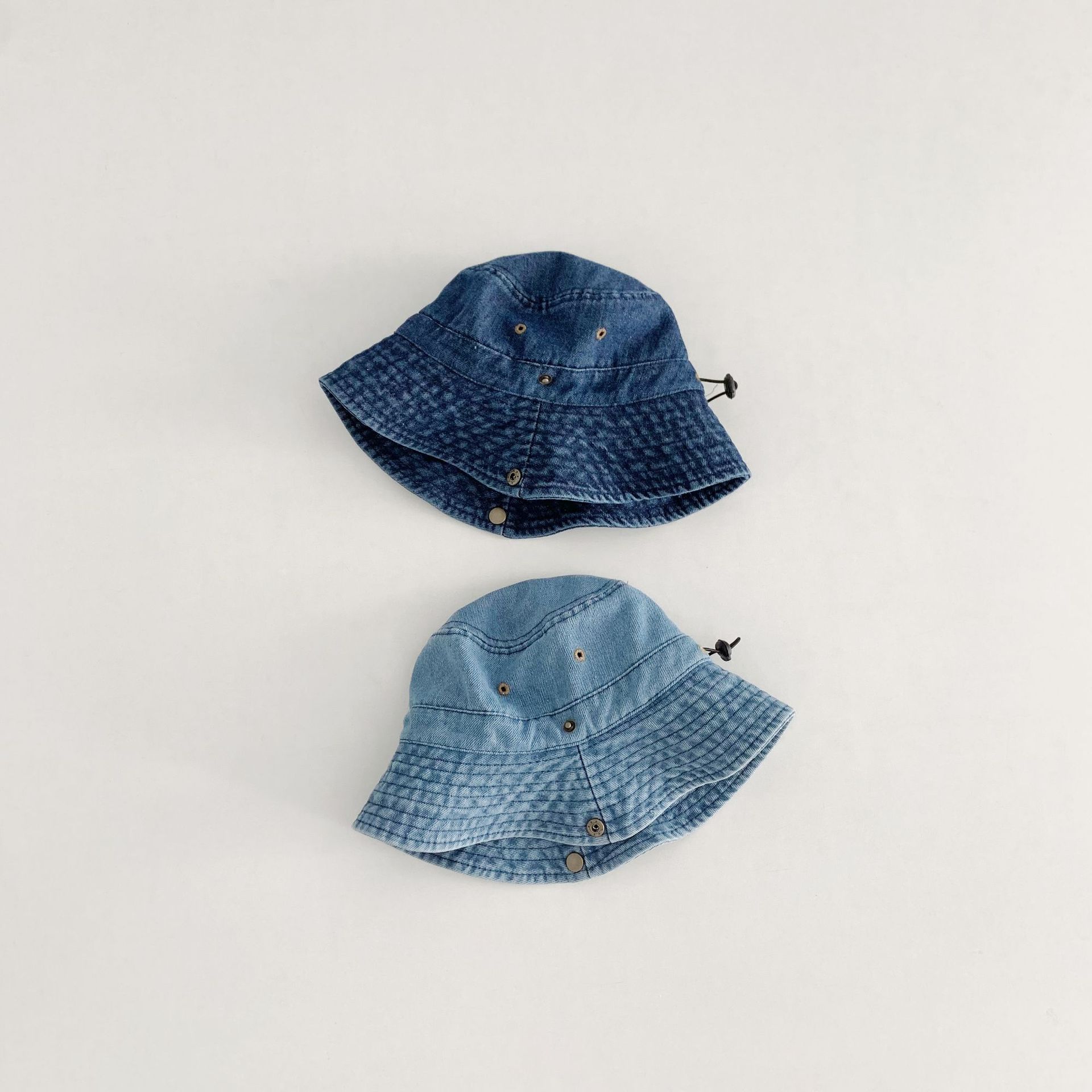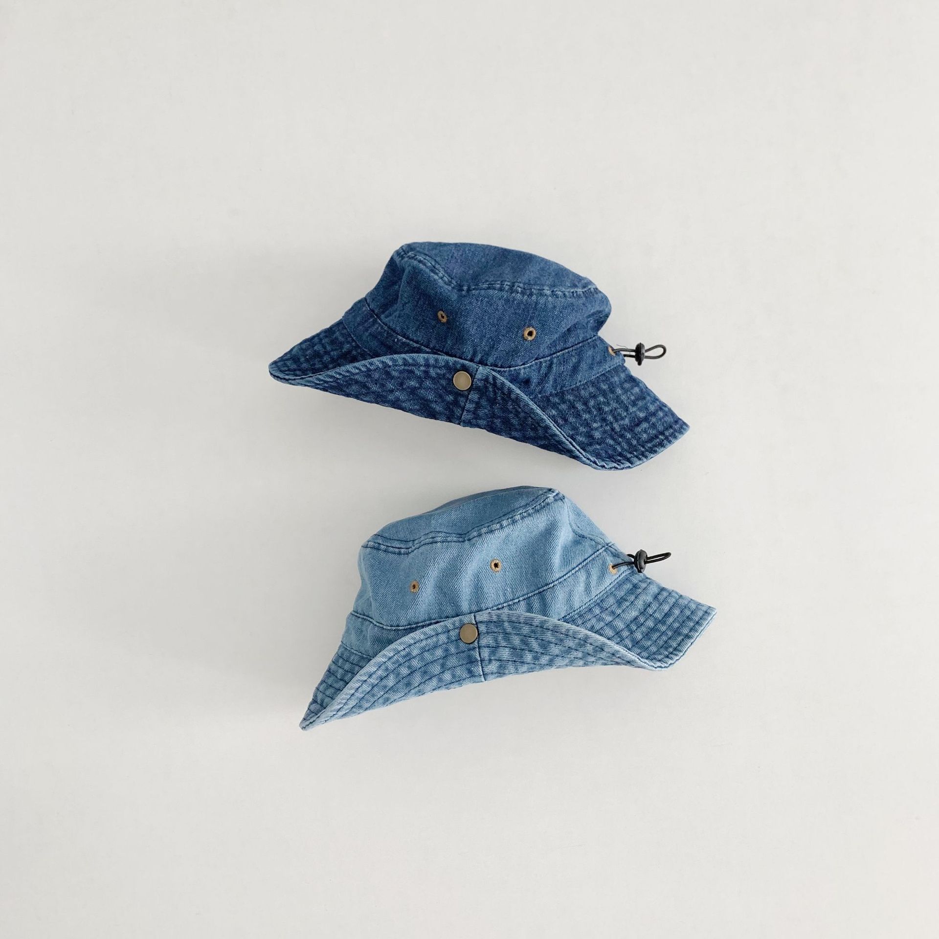 어린이 카우보이 모자 캐주얼 단순 올 매치 보이즈 야외 햇빛 턴업 분지 모자 베이비 스타일라인 데님 어부 모자스토어 가기