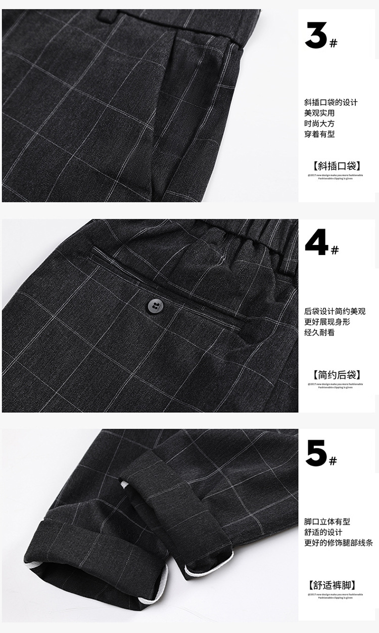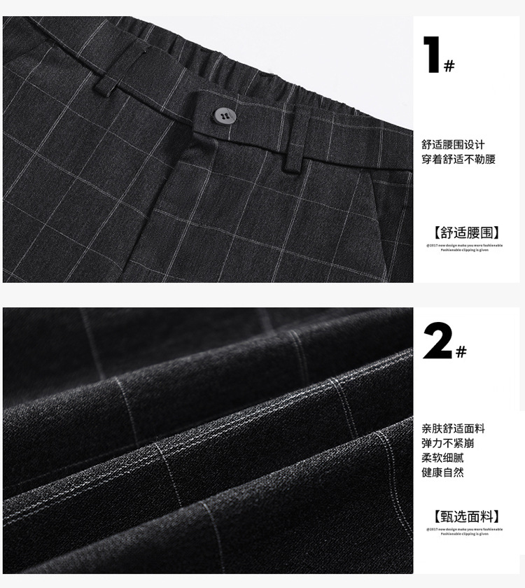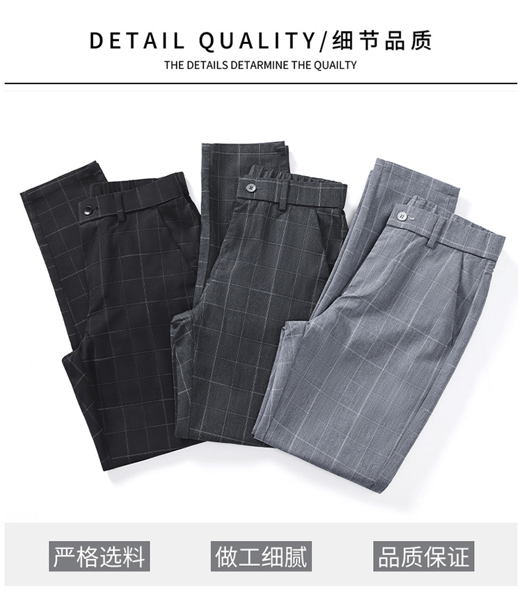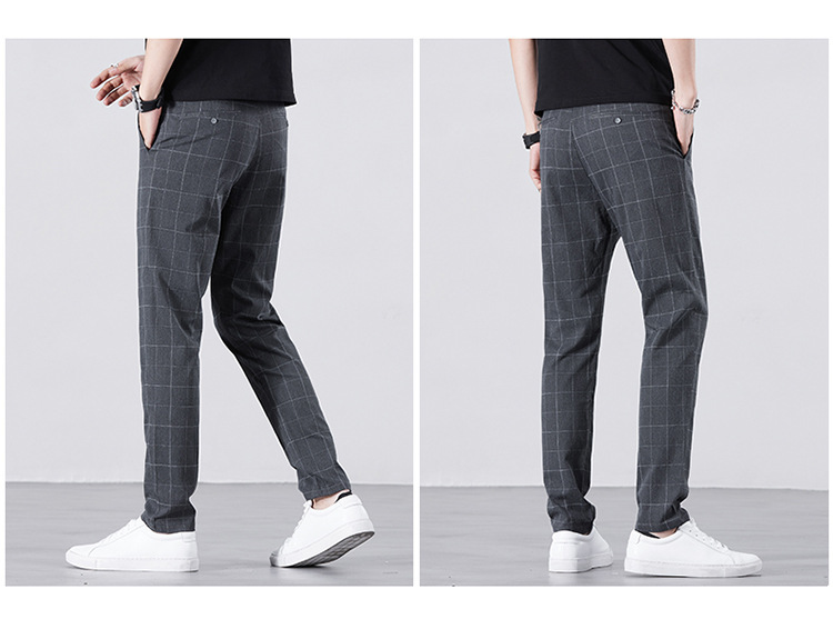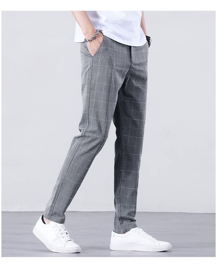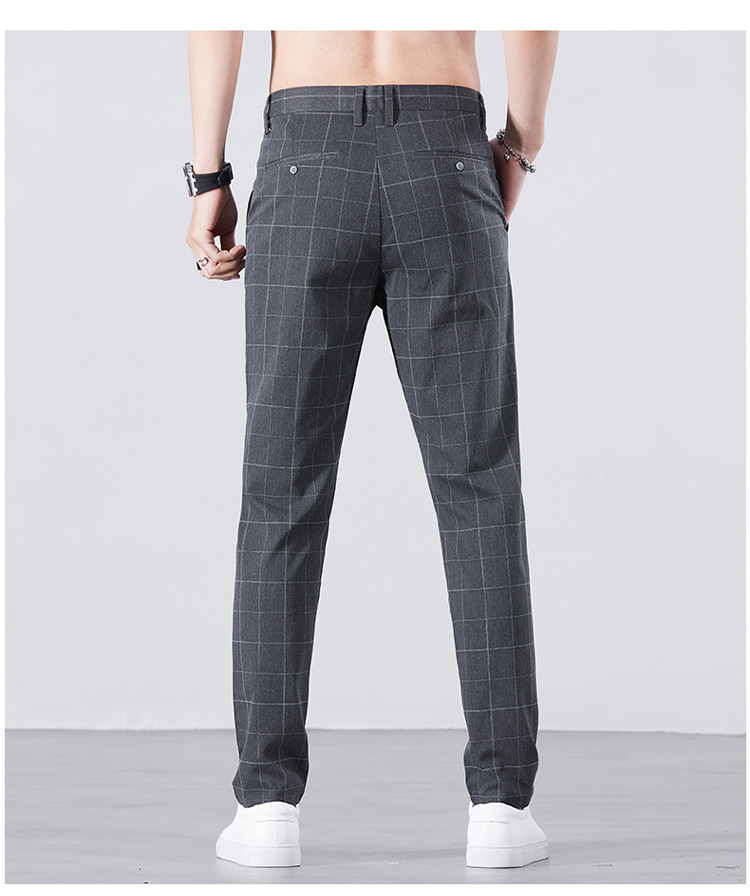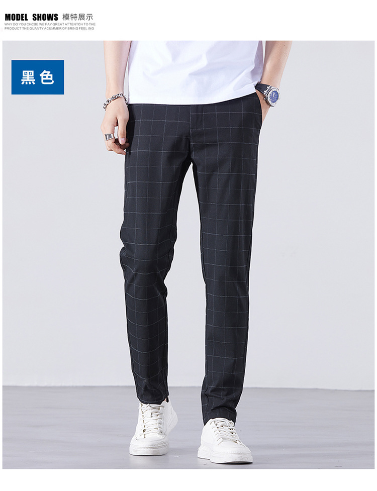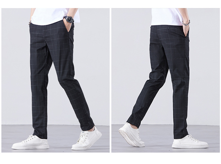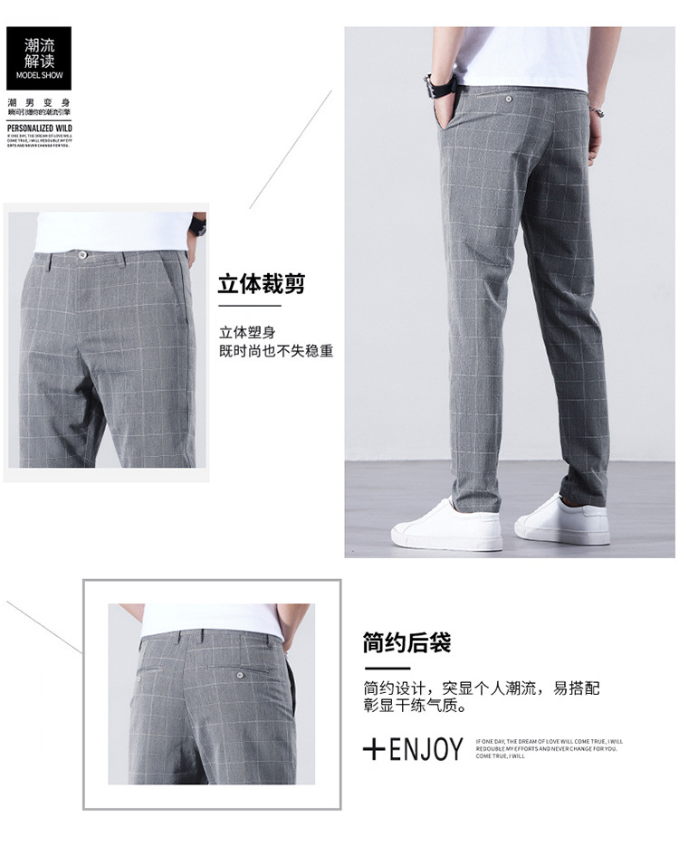 남성용 아이스 실크 캐주얼 팬츠 슬림핏 슬랙스 여름 얇은 체크 무늬 시원한 다용도 긴바지