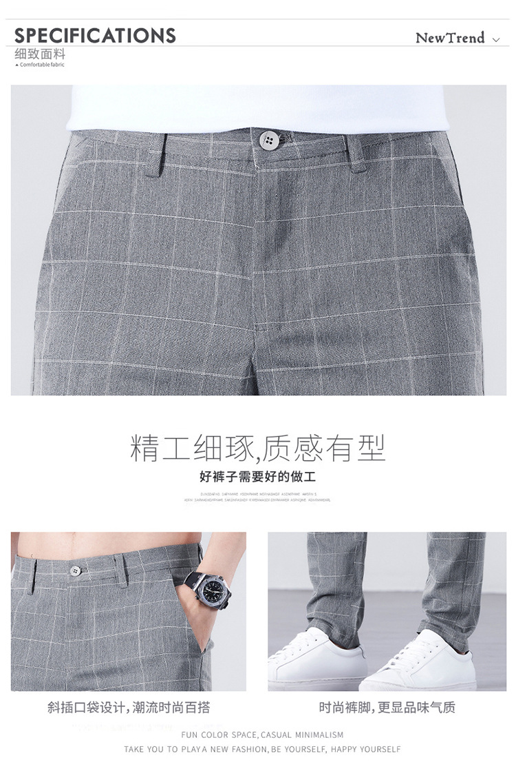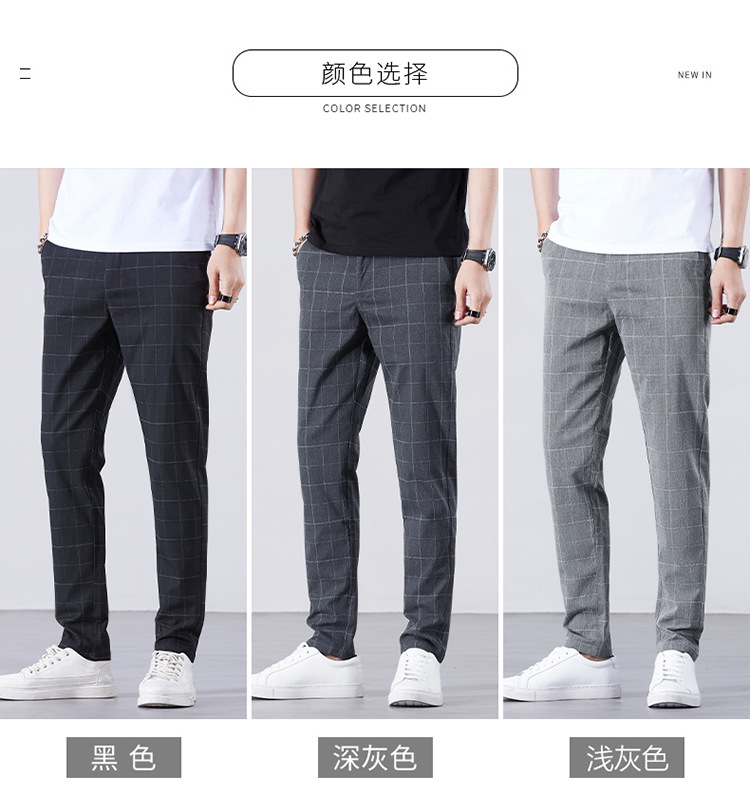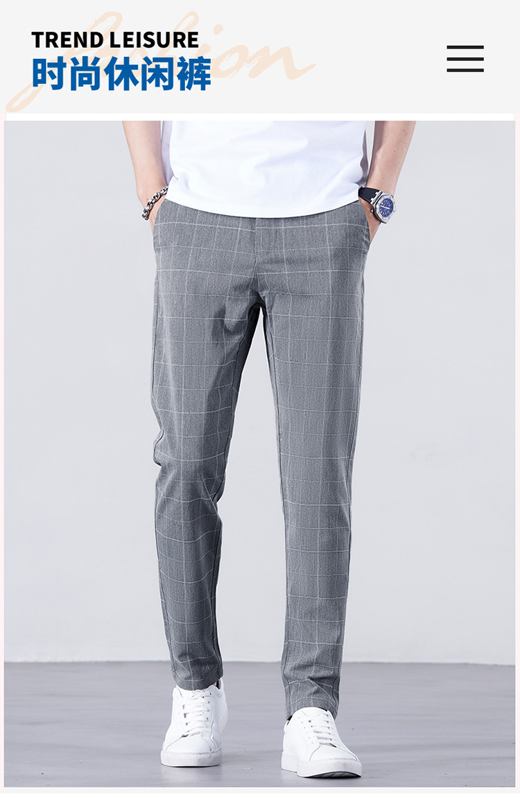 남성용 아이스 실크 캐주얼 팬츠 슬림핏 슬랙스 여름 얇은 체크 무늬 시원한 다용도 긴바지스토어 가기