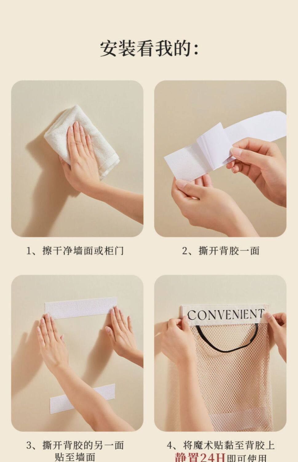 • 아이보리색 [1개입] 망사 벨크로 수납 주머니