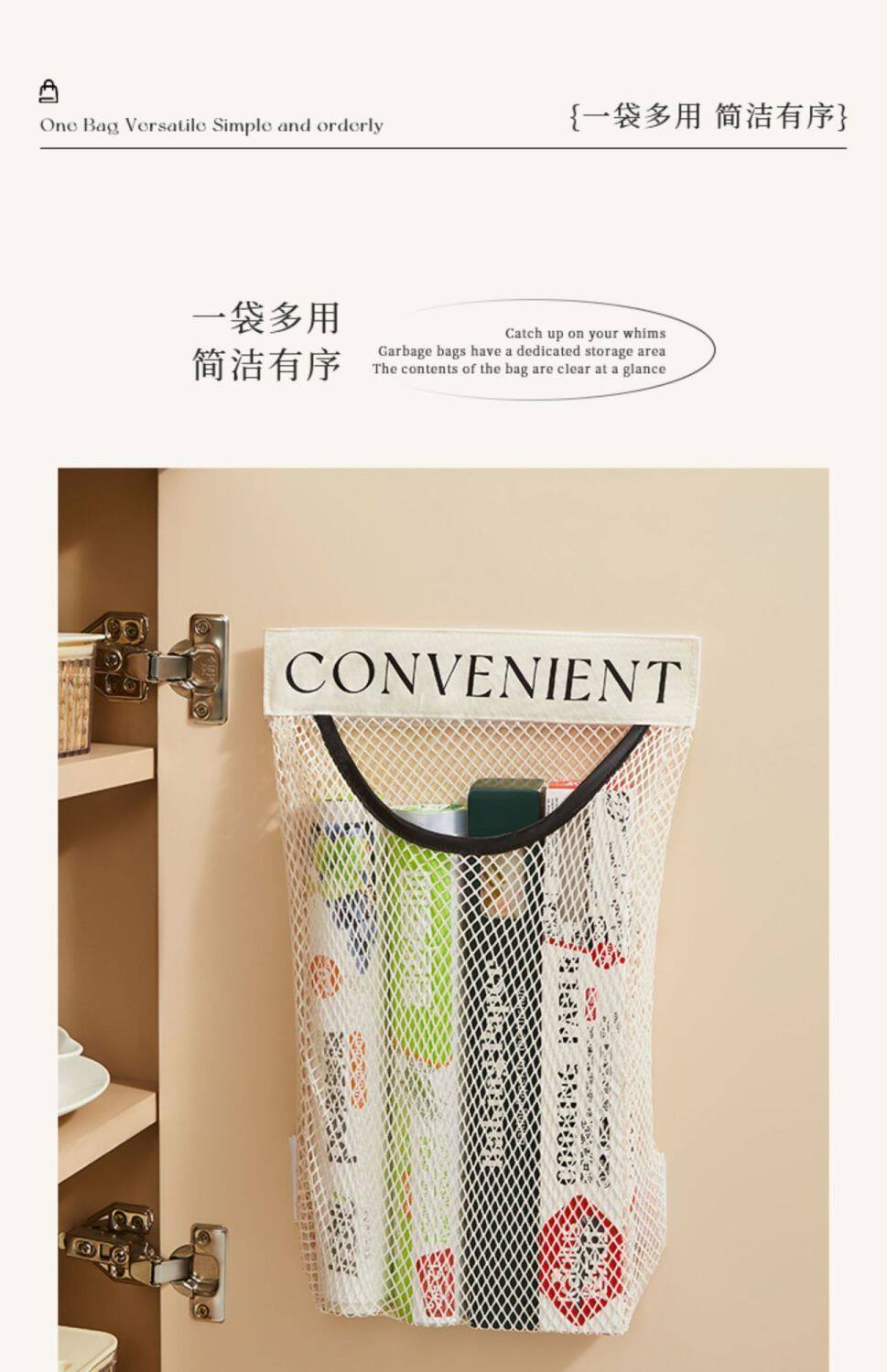 주방 쓰레기봉투 보관 가방 벽걸이형 대용량 수납 가방 비닐봉투 메쉬백 벨크로 메쉬백