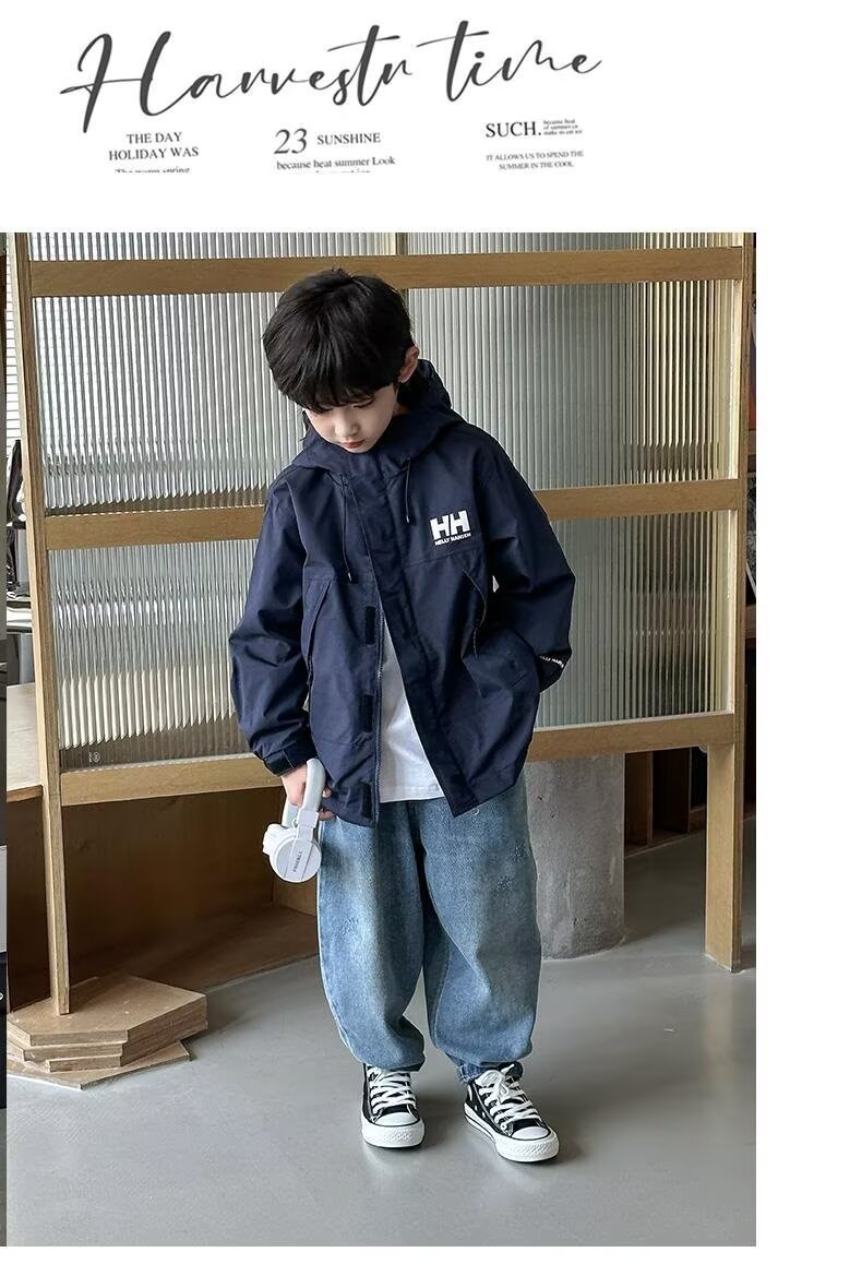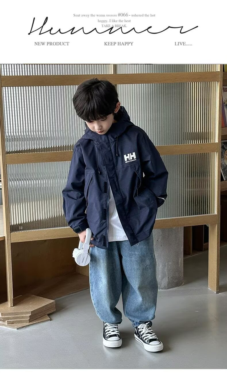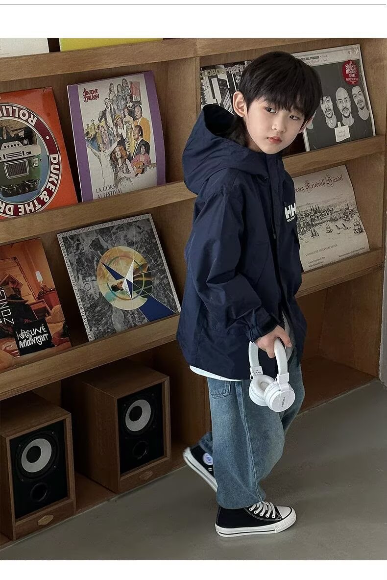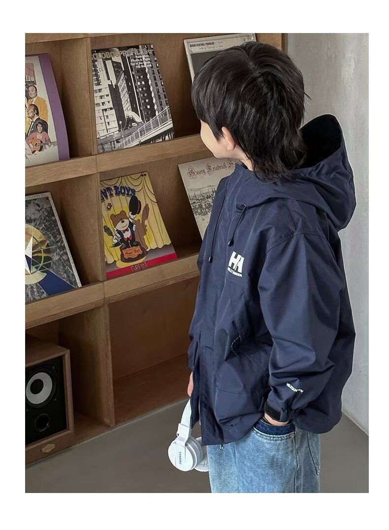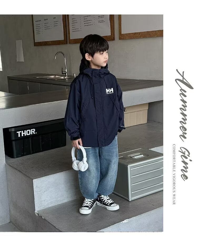 소년 코트 봄과 가을 2025 새로운 방수 잘 생긴 느슨한 중간 및 큰 아이 러스크 의류 작업복 후드 코트스토어 가기