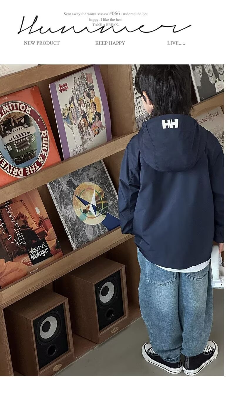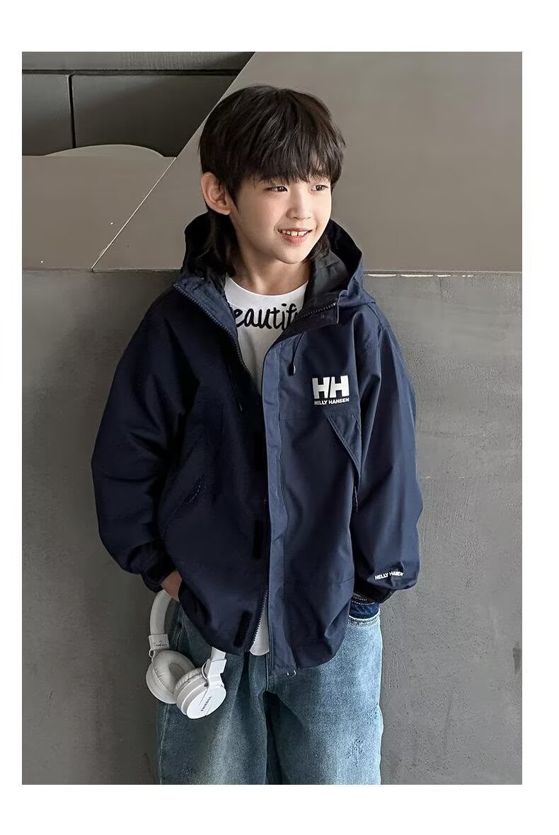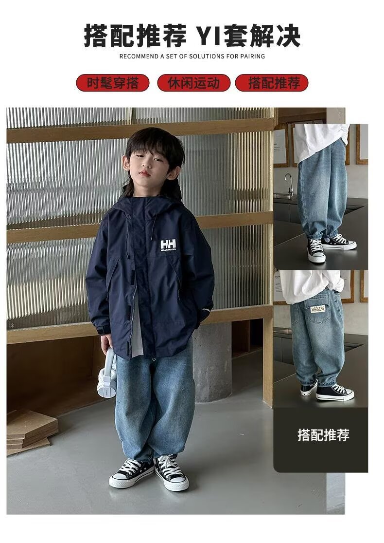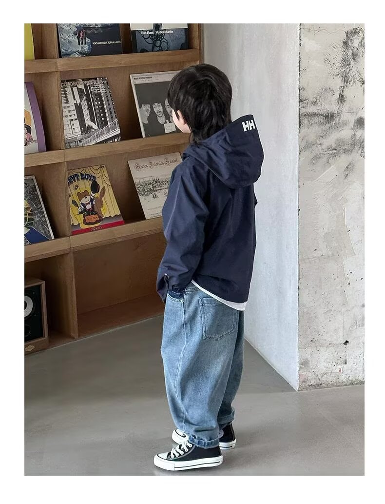 소년 코트 봄과 가을 2025 새로운 방수 잘 생긴 느슨한 중간 및 큰 아이 러스크 의류 작업복 후드 코트스토어 가기