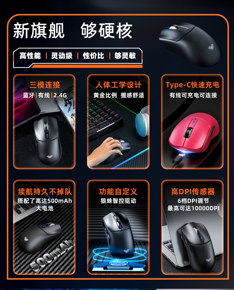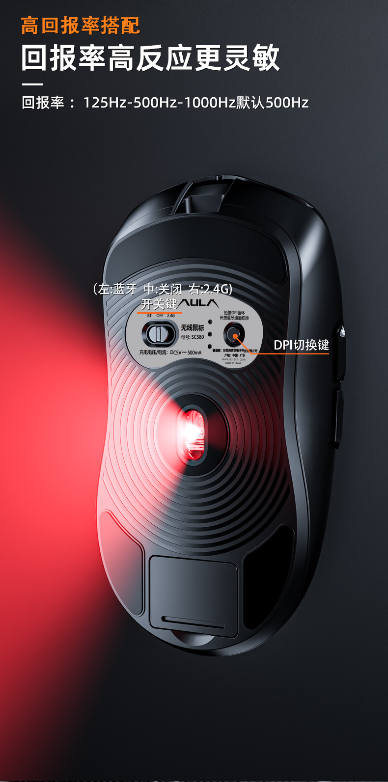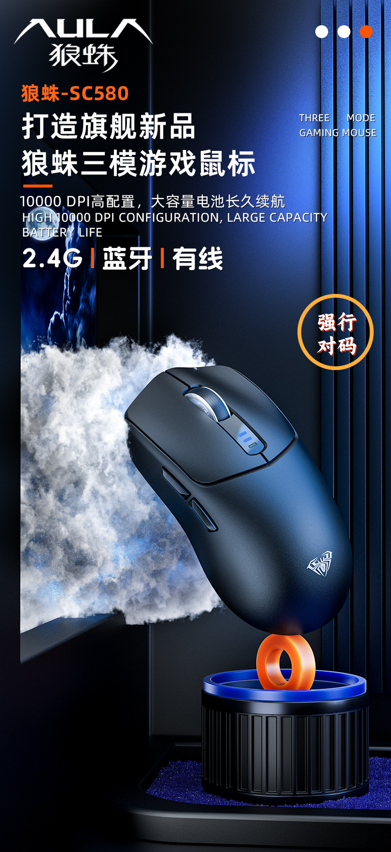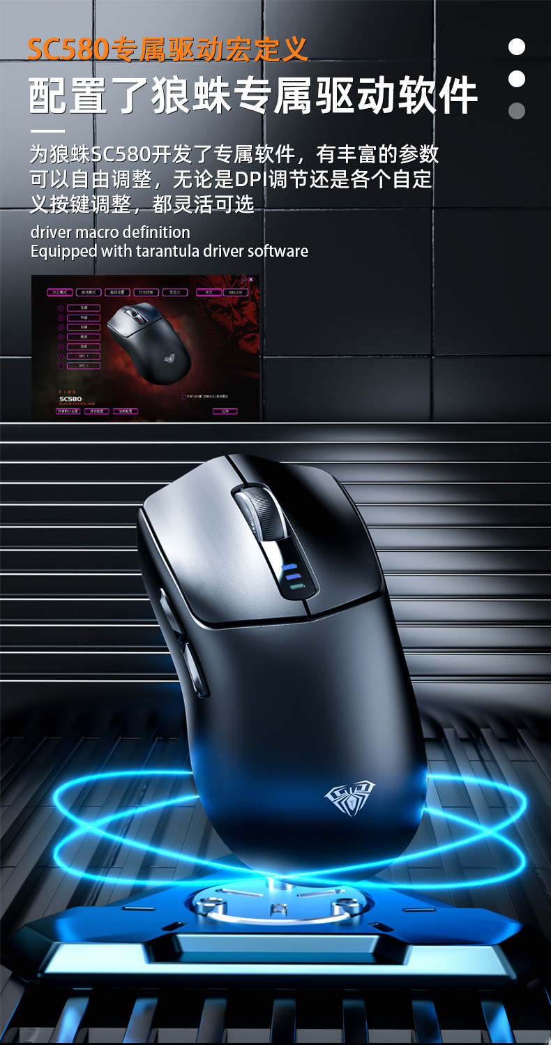 Wolf Spider SC580 무선 마우스 Bluetooth 2.4g 3 모드 유선 e-스포츠 게임용 노트북 데스크탑 컴퓨터 사무실스토어 가기