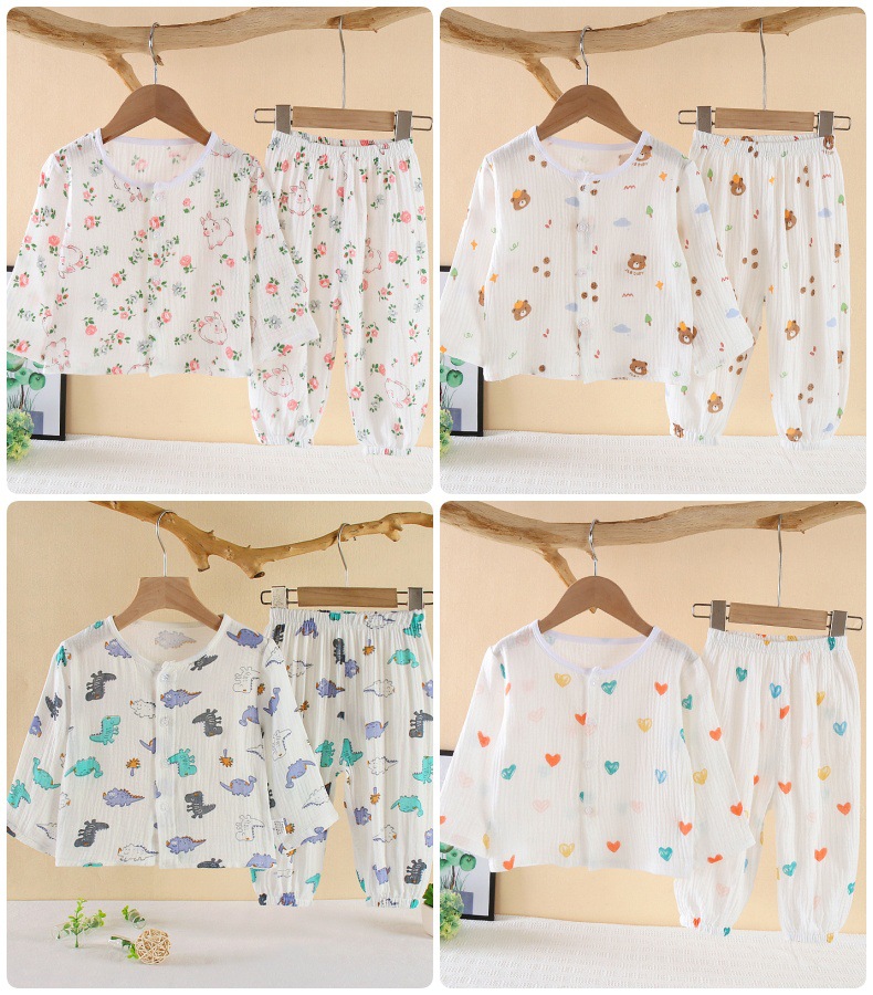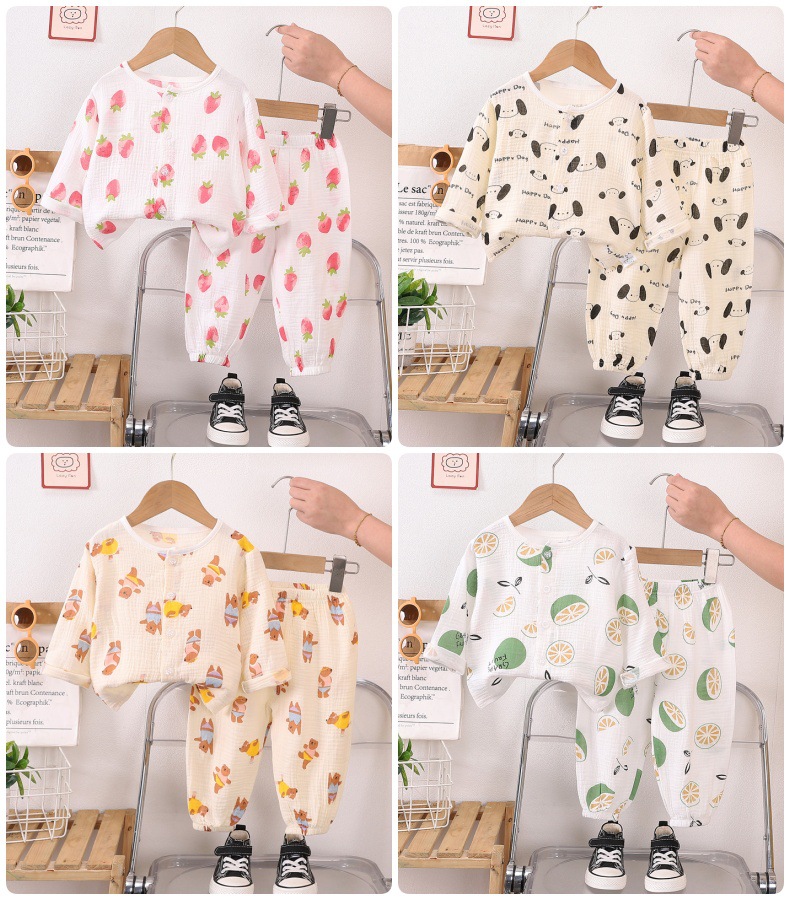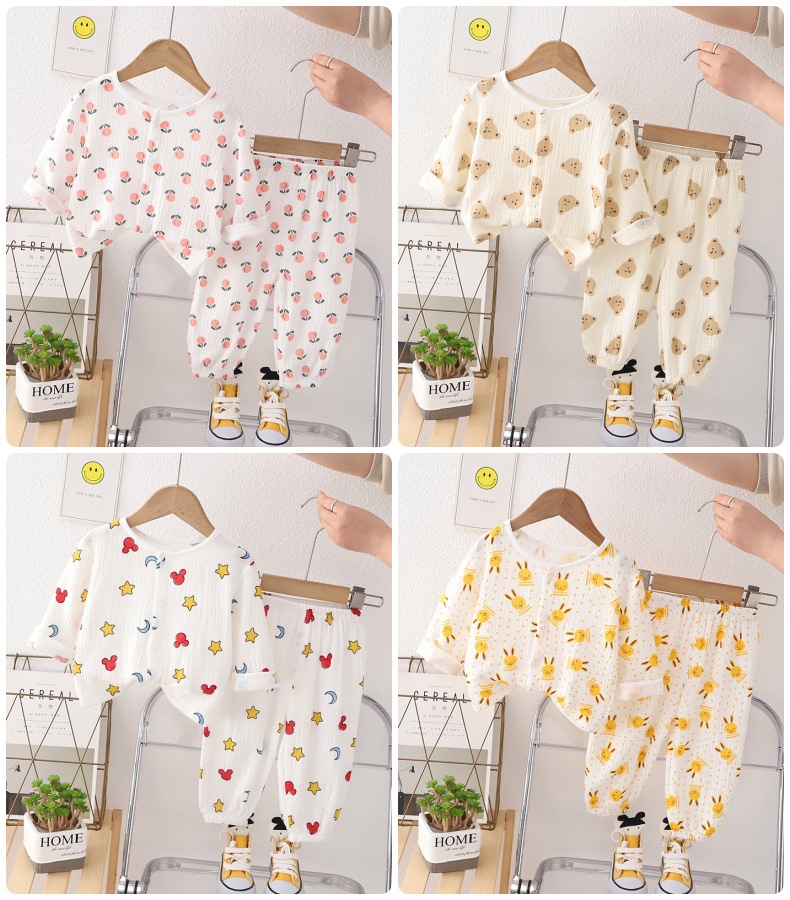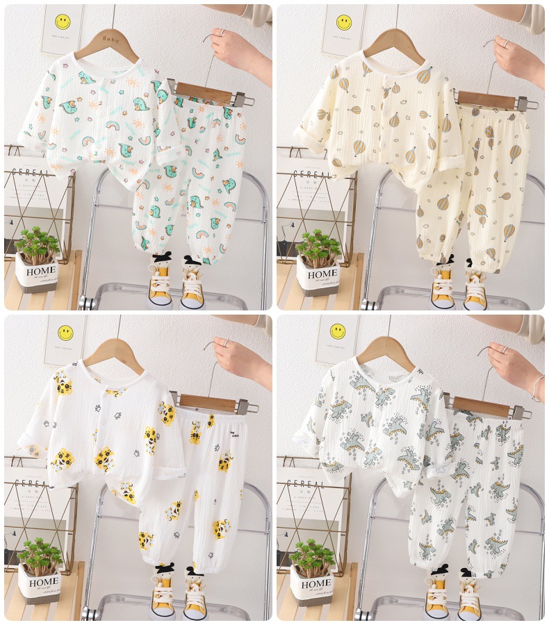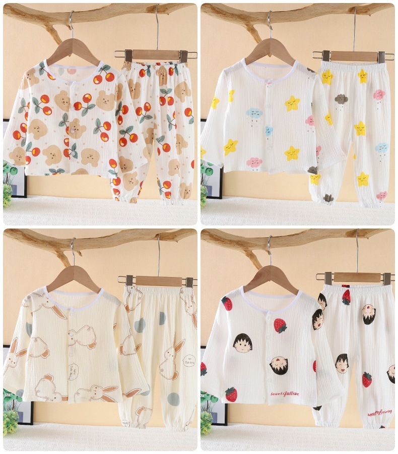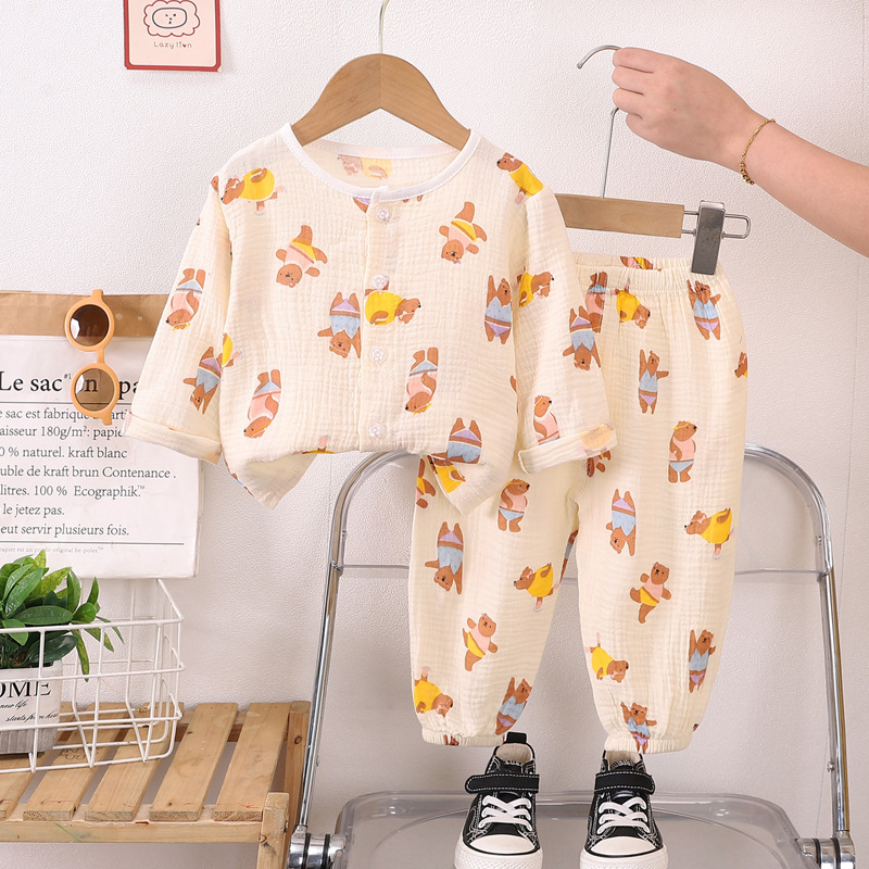 소년의 면사 파자마 세트 아기의 순면 홈 옷 얇은 어린이 홈 옷 만화 어린이 에어컨 옷스토어 가기