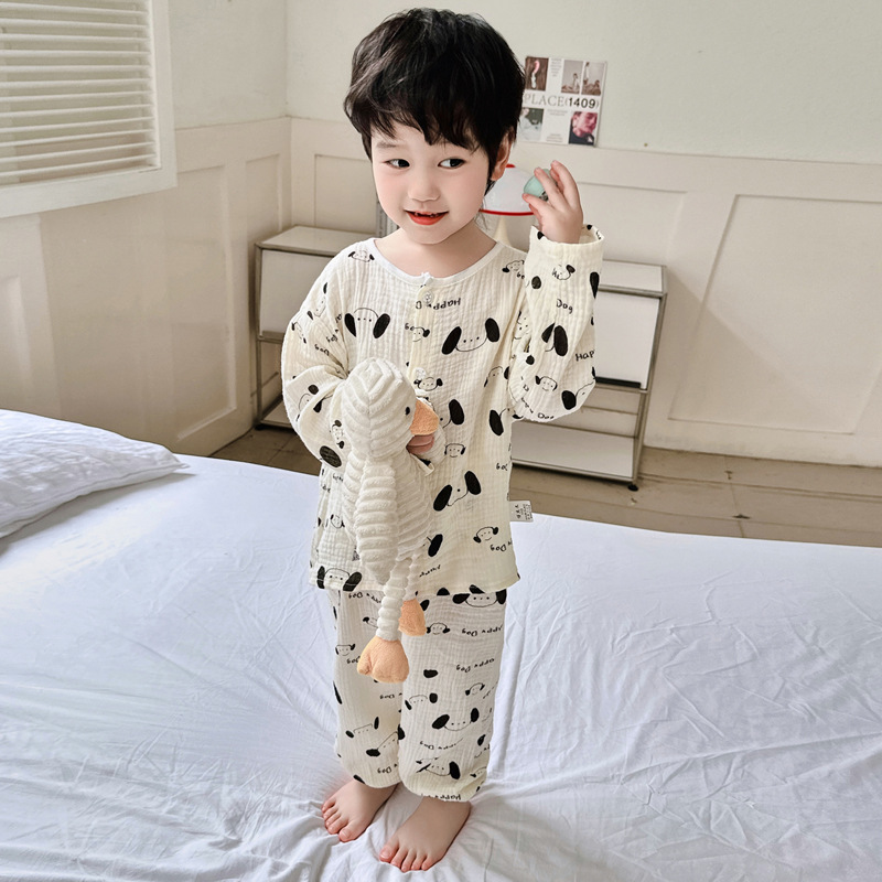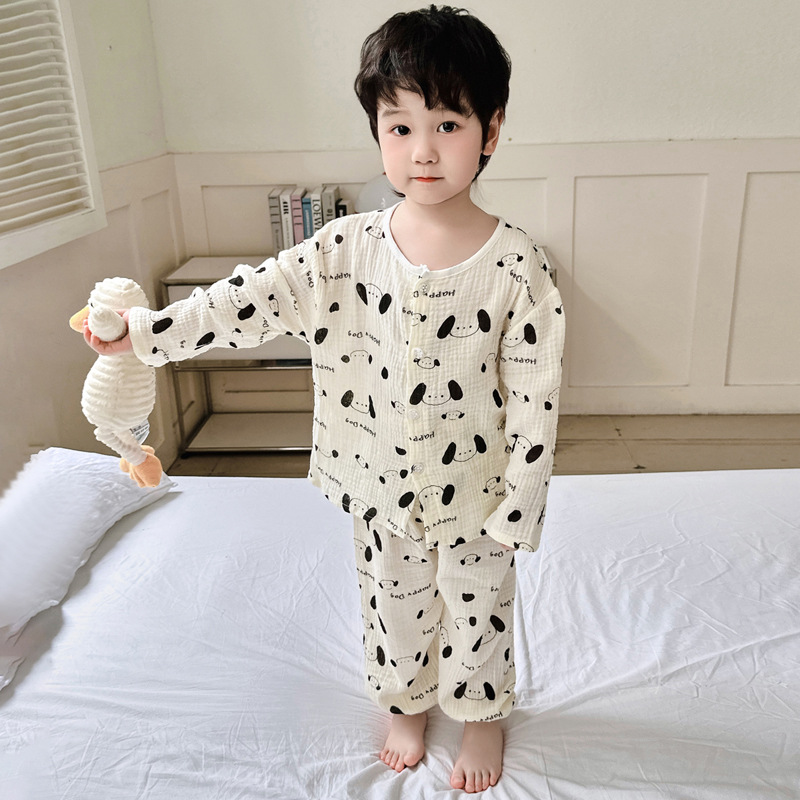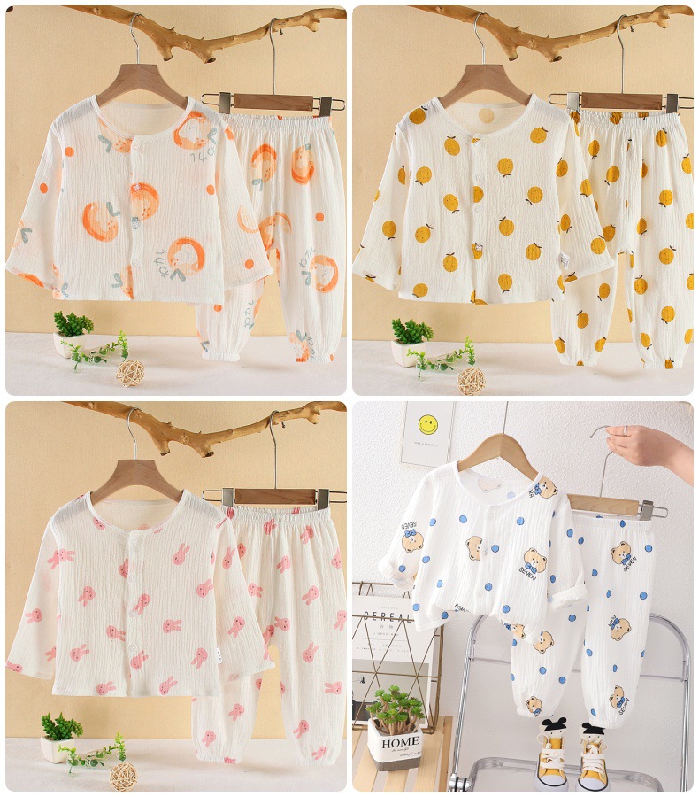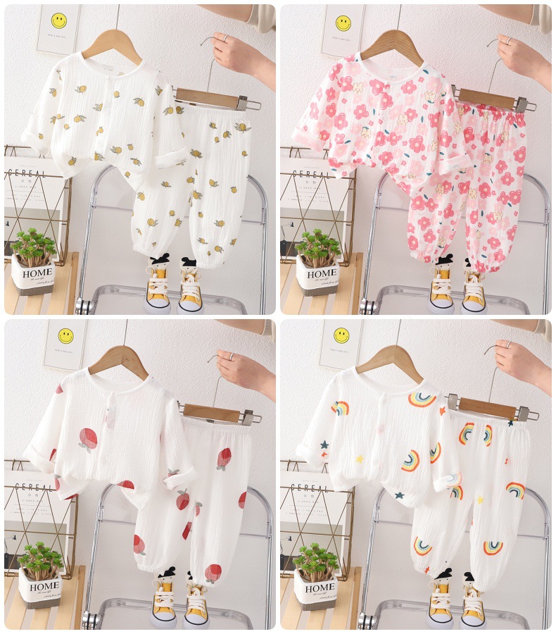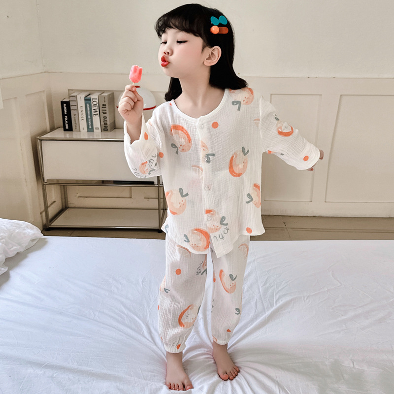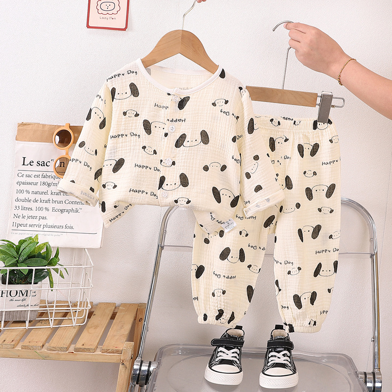 소년의 면사 파자마 세트 아기의 순면 홈 옷 얇은 어린이 홈 옷 만화 어린이 에어컨 옷스토어 가기