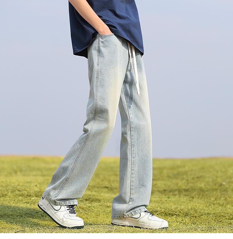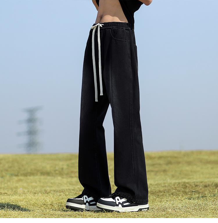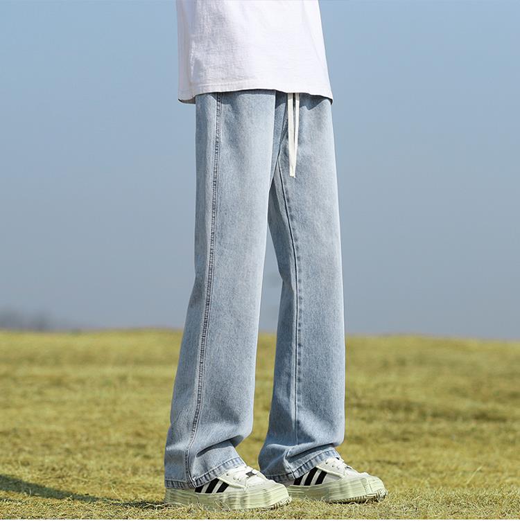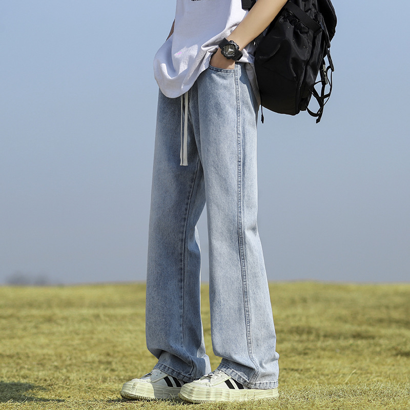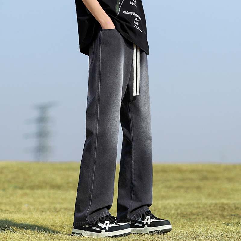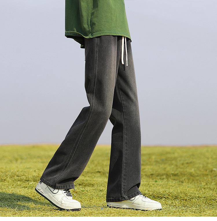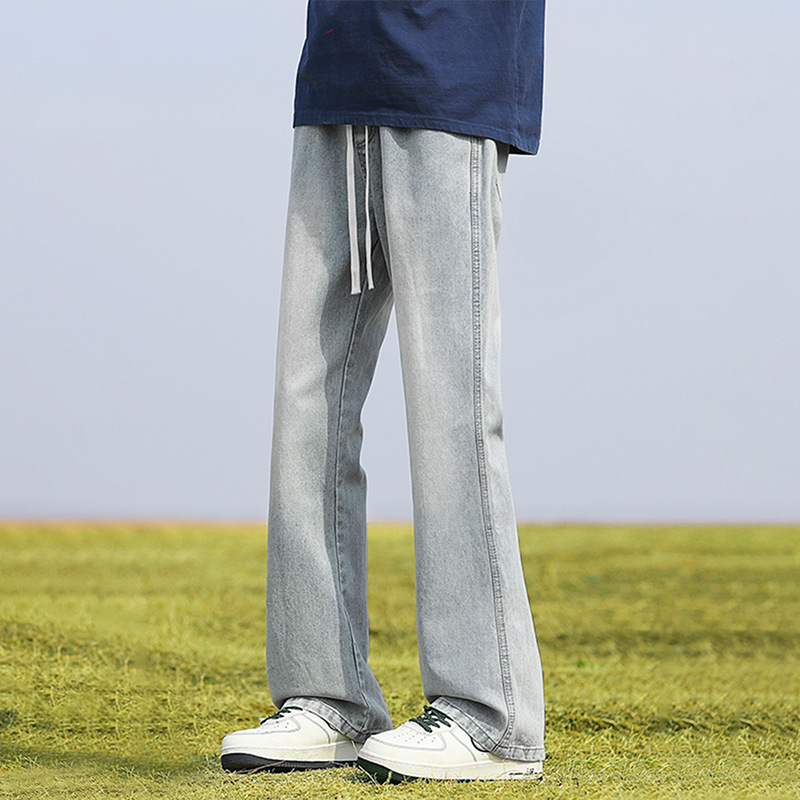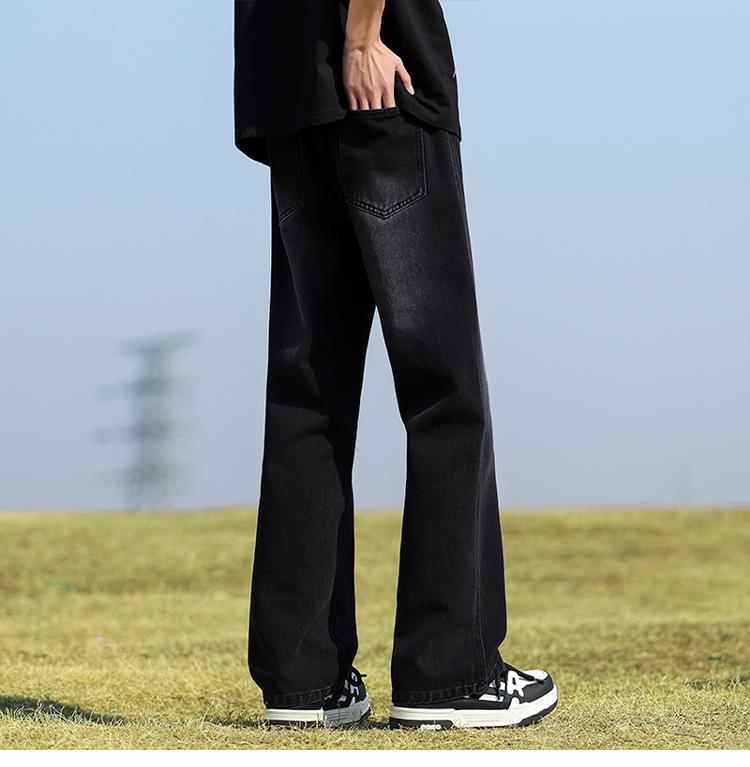 남성용 바지, 미국 스타일 봄 가을 남학생용 루즈핏 마이크로 플레어 팬츠, 웨이브 데님 팬츠, 남성용 블랙 슬림핏 캐주얼 팬츠, 롱 팬츠스토어 가기