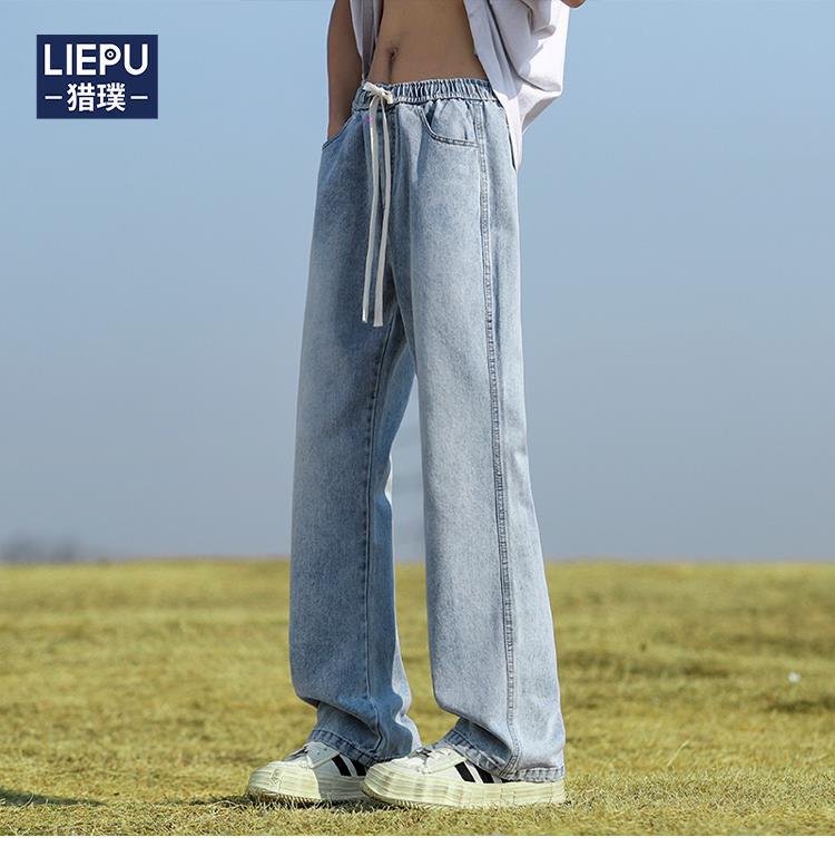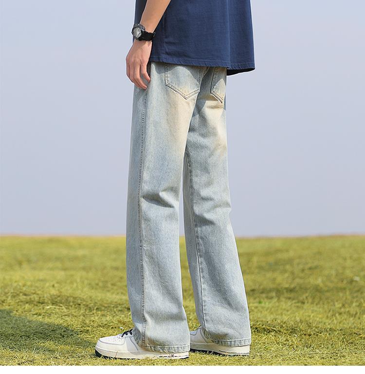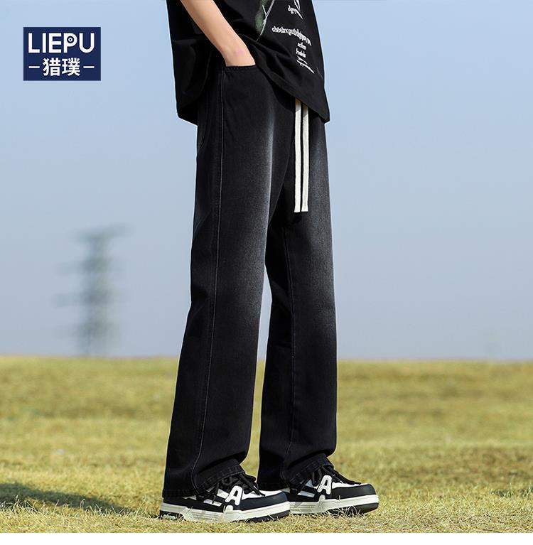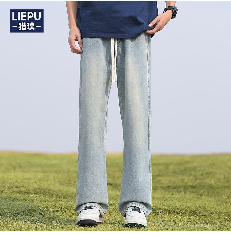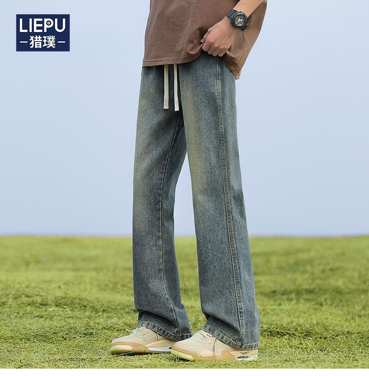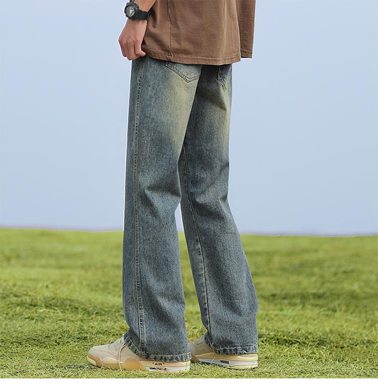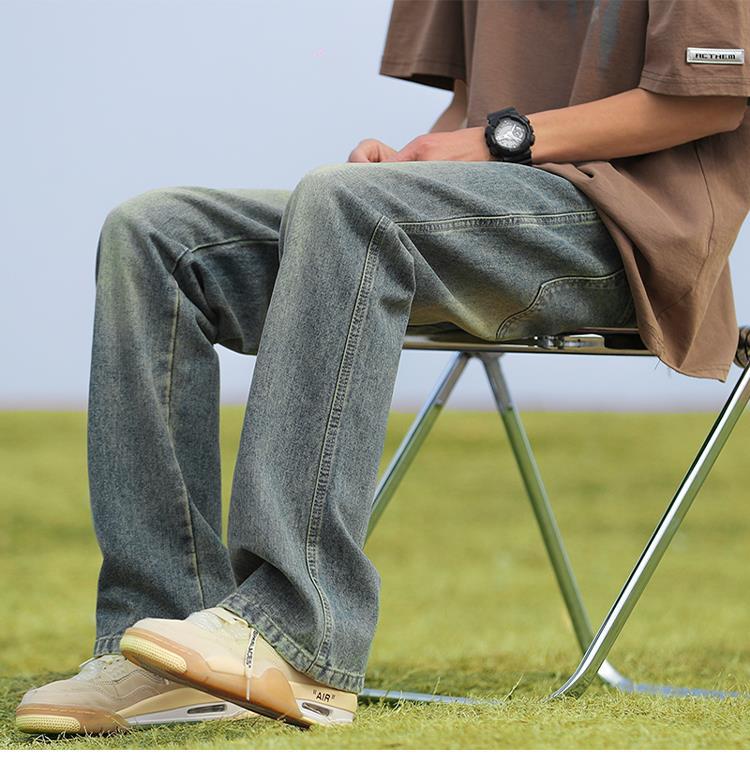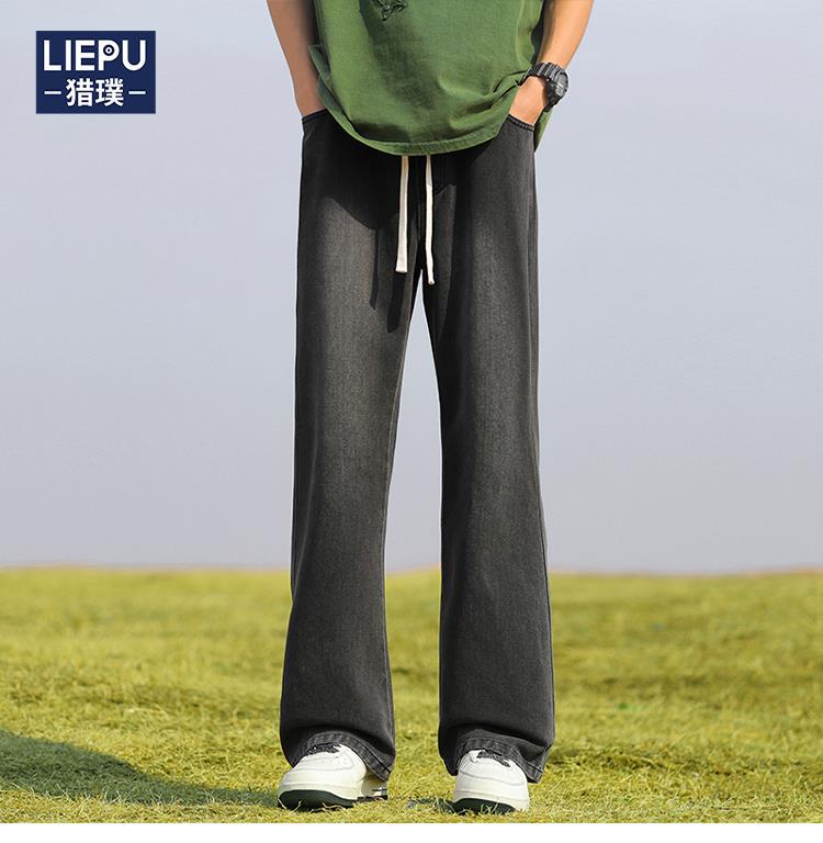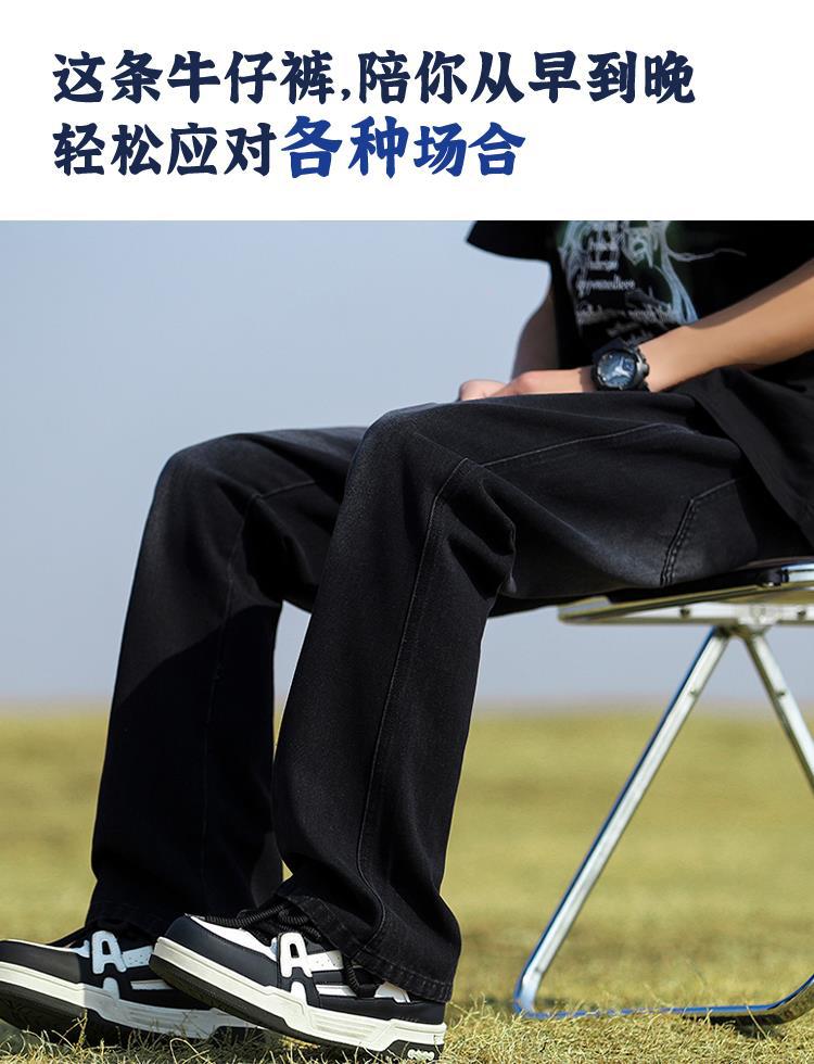 남성용 바지, 미국 스타일 봄 가을 남학생용 루즈핏 마이크로 플레어 팬츠, 웨이브 데님 팬츠, 남성용 블랙 슬림핏 캐주얼 팬츠, 롱 팬츠스토어 가기