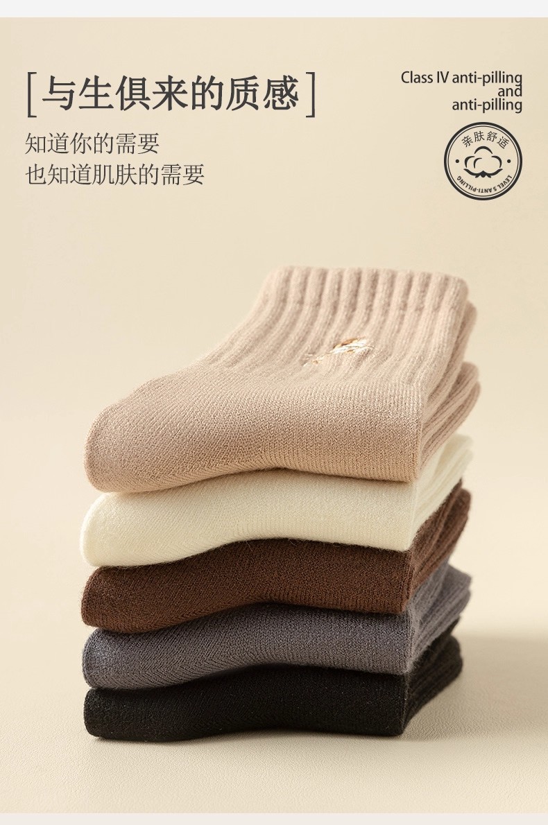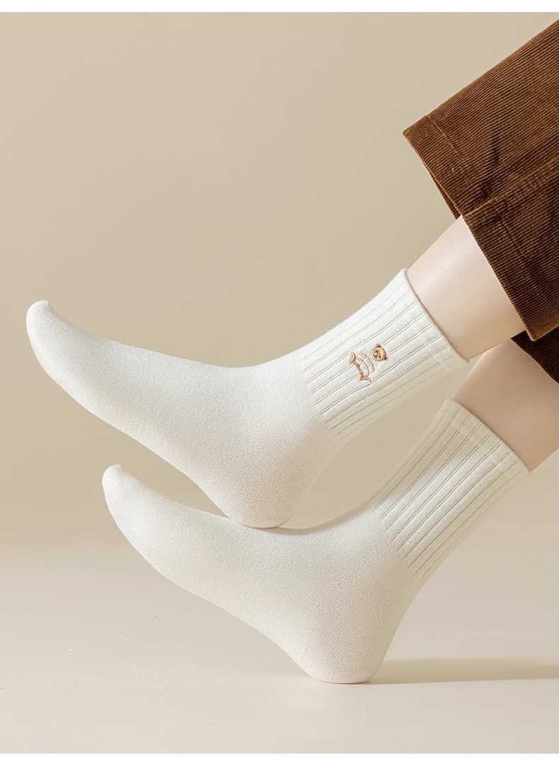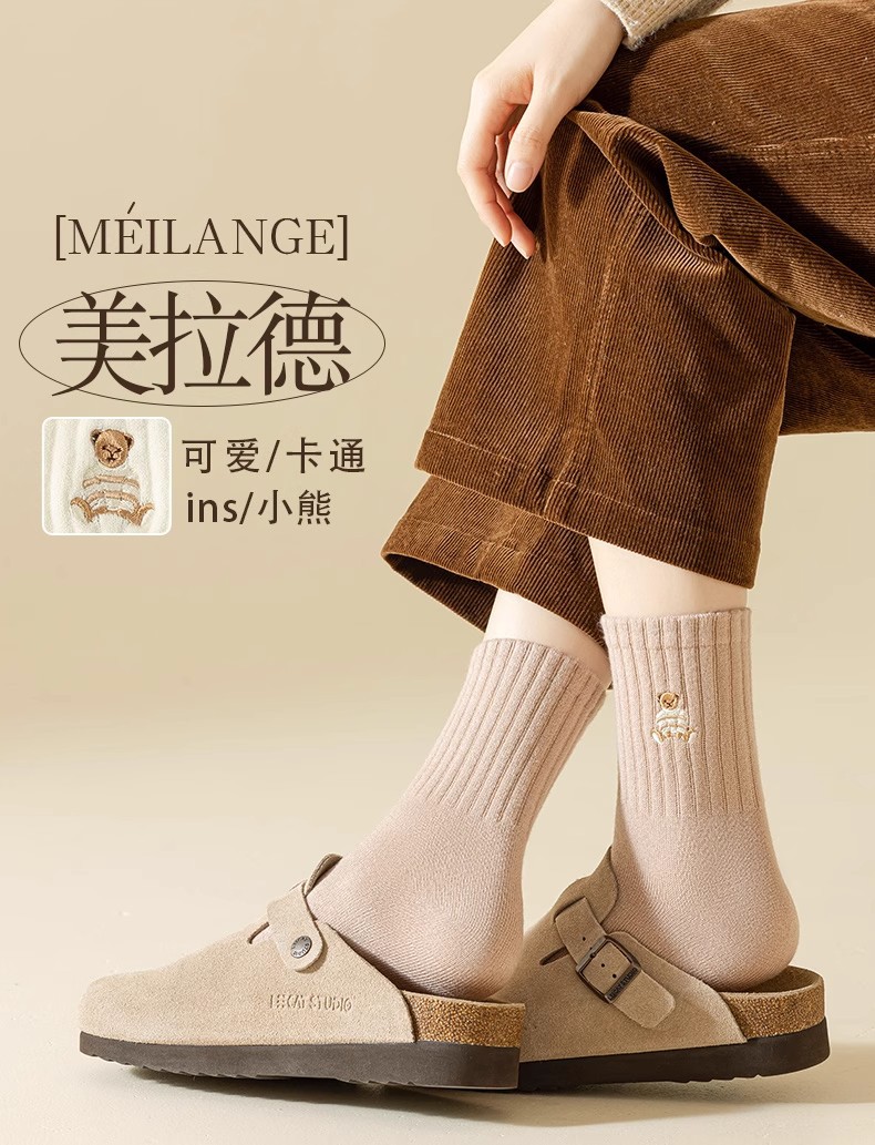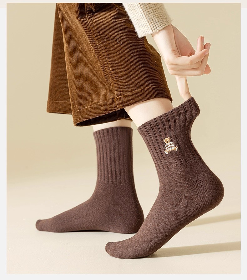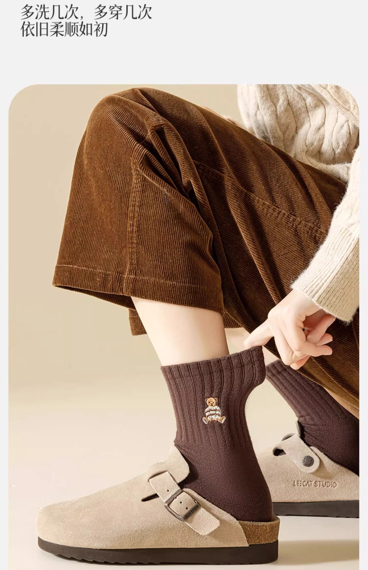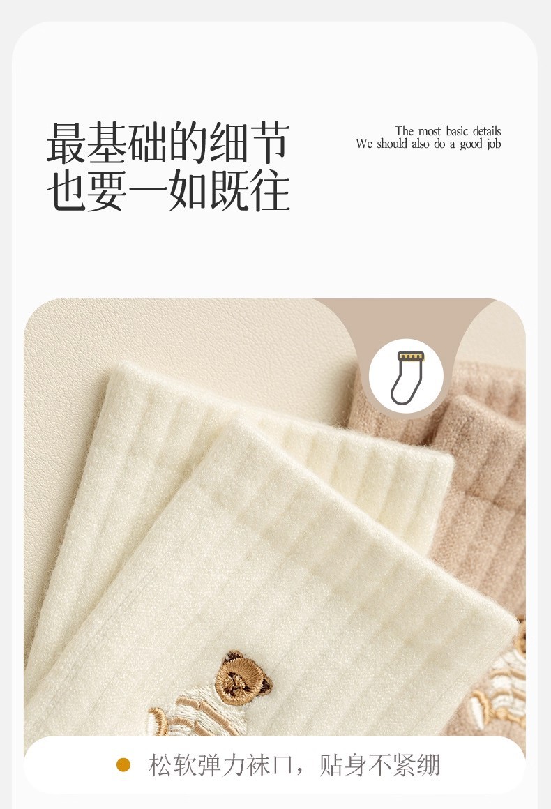 부드러운 곰돌이 자수 중목 양말 가을 겨울 만화 귀여운 여성용 양말 두꺼운 고탄력 중목 여성 양말스토어 가기