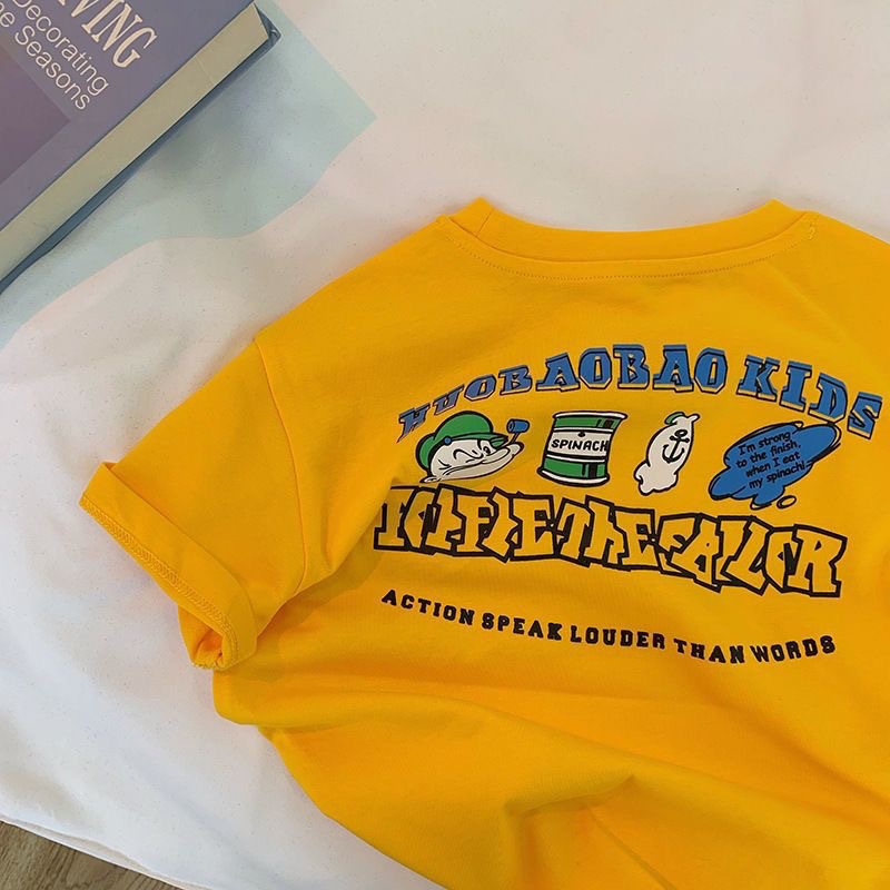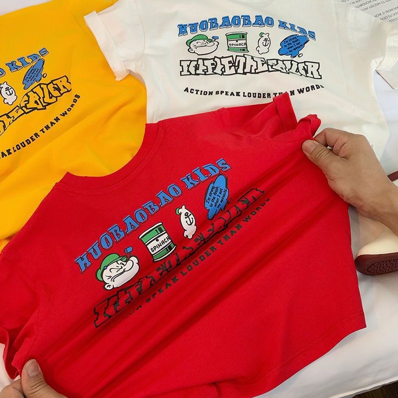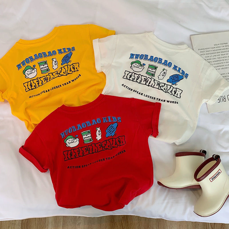 어린이 면화 반팔 여름 소년 · 소녀 한국식 올매치 라운드 넥 프린트 티셔츠 어린이 새베이스 셔츠스토어 가기