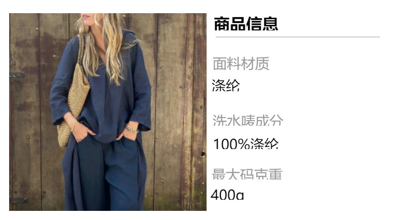 2025 아마존 독립 홈페이지 유럽 및 미국에서 인기 있는 여성복 여름 포켓 V넥 2피스 세트 단색 루즈핏 바지 세트스토어 가기