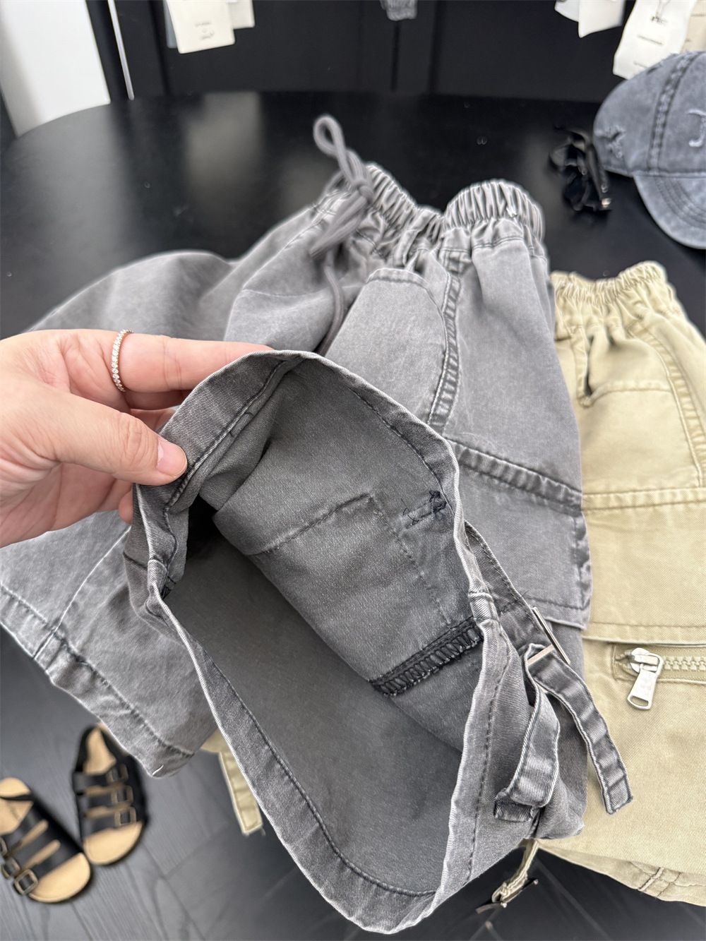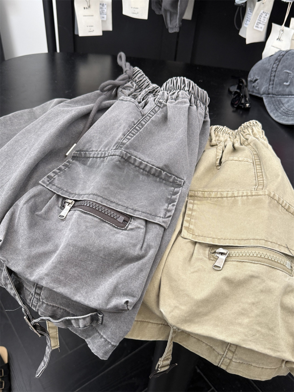 남자들의 여름 아메리칸 스타일 올드 샌드 워시블 툴링 바지 어린이 복고풍 멀티 포켓 야외 스케이트 보드 바지