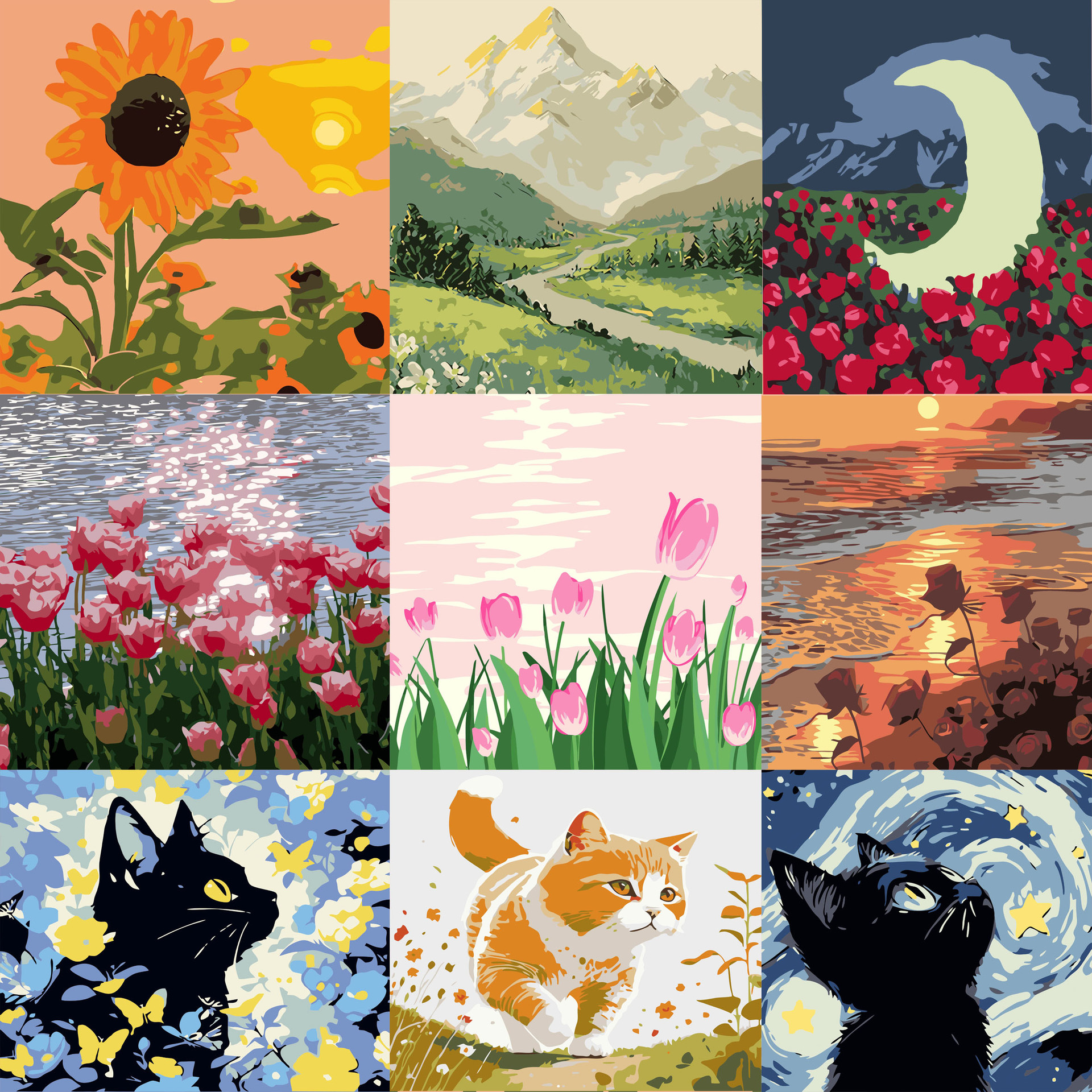 20*20 풍경 꽃 그림 색칠하기 디지털 유화 수제 DIY 채색 핸드페인팅 유화 색칠 그림 거실 장식 그림스토어 가기