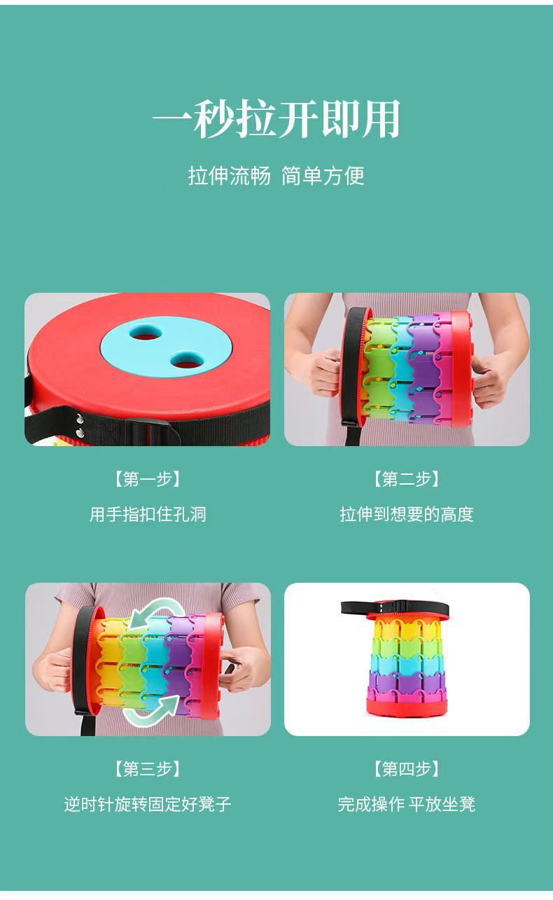 도매 캠핑 스툴, 접이식 스툴, 낚시 스툴, 접이식 의자, 휴대용 접이식 스툴, 조절 가능한 텔레스코픽 레인보우 스툴스토어 가기