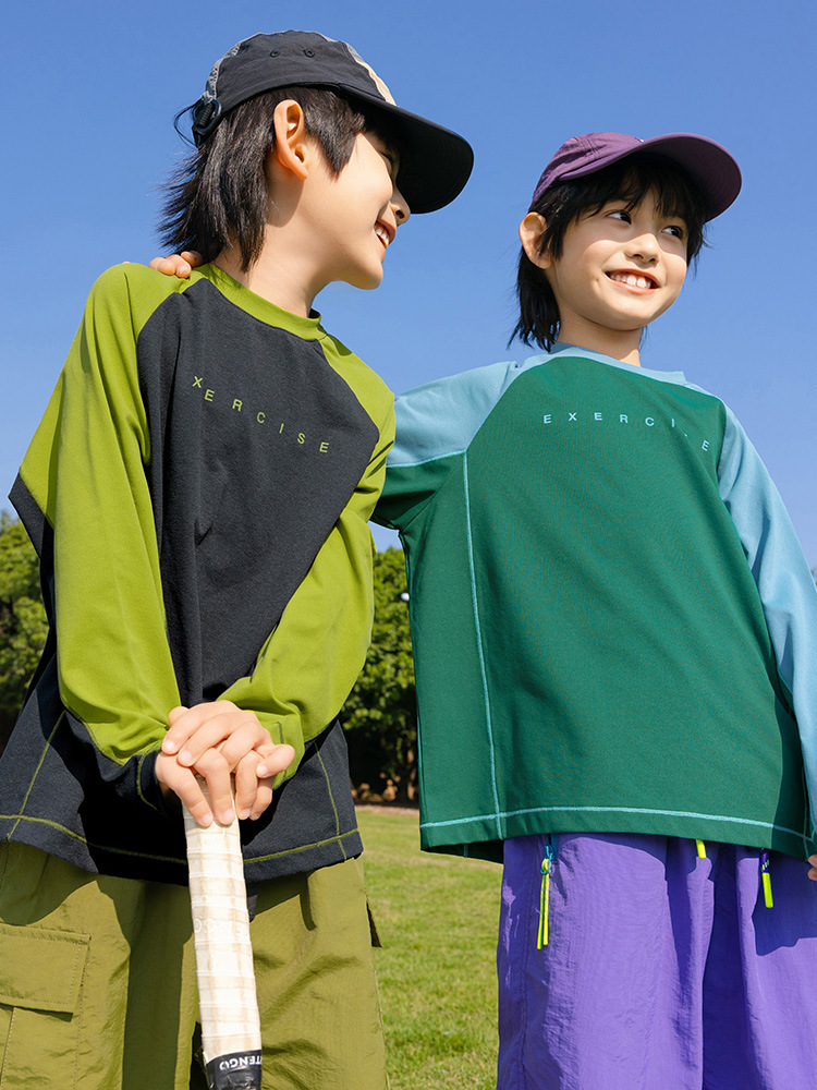 EK 아동복 마운틴 스타일 야외 소년 빠른 건조 티셔츠 오리지널 원사 선 스크린 단순 명암 컬러 리글 긴팔 티셔츠 항균 탑스토어 가기