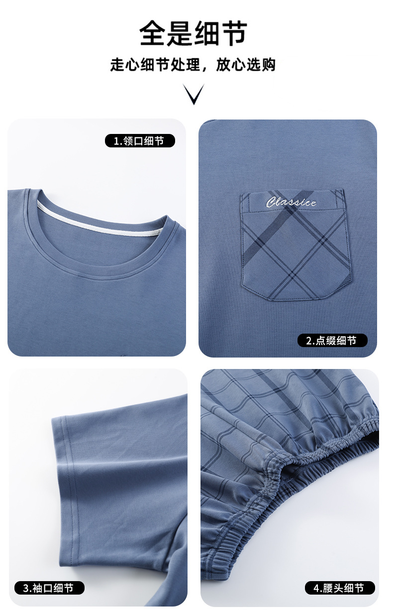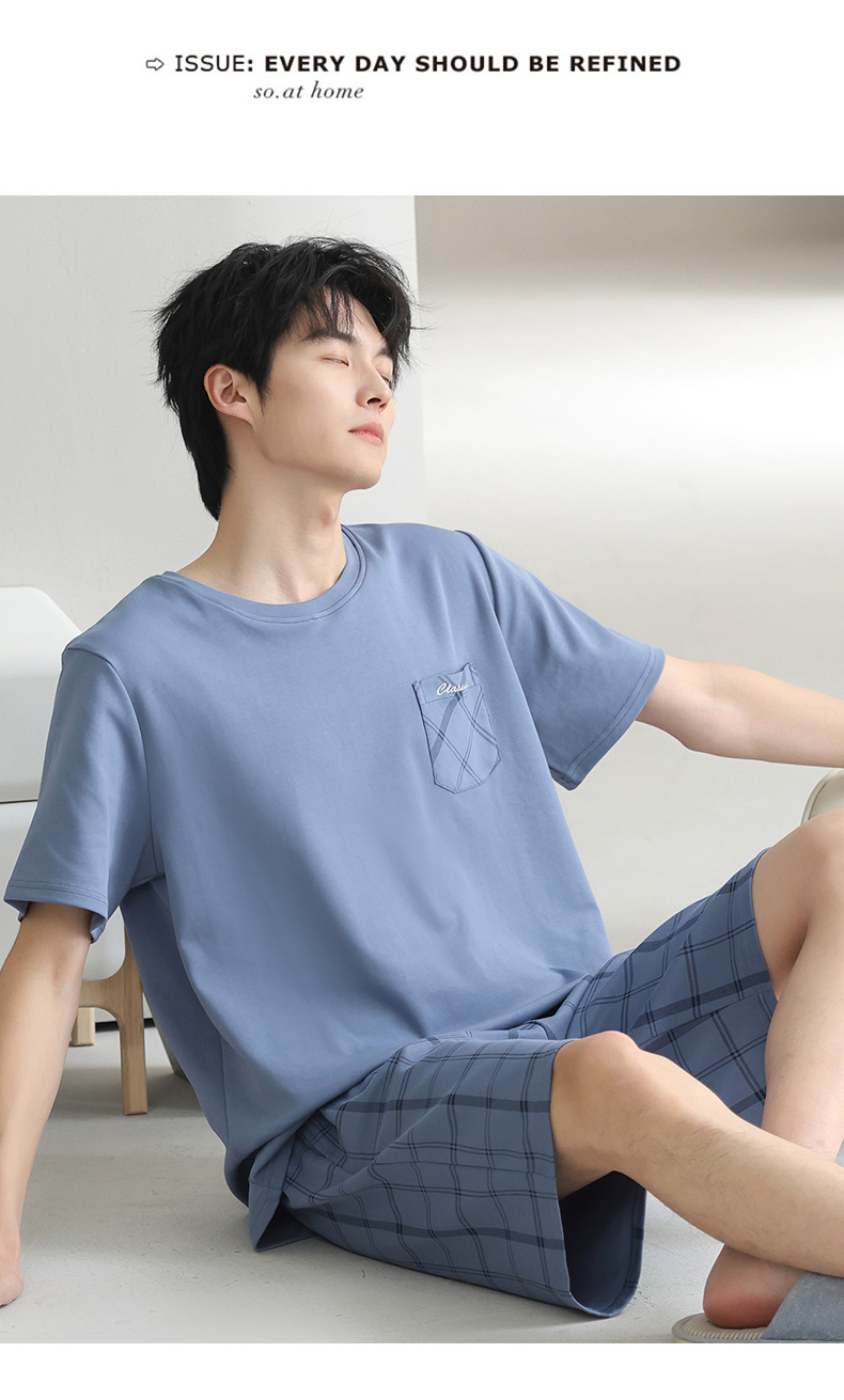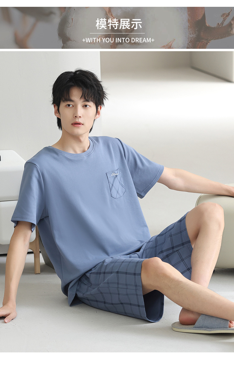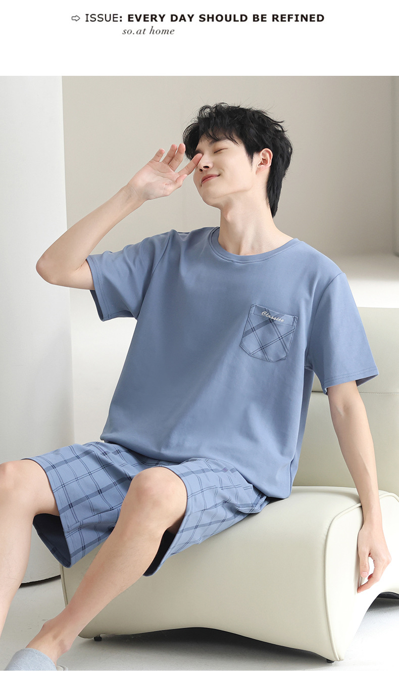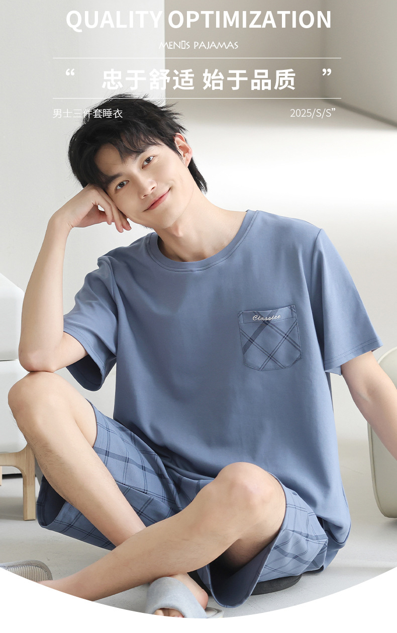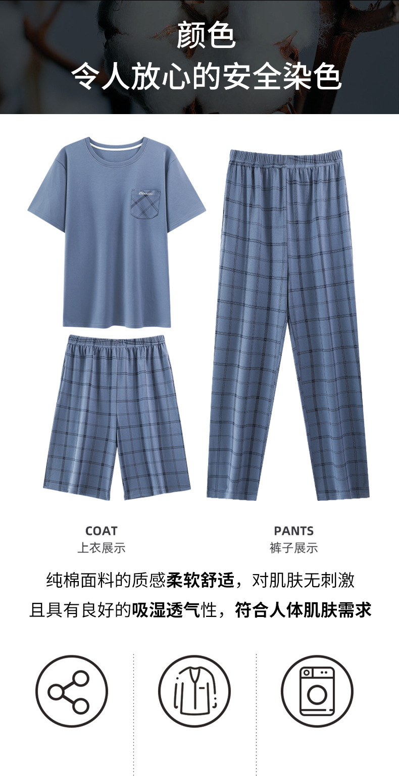 3 피스 세트 100 면 잠옷 남성용 봄과 여름 반팔 바지 2025 새로운 얇은 면 홈 의류 플러스 사이즈스토어 가기