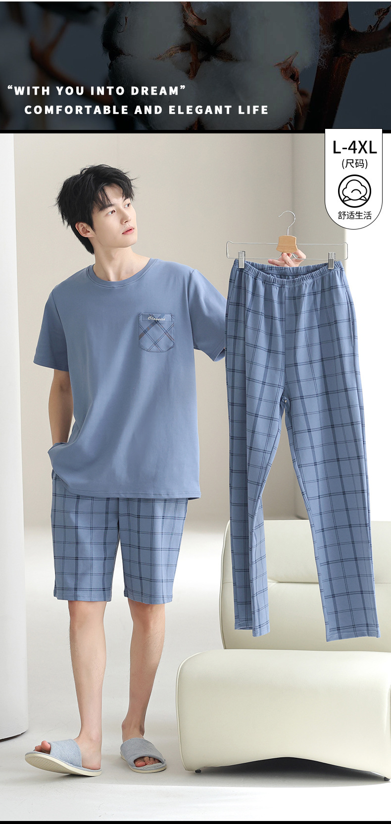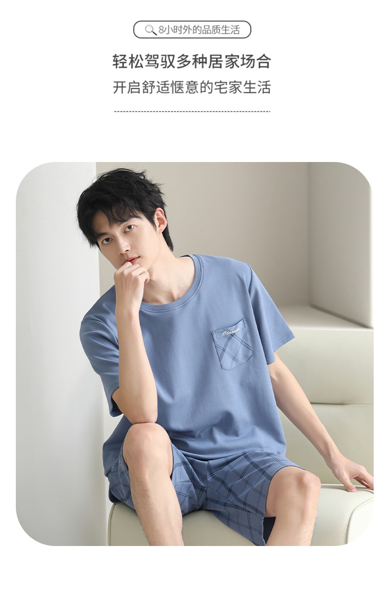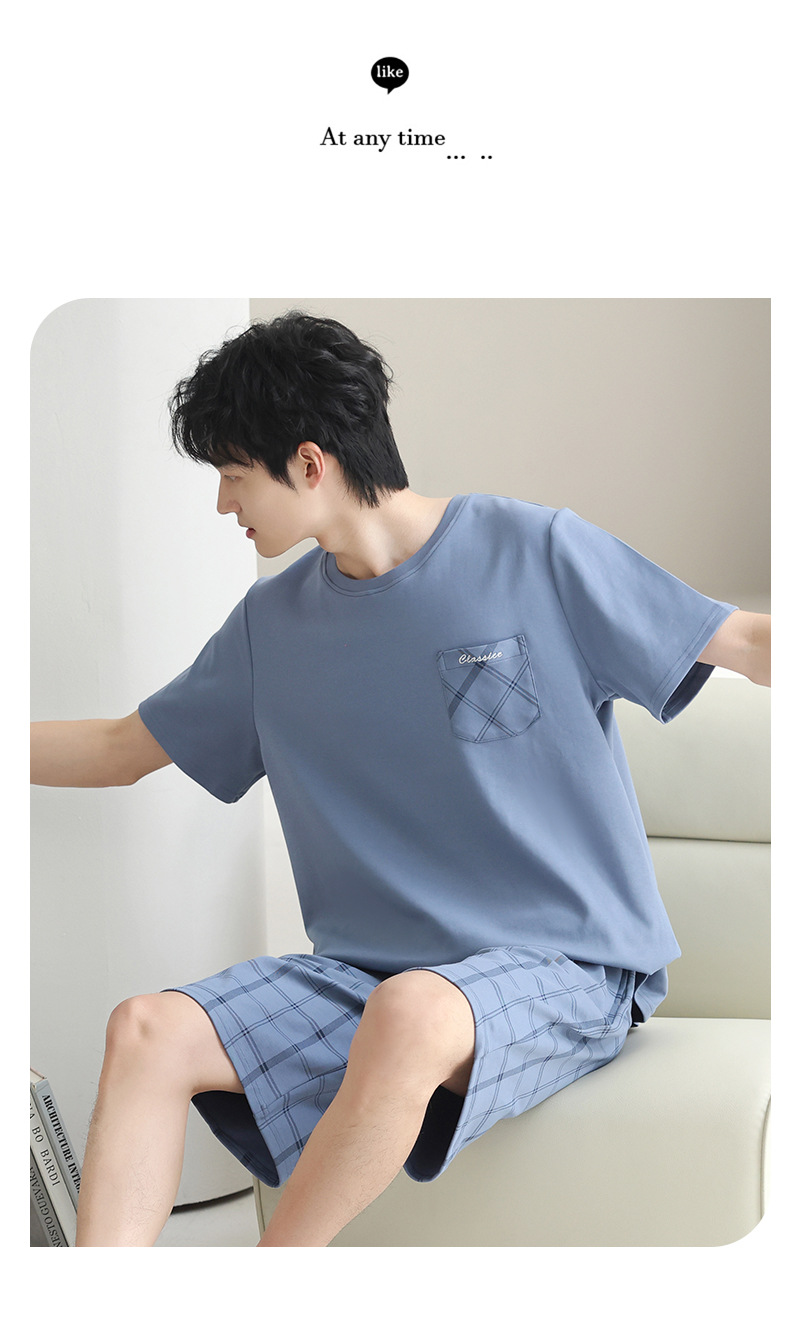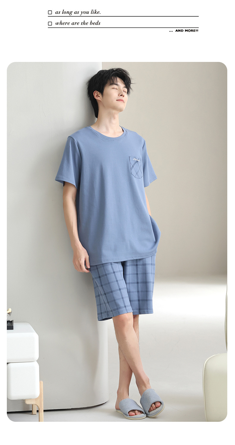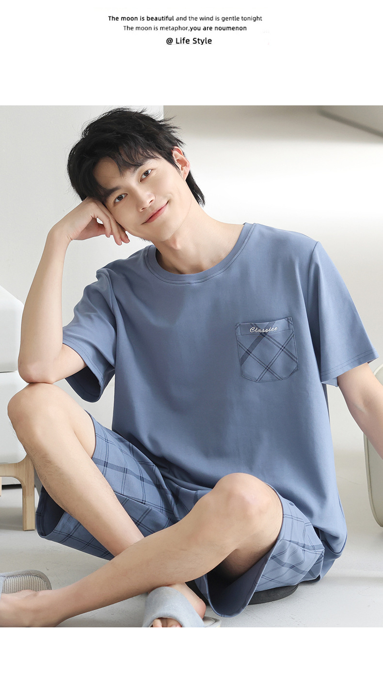3 피스 세트 100 면 잠옷 남성용 봄과 여름 반팔 바지 2025 새로운 얇은 면 홈 의류 플러스 사이즈스토어 가기