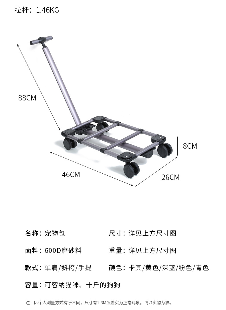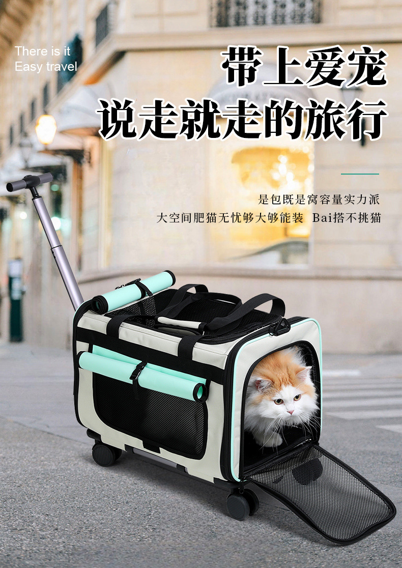 새로운 고양이 가방 휴대용 애완 동물 트롤리 케이스 대용량 범용 휠 작은 개 애완 동물 용품 고양이 야외 가방