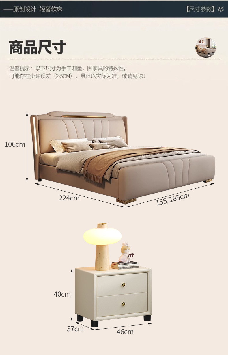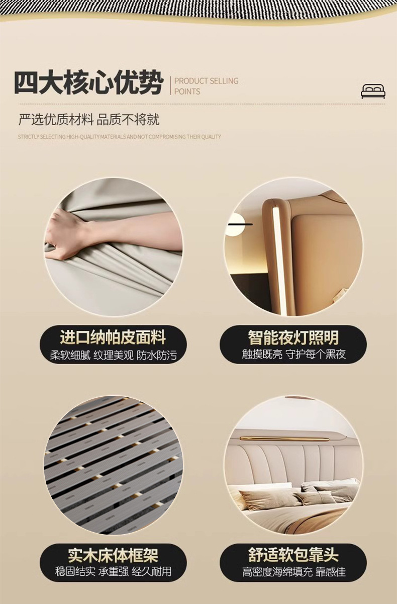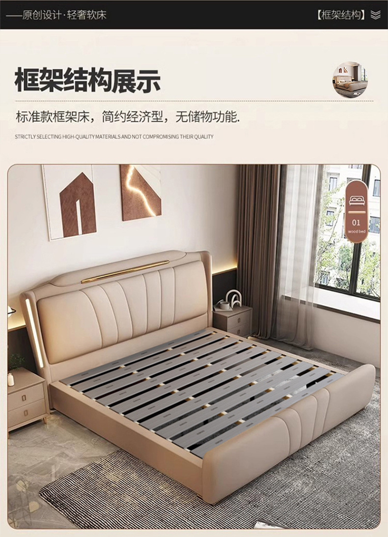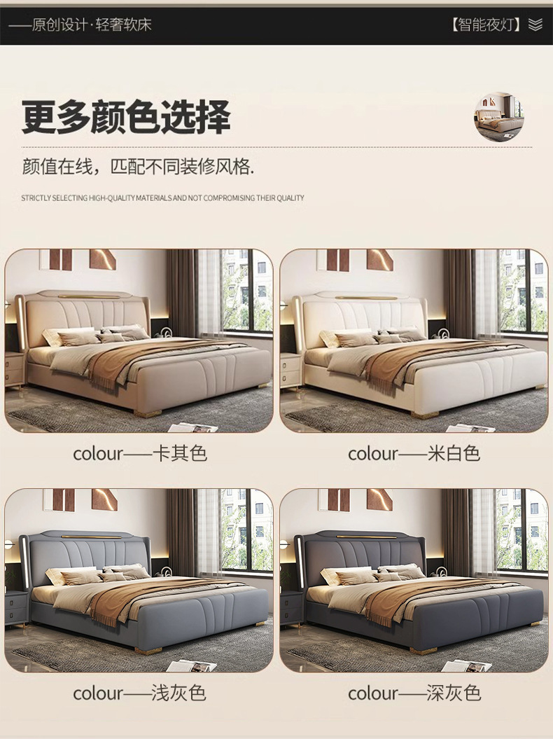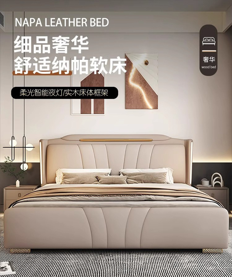 이탈리아 빛 럭셔리 나파 가죽 침대 현대 간단한 1.8X2 m 마스터 침실 더블 침대 보관 하이 엔드 소프트 백 웨딩 침대스토어 가기