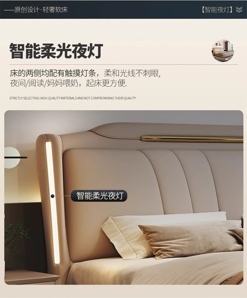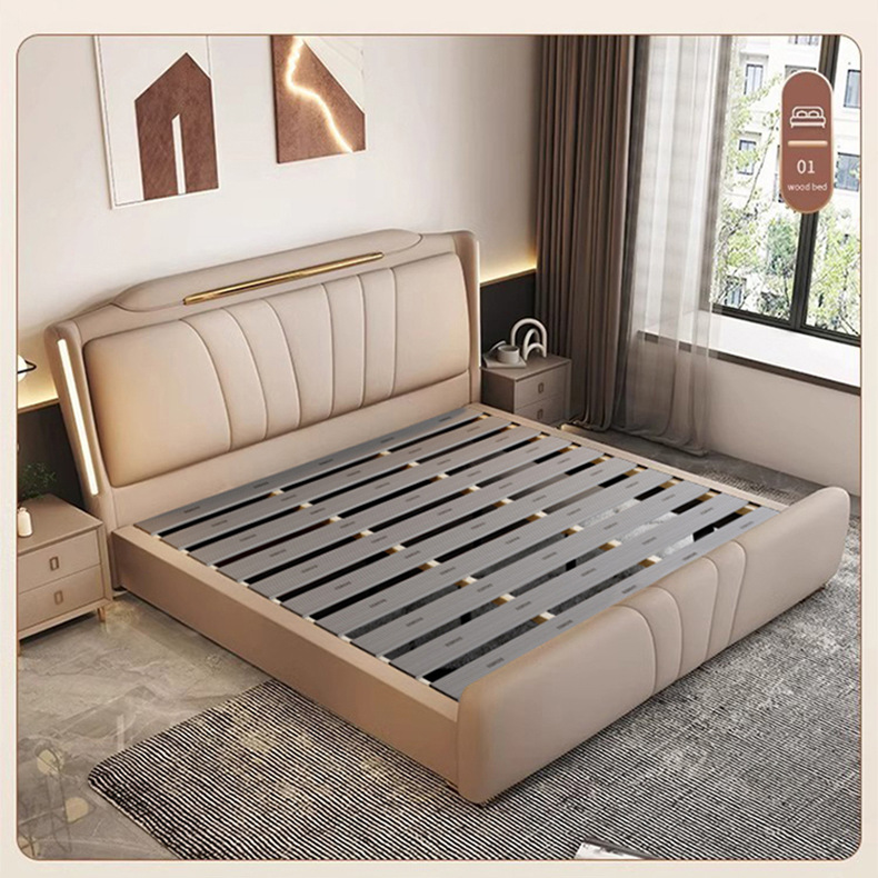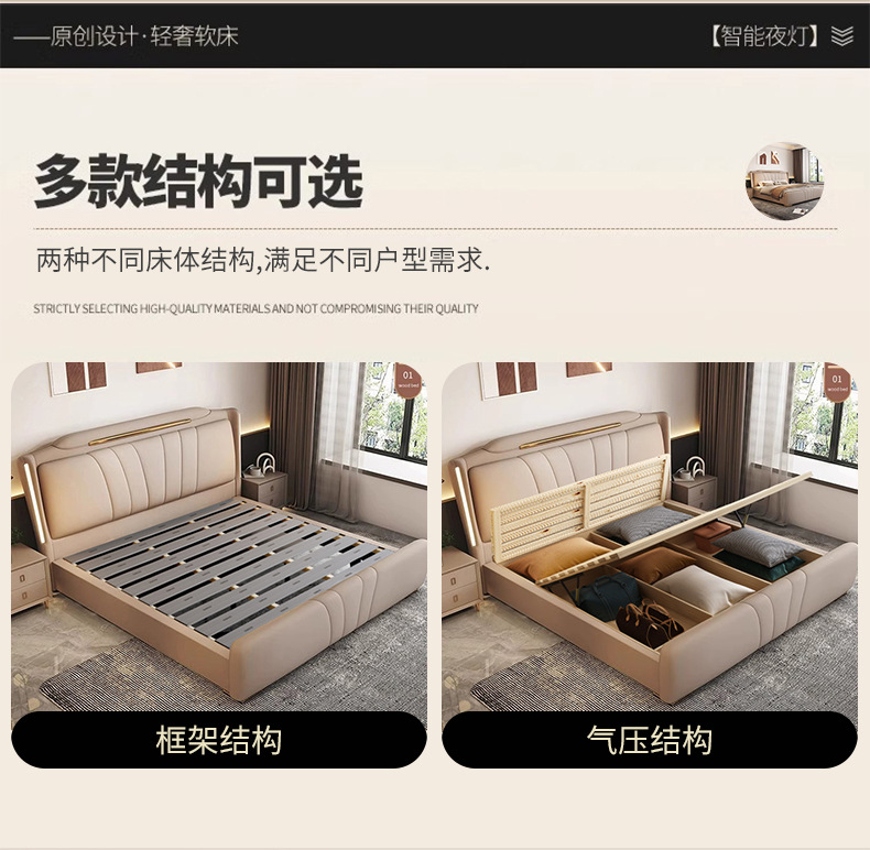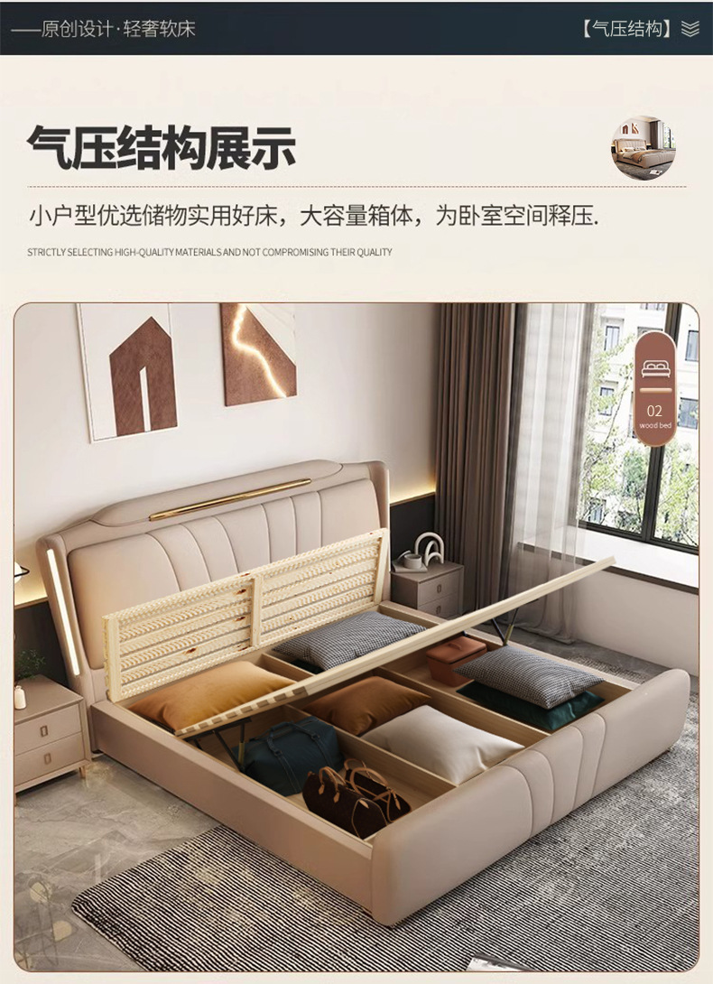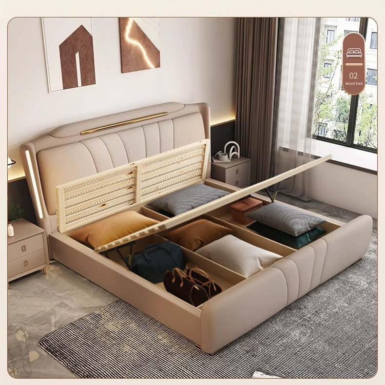 이탈리아 빛 럭셔리 나파 가죽 침대 현대 간단한 1.8X2 m 마스터 침실 더블 침대 보관 하이 엔드 소프트 백 웨딩 침대