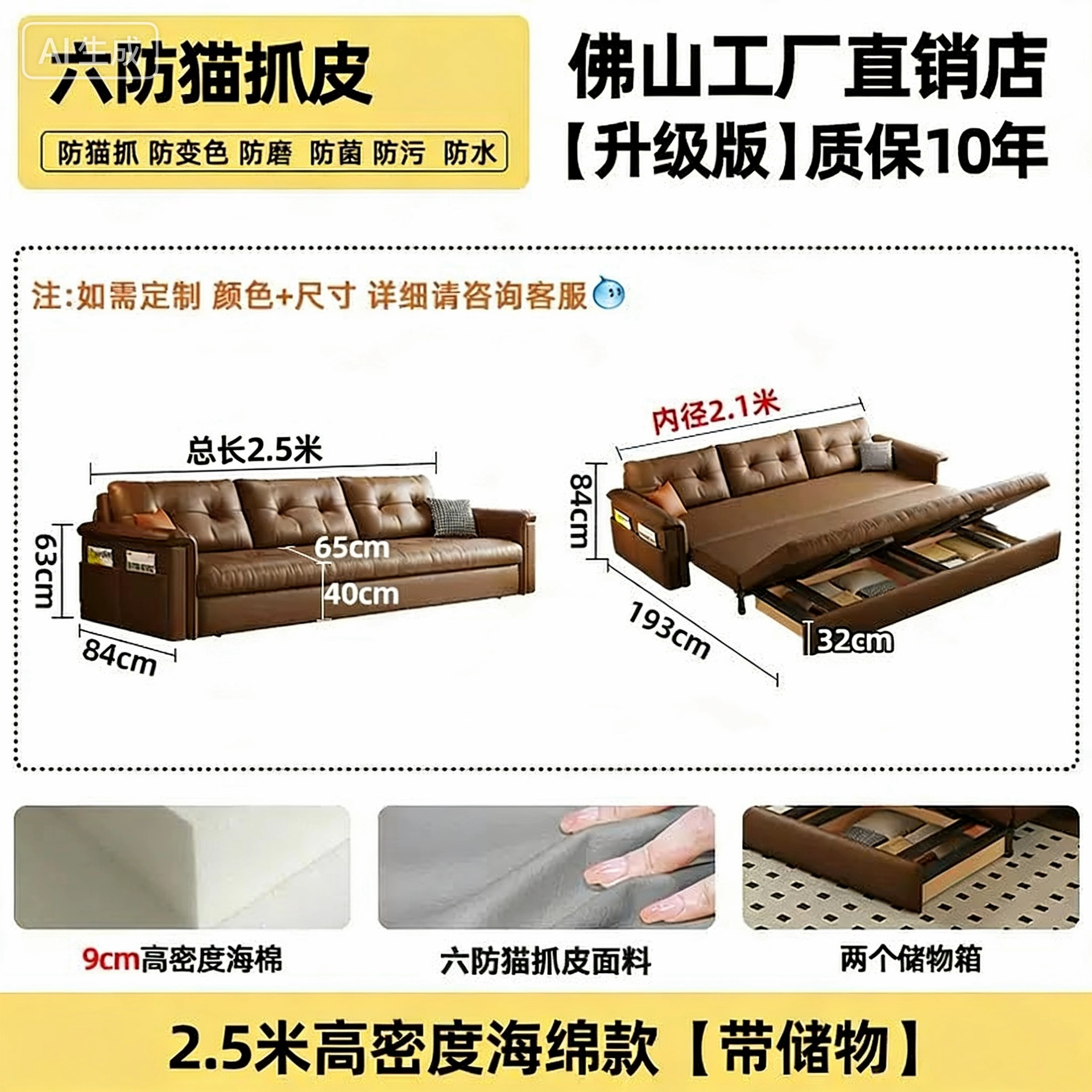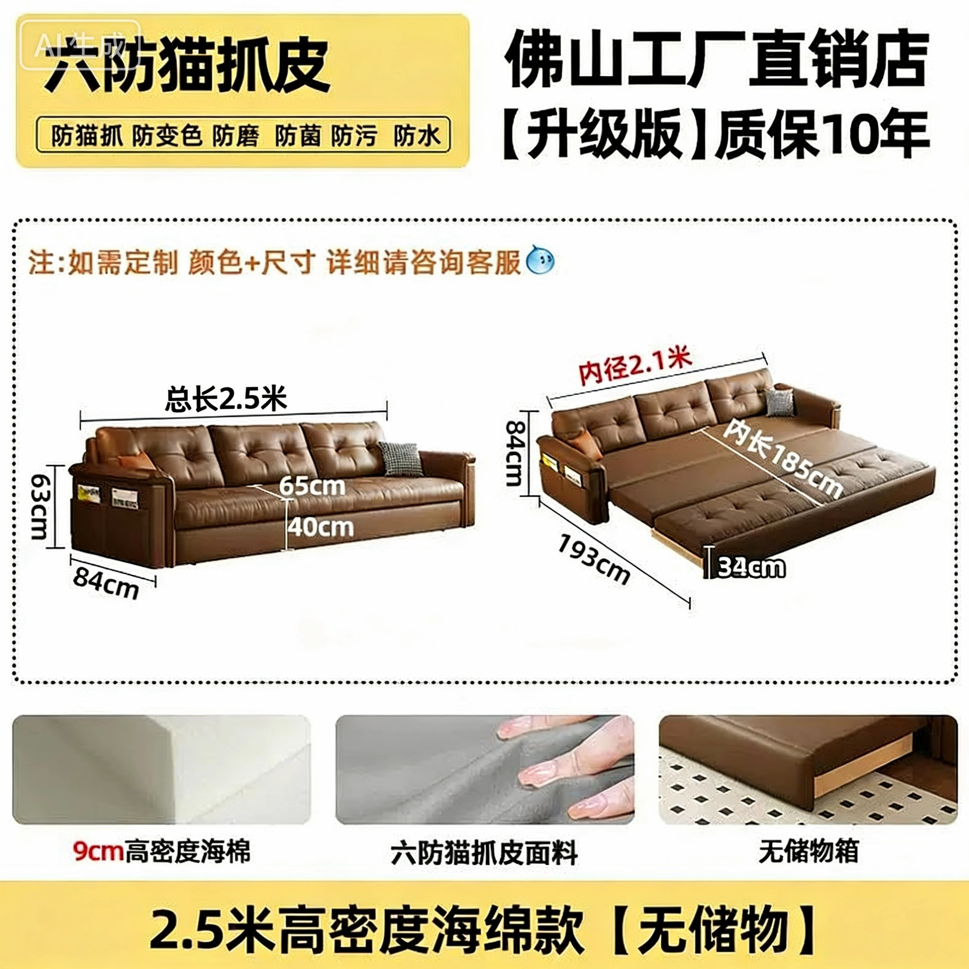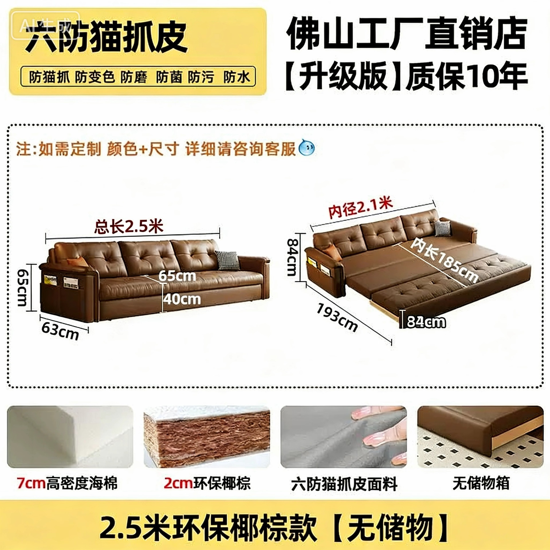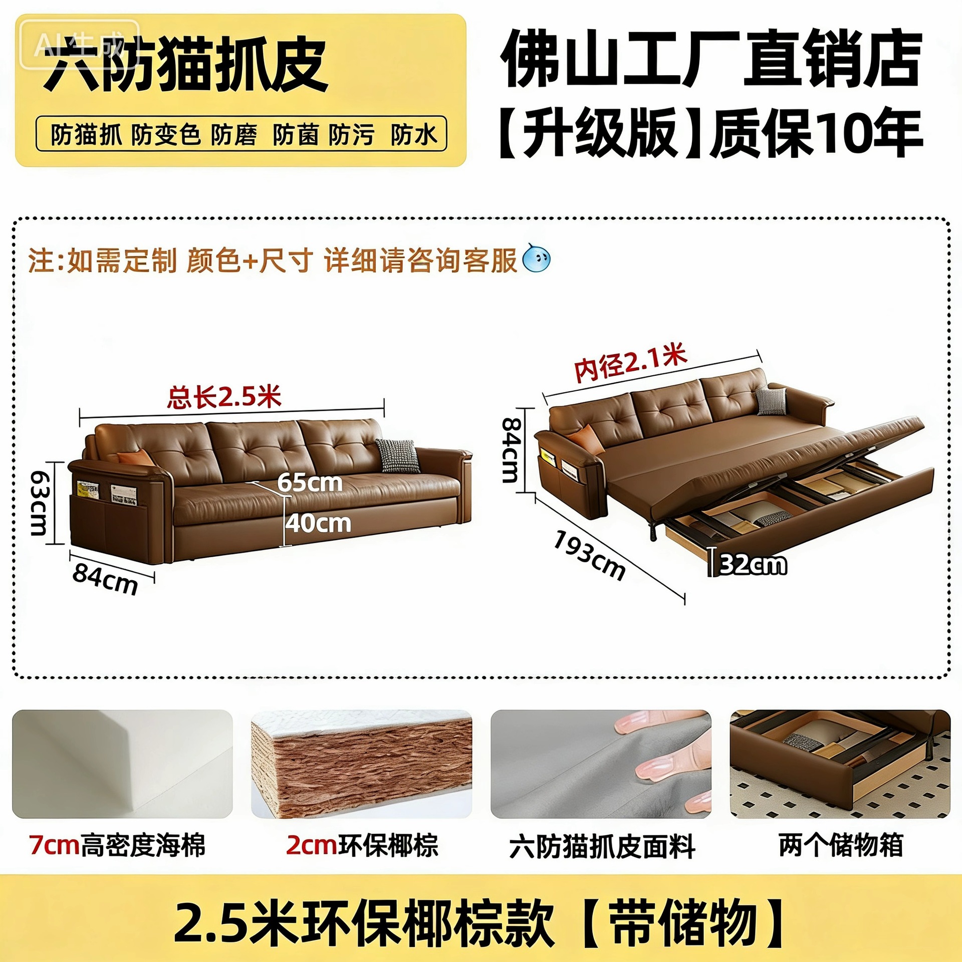 고양이 스크래치 가죽 개폐식 접이식 소파 침대 통합 이중 목적 작은 아파트 거실 가정용 다기능 2025 새로운 스타일