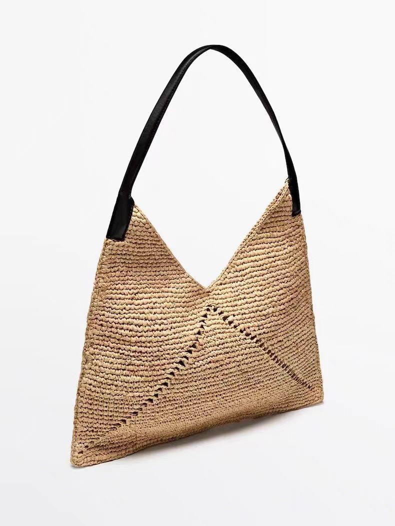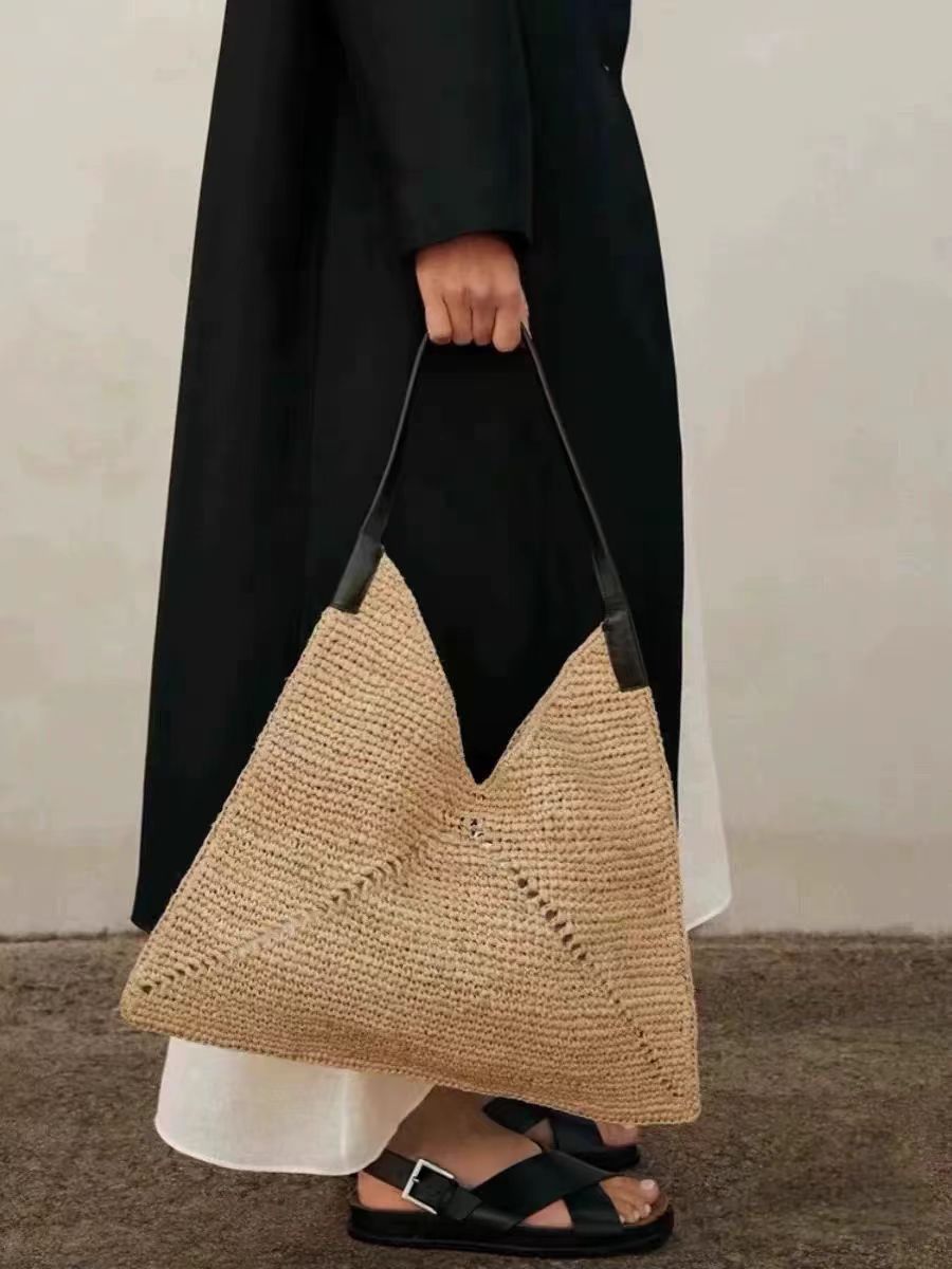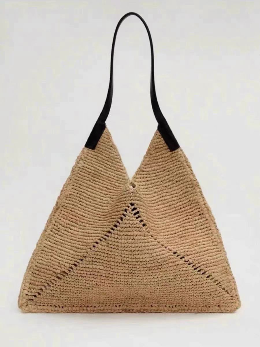프랑스 스타일 단일 어깨 대용량 밀짚 짠 가방 새로운 라파예트 할로우 짠 가방 홀리데이 비치 백 삼각형 여성용 가방