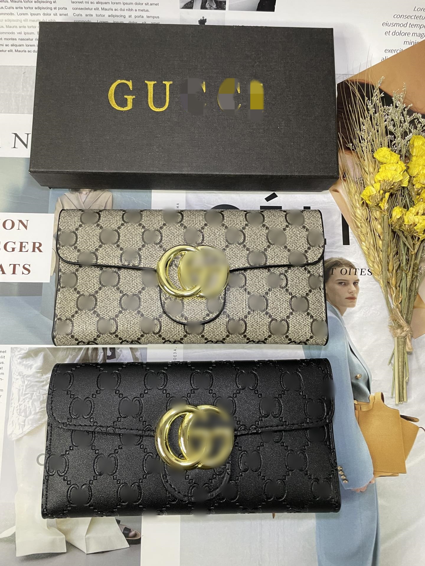 G 홈 가방 간단한 하이 퀄리티 패션 올 매치 더블 G 가방 선물 상자 클러치 백 멀티 카드 슬롯이있는 트렌디 한 지갑 카드 가방