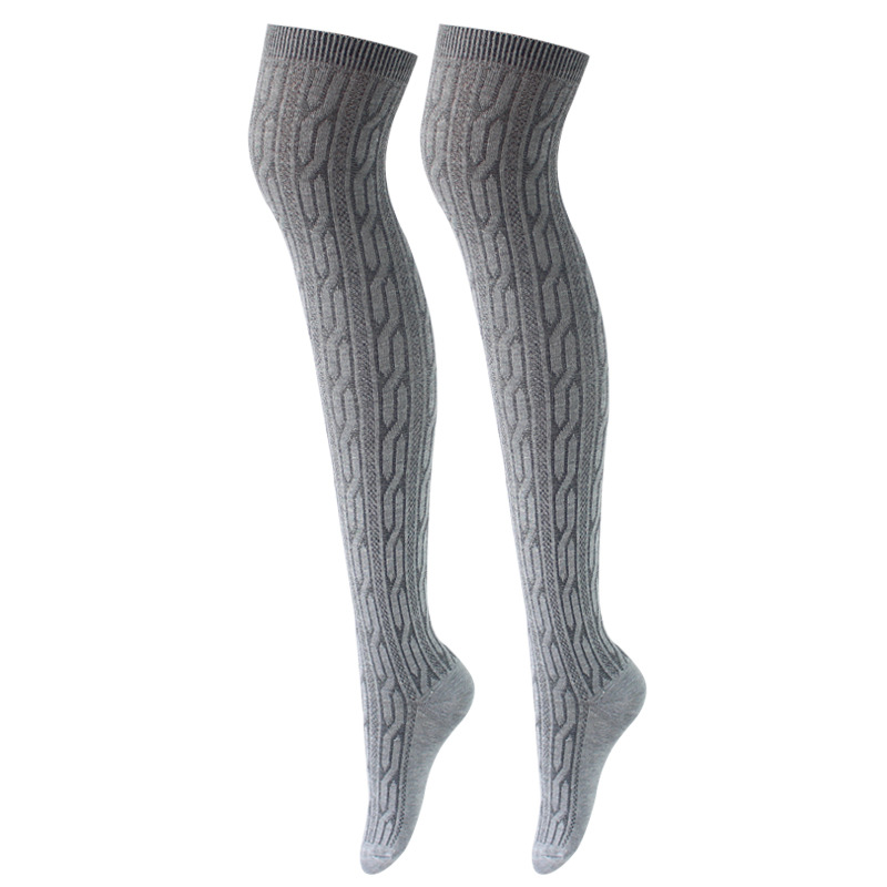 국경 간 재고 스타킹 일본 무릎 위 양말 니트 트위스트 허벅지 양말 여성용 허벅지 양말 오버 더 높은 양말스토어 가기